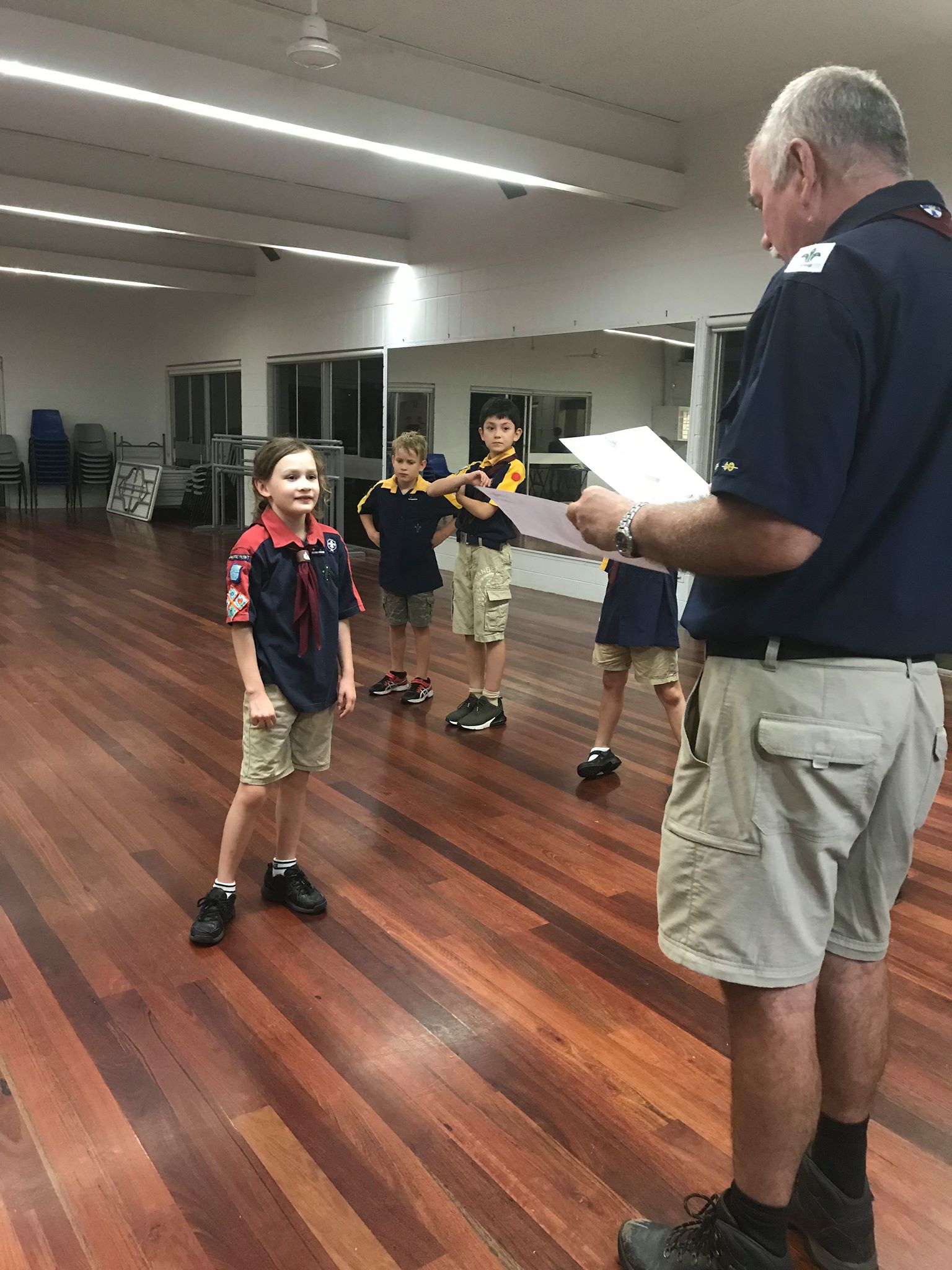 This week one of our Joey Scouts, who is currently linking up to Cubs, was awarded her Promise Challenge Award. This badge can also go on the Cub Scout uniform, where it is worn until the Bronze Boomerang award is achieved.