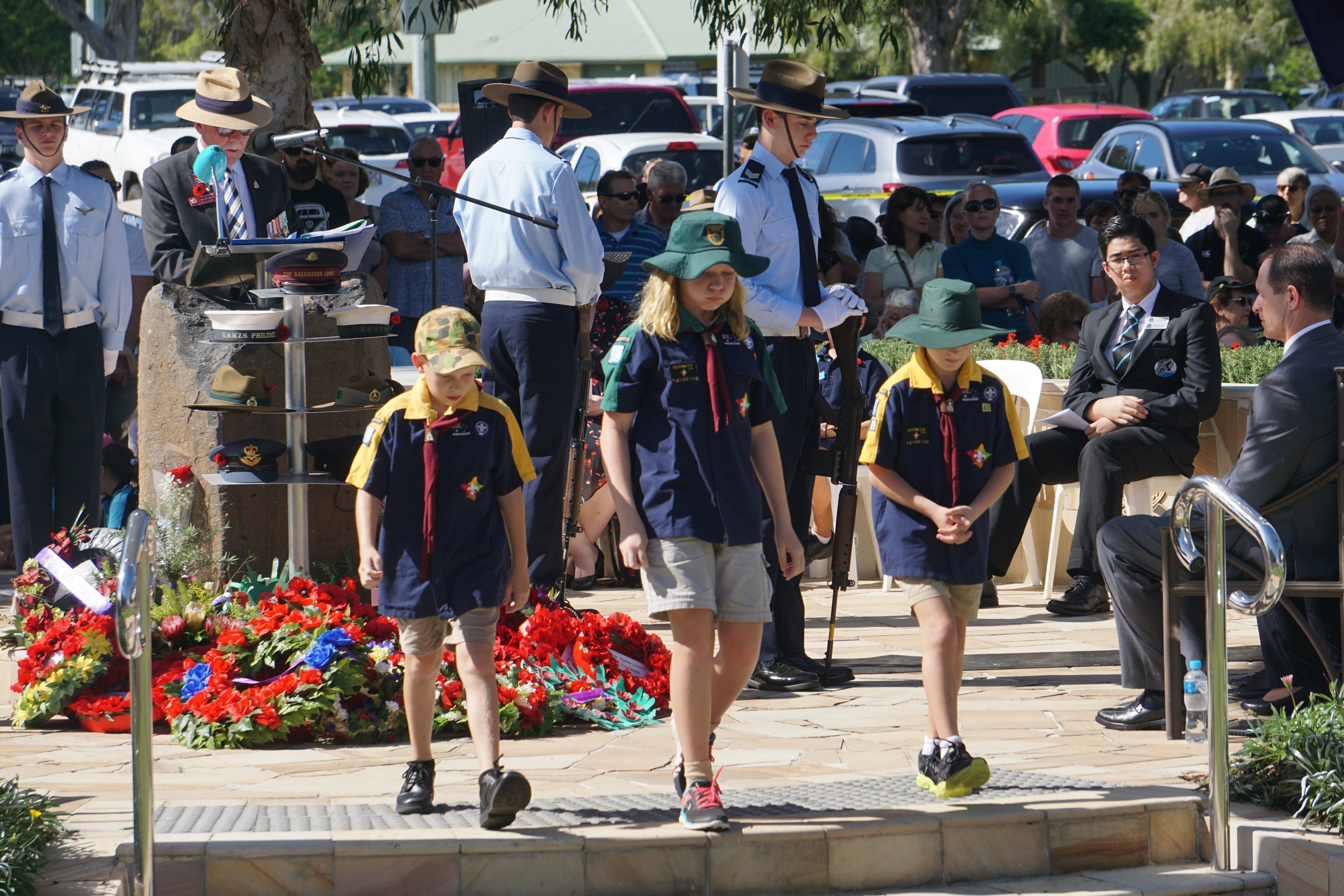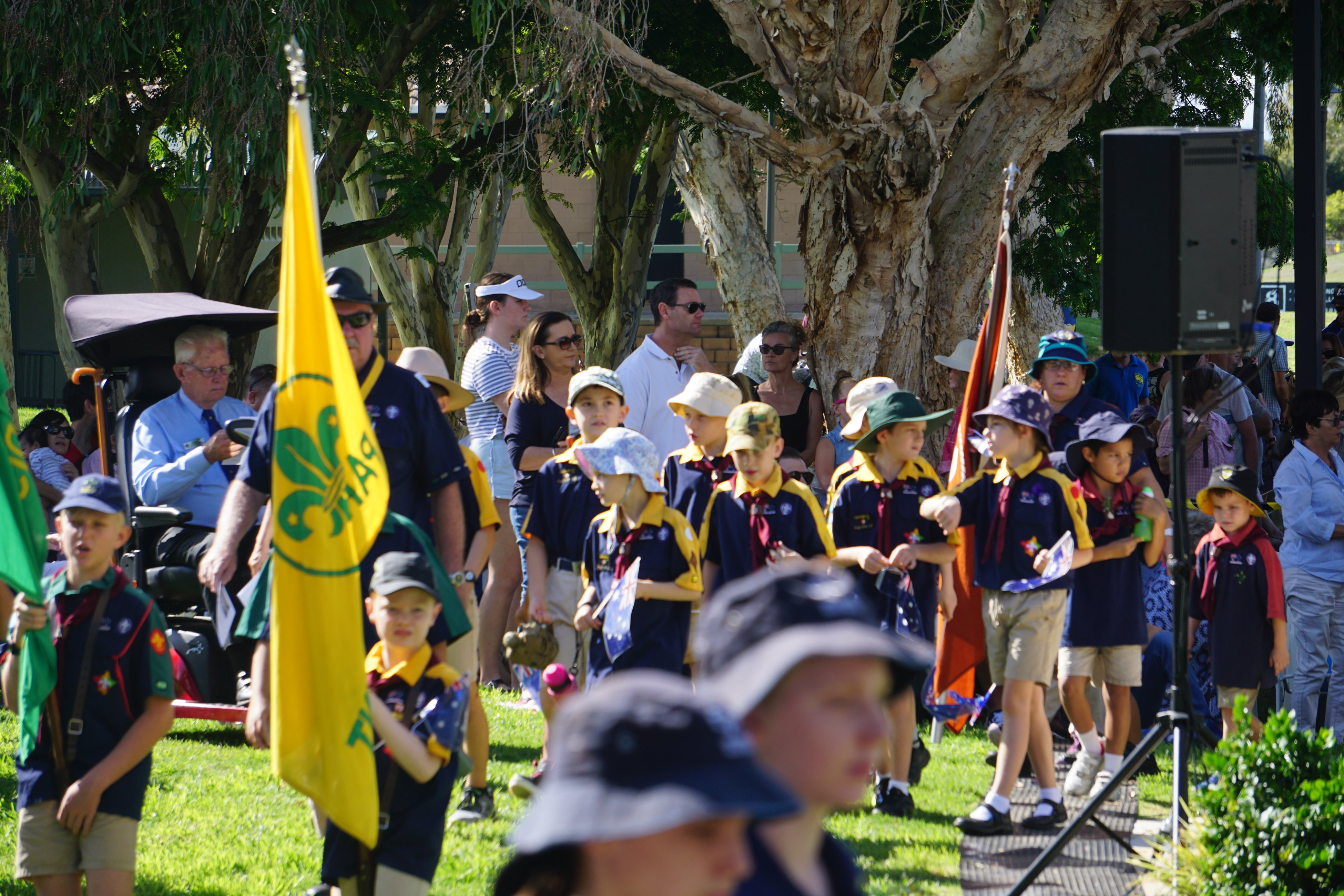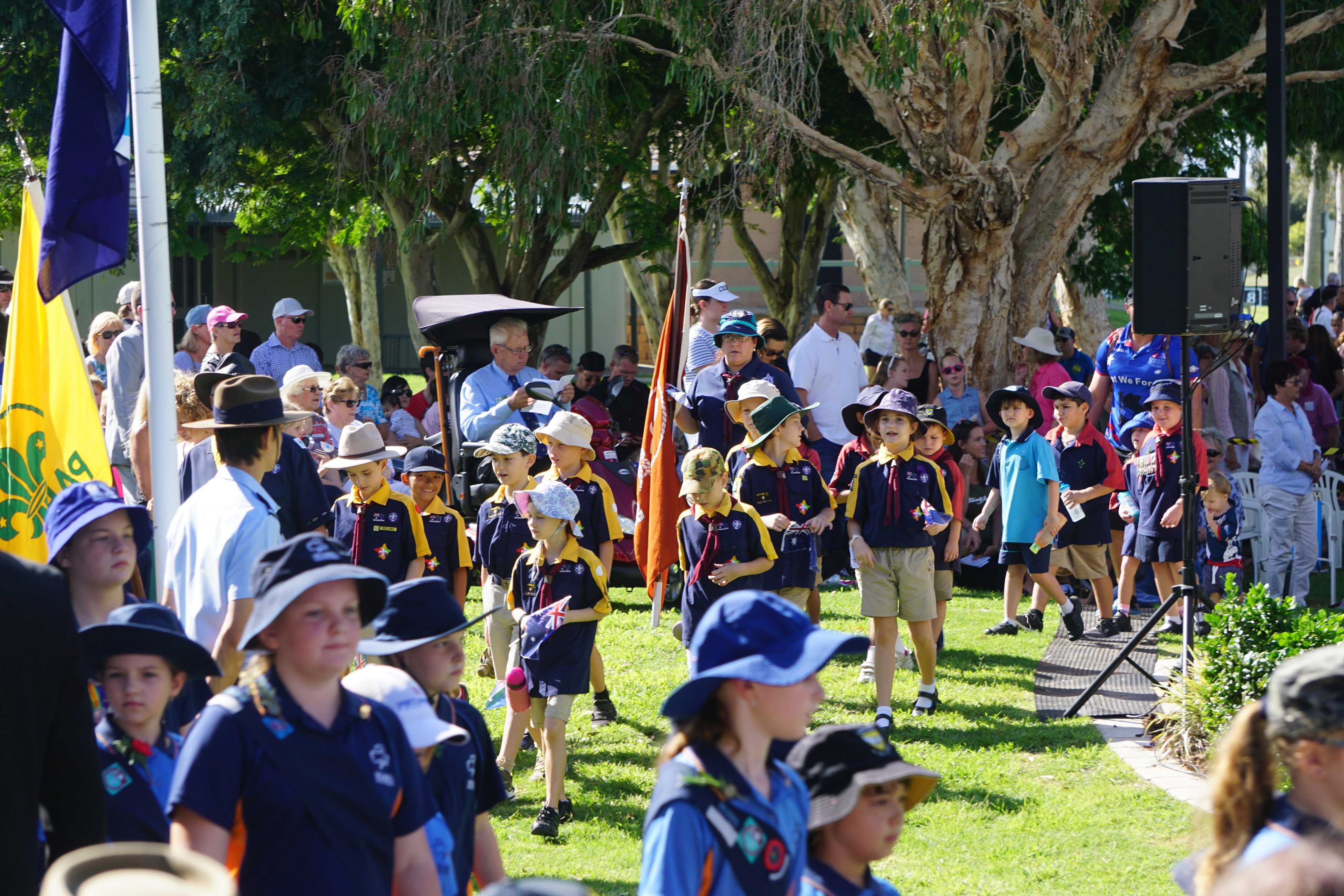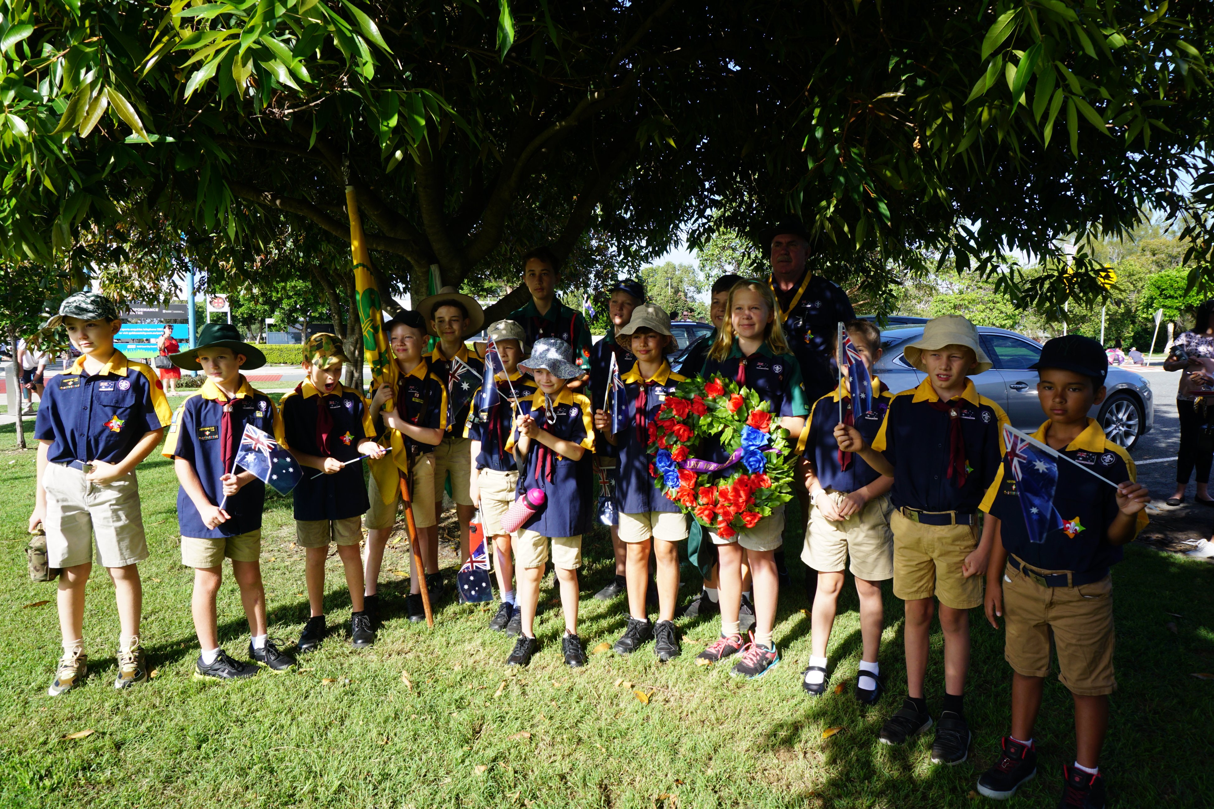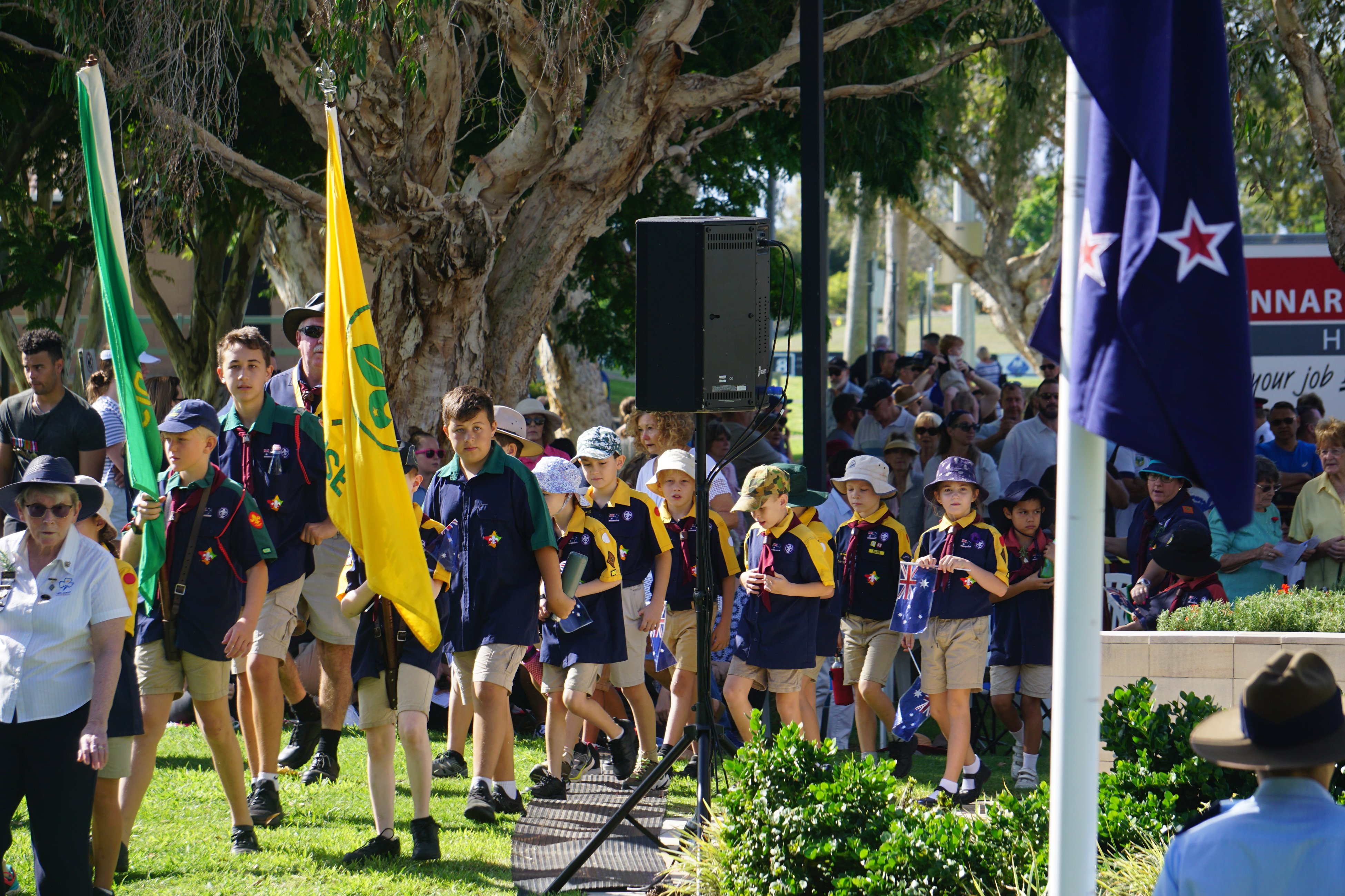 At 9:30am the parade started, with a number of Cadets, veterans, schools and different Scout and Guide groups taking part amongst others. Here are the Paradise Point Scouts and Cubs: