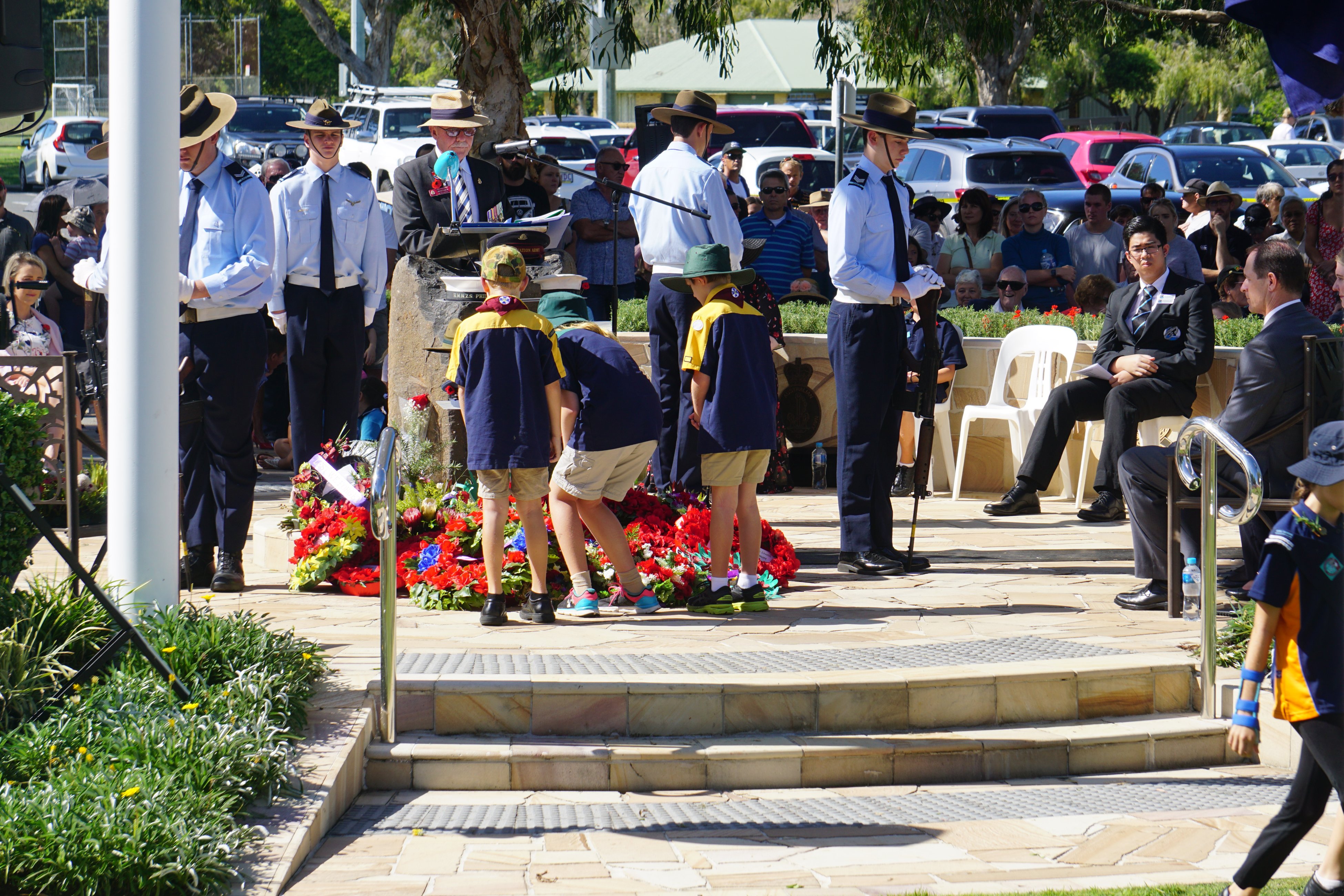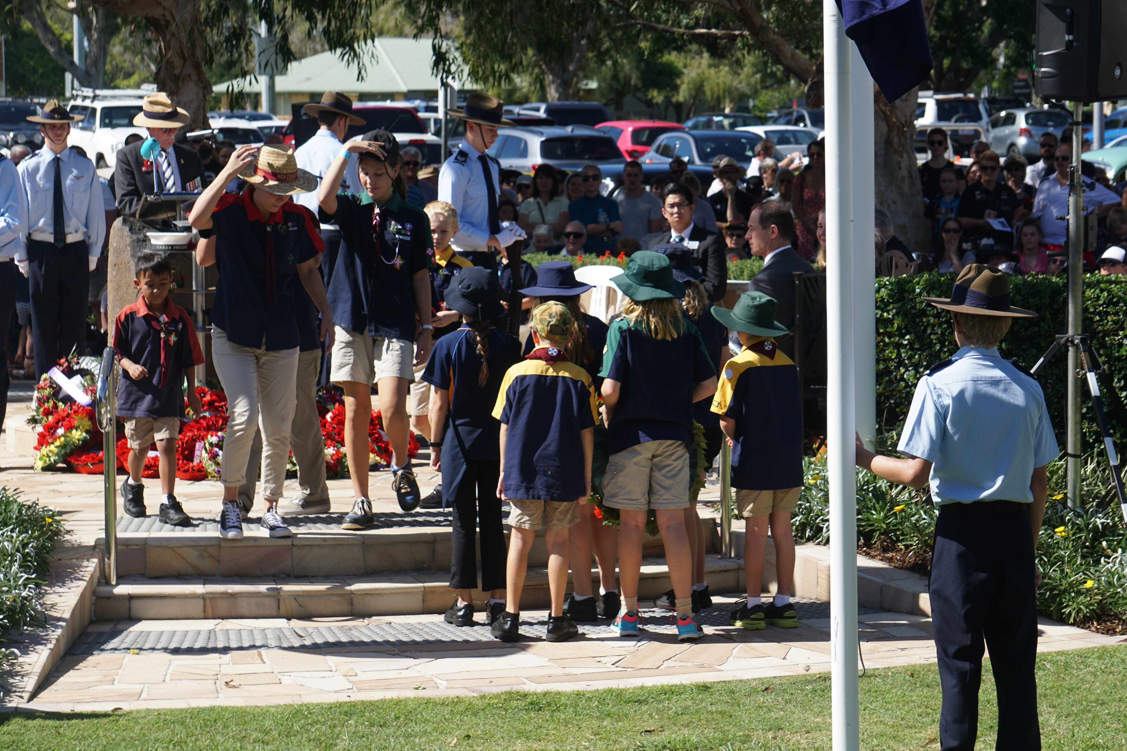 Towards the end of the service 2 of our Cubs and 1 Scout offered a wreath at the base of the memorial: