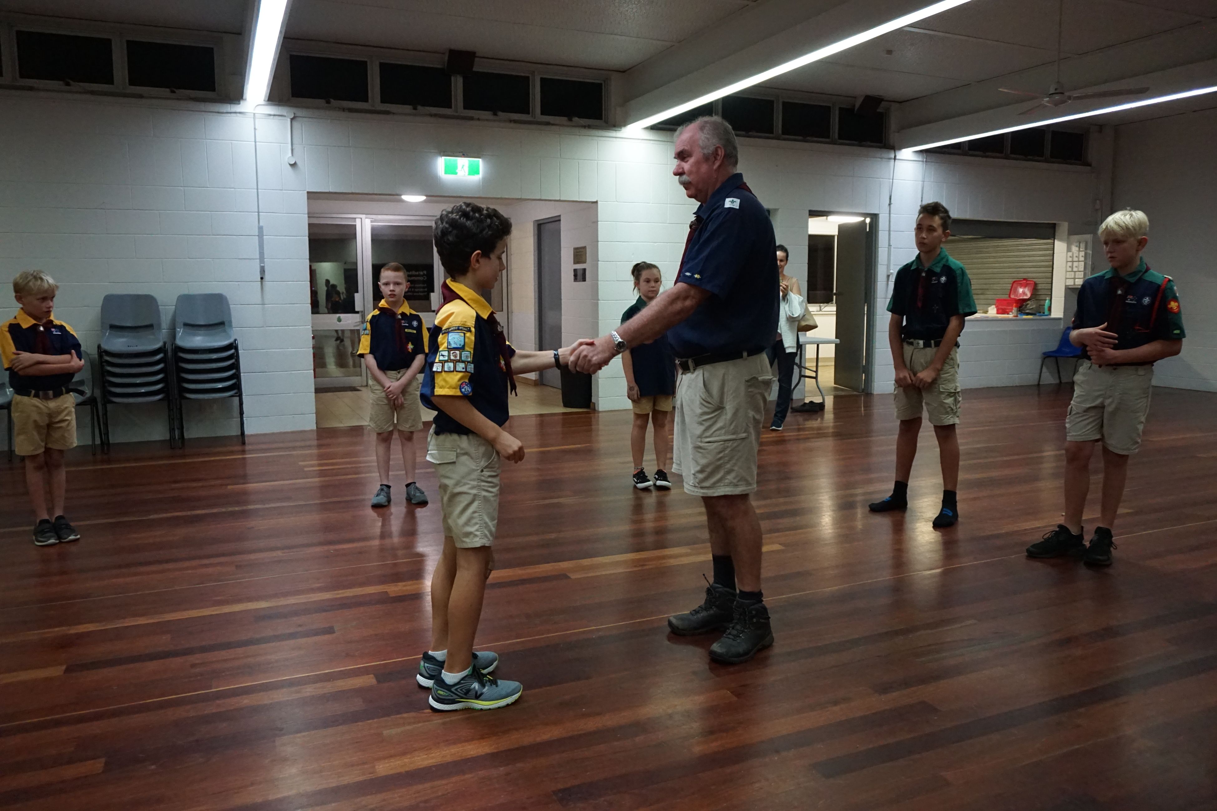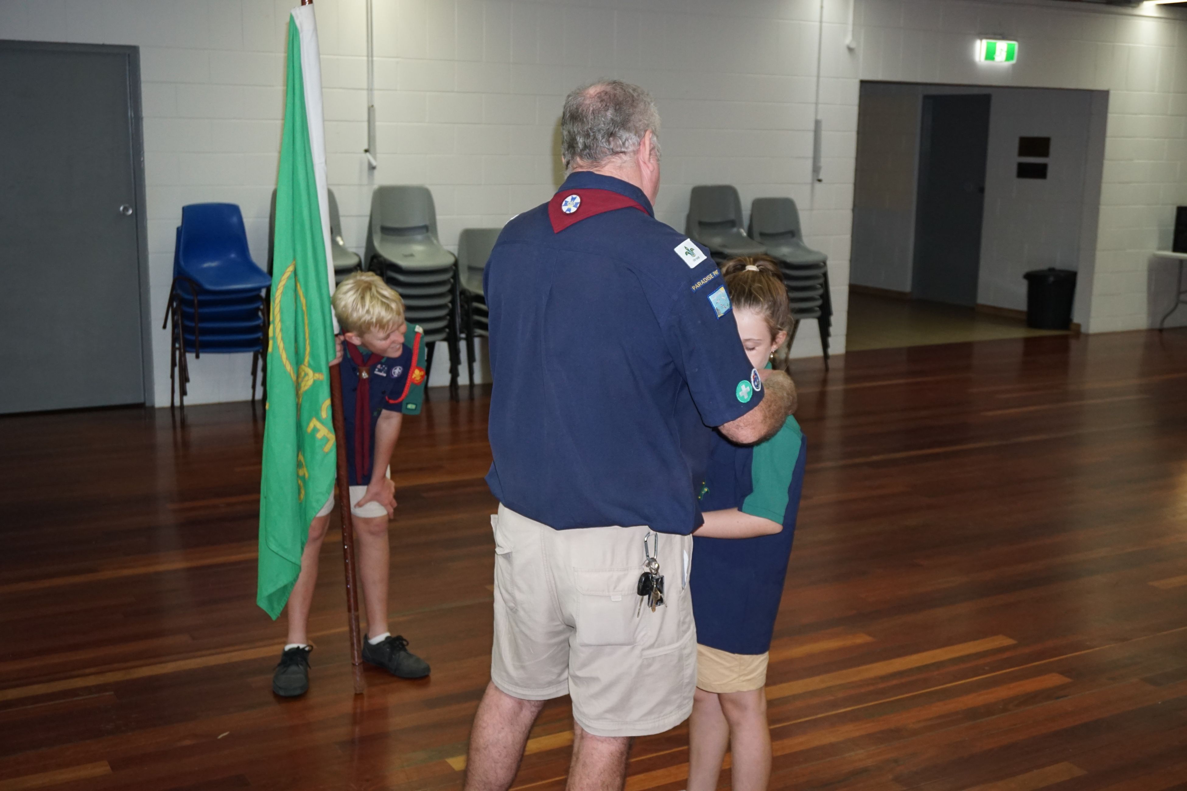 With the end of the evening approaching it was time to say goodbye to our 2 oldest Cub Scouts as they received their linking badges: