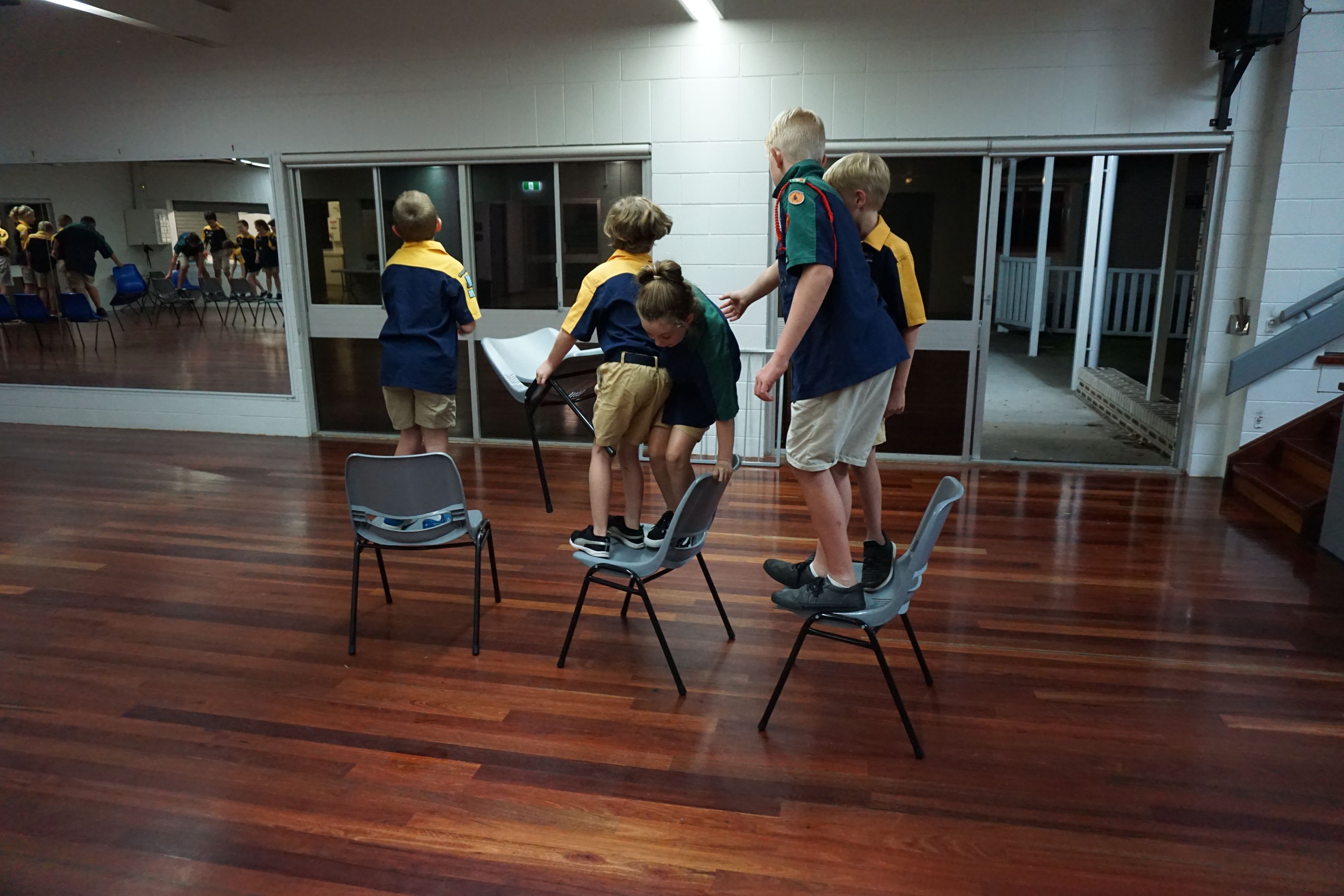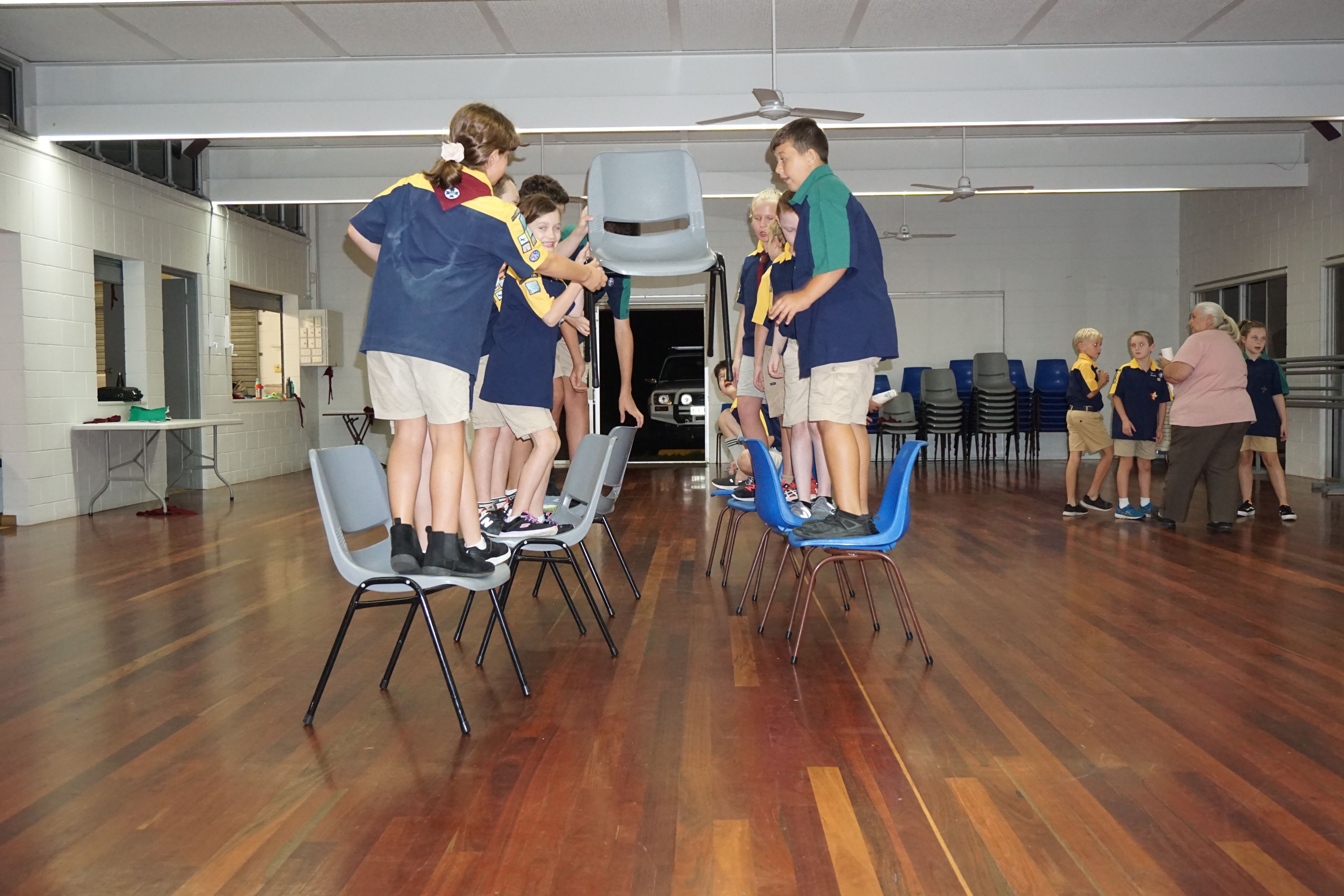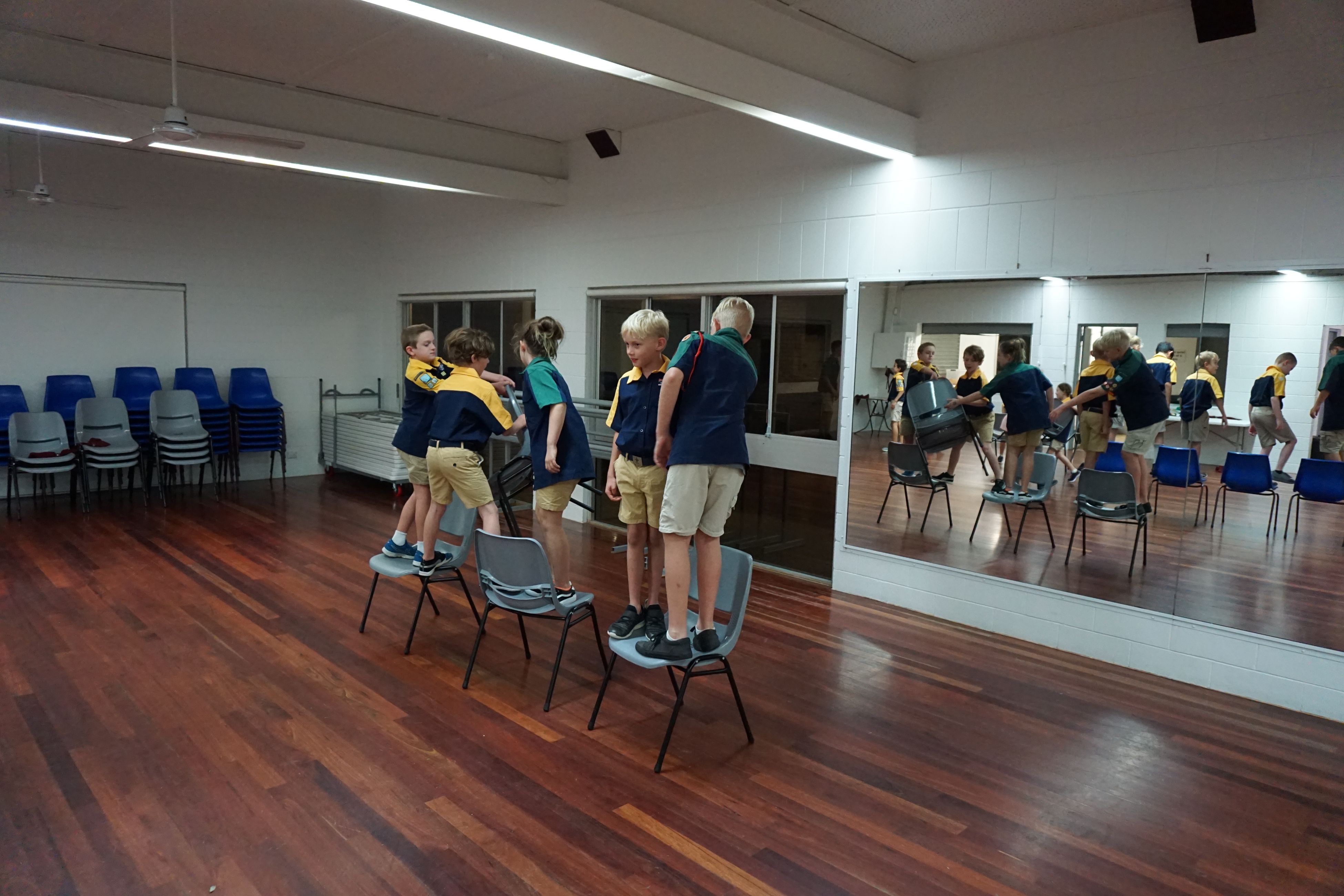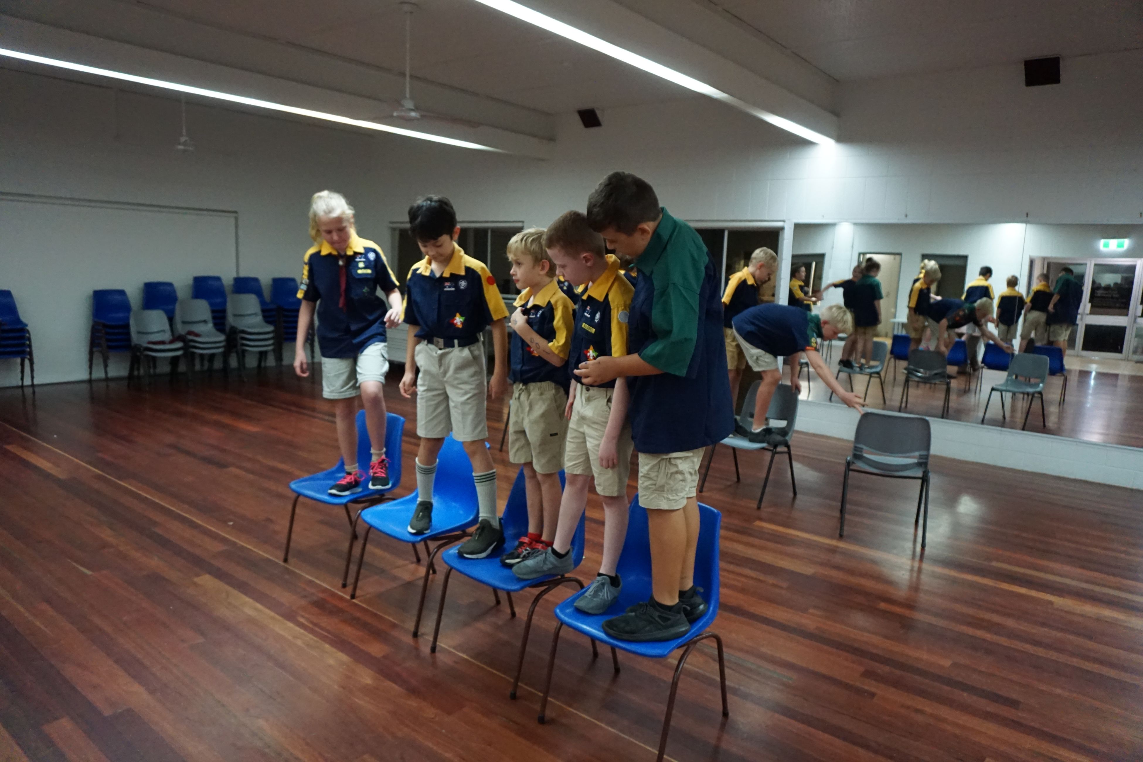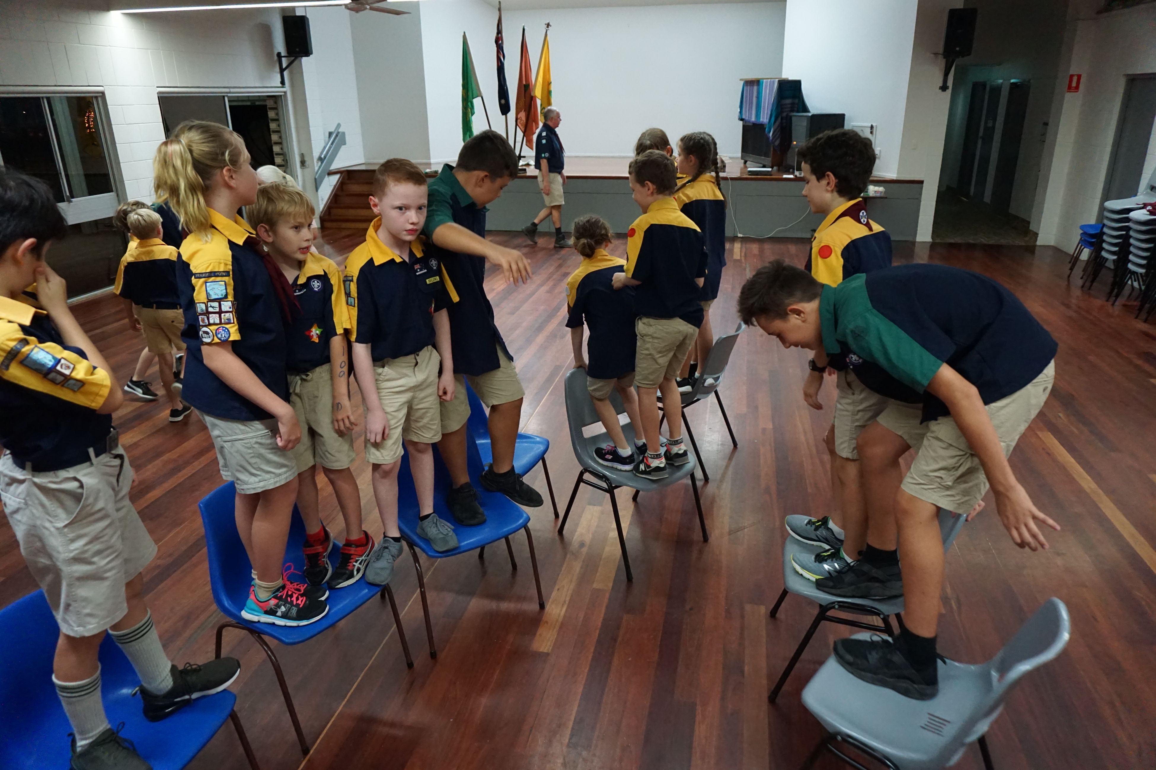We ran a combined night with the Cubs Scouts and Scouts, so for the first game of Lava everyone was split up in to 3 teams and had to make their way over to the other side of the hall using chairs. Each team had 1 less chair than they had members and a maximum of two people were allowed on a chair. Things started well, but soon descended in to chaos, especially as two teams slowly edged closer to each other.