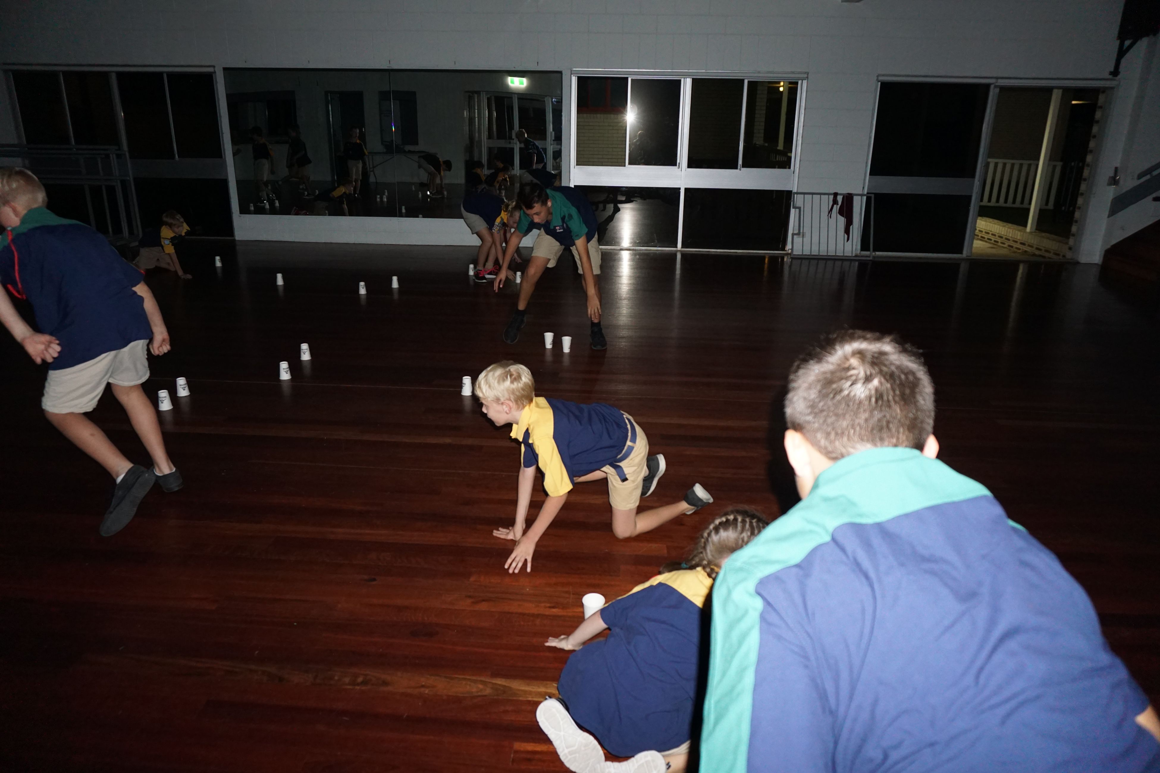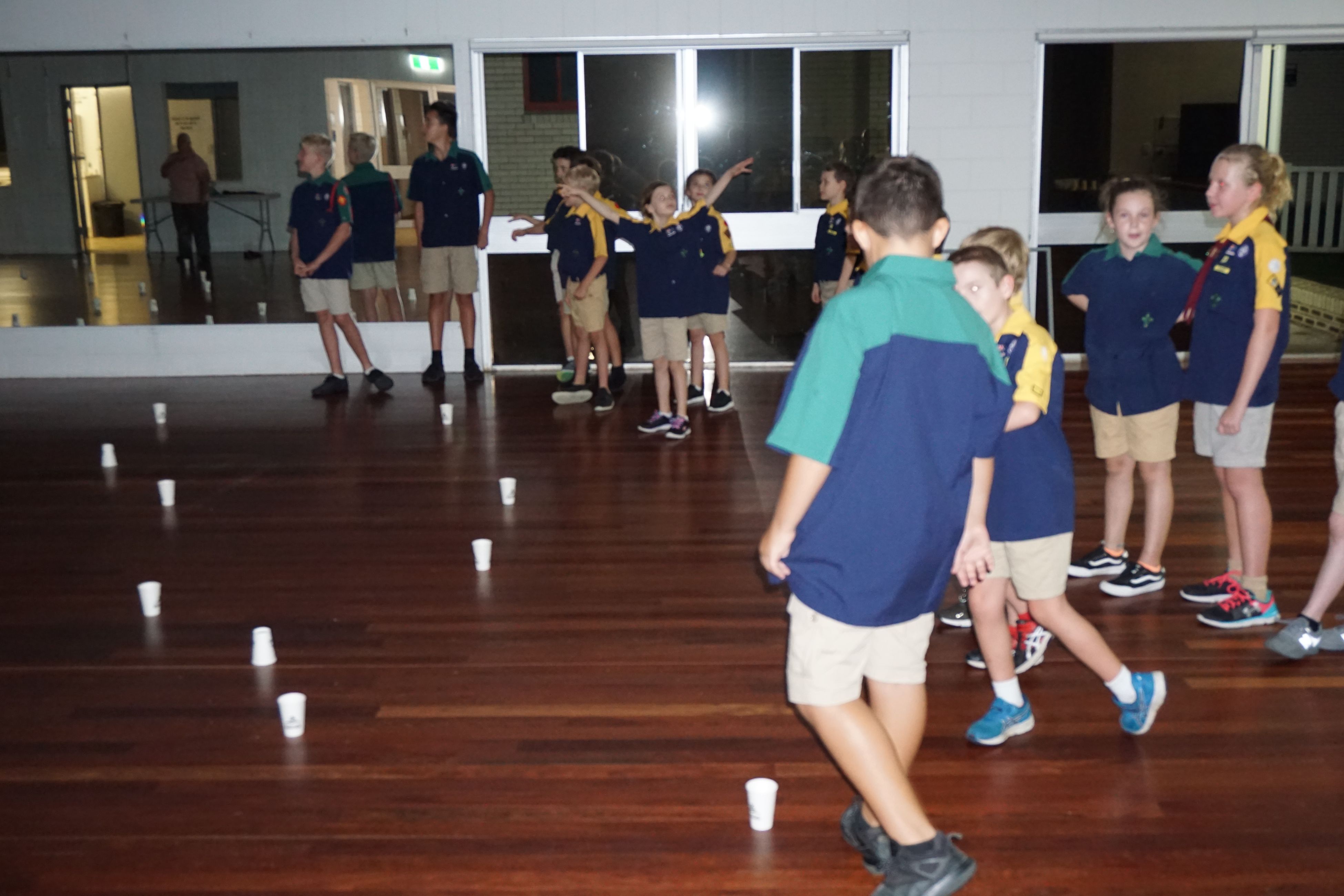 The second game of the night had the group split in to two and a large number of cups placed all around the hall. Each team was designated either cup up or down and had two minutes to turn as many cups over so they faced the right way for their team… oh and to add to the challenge the lights were turned off.