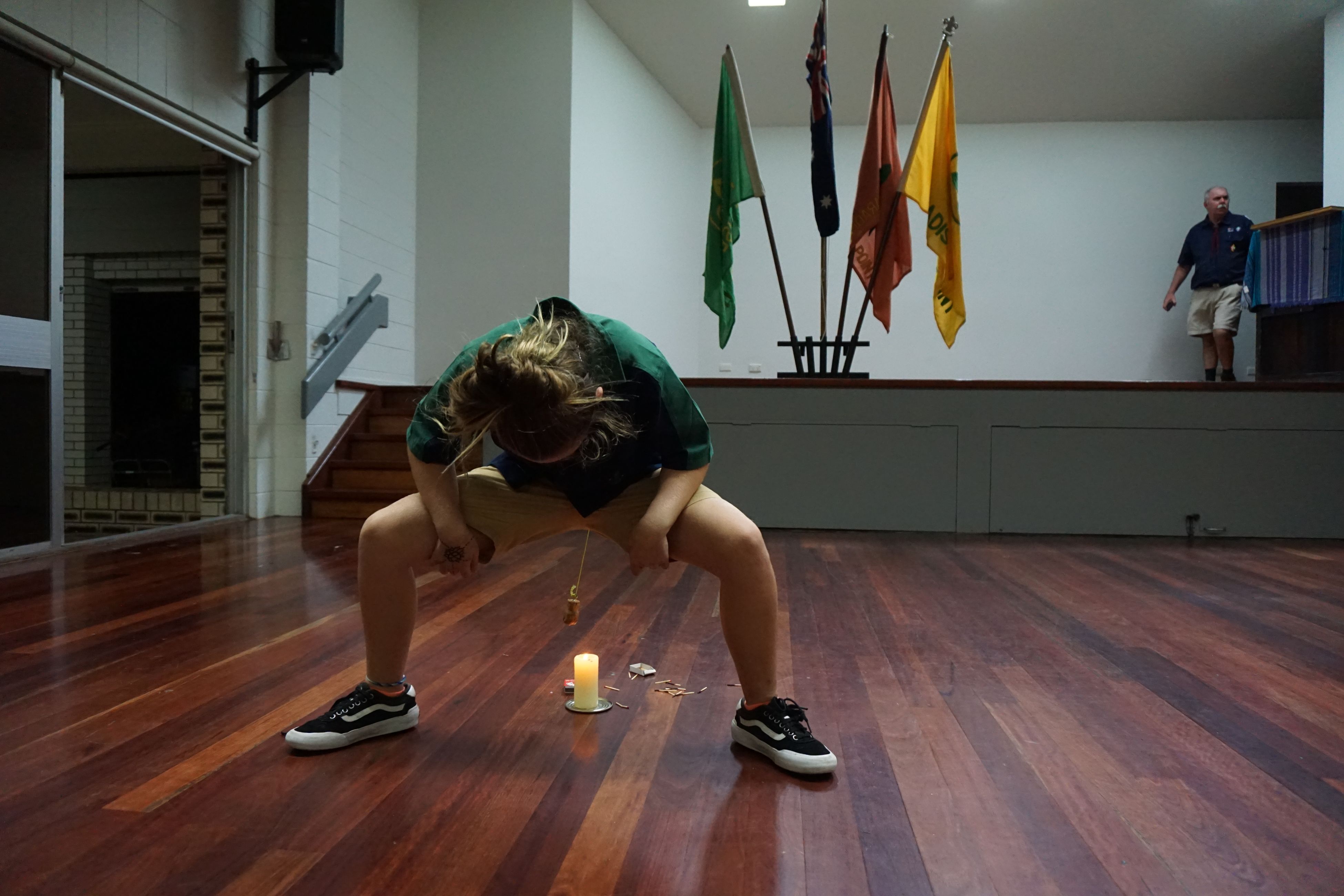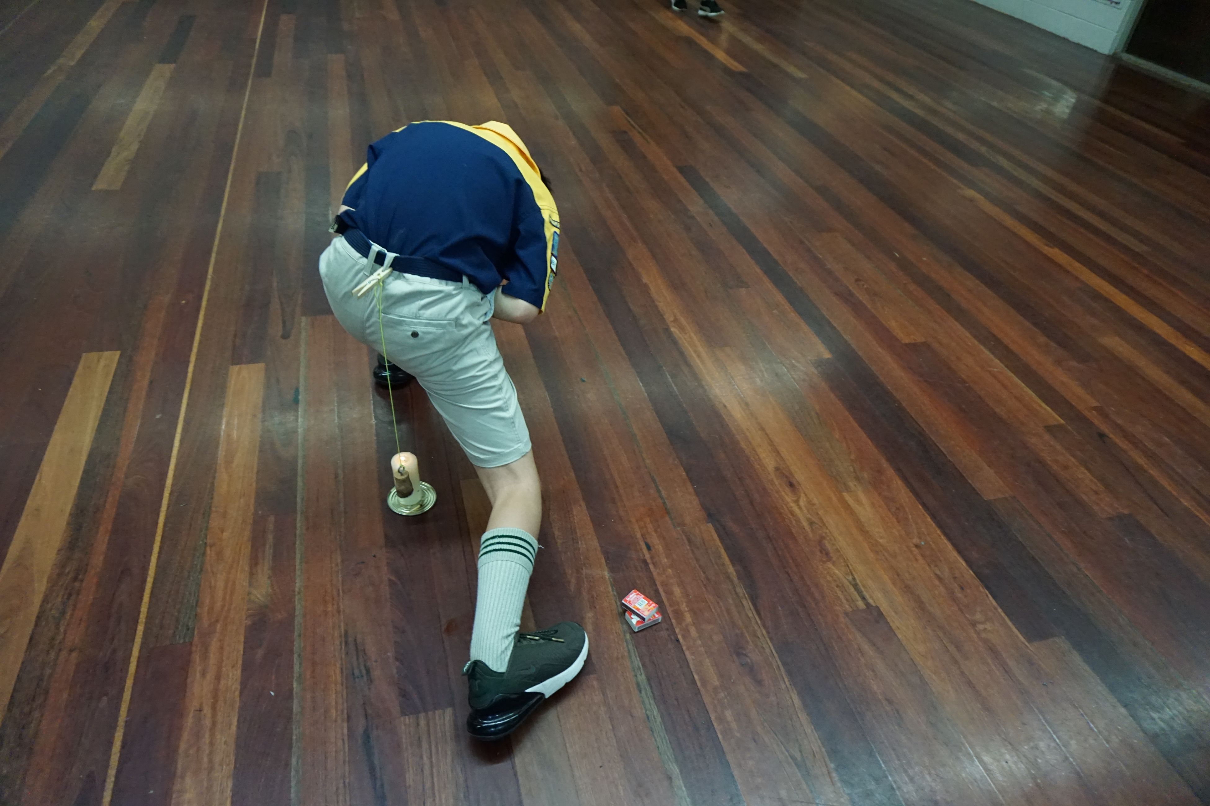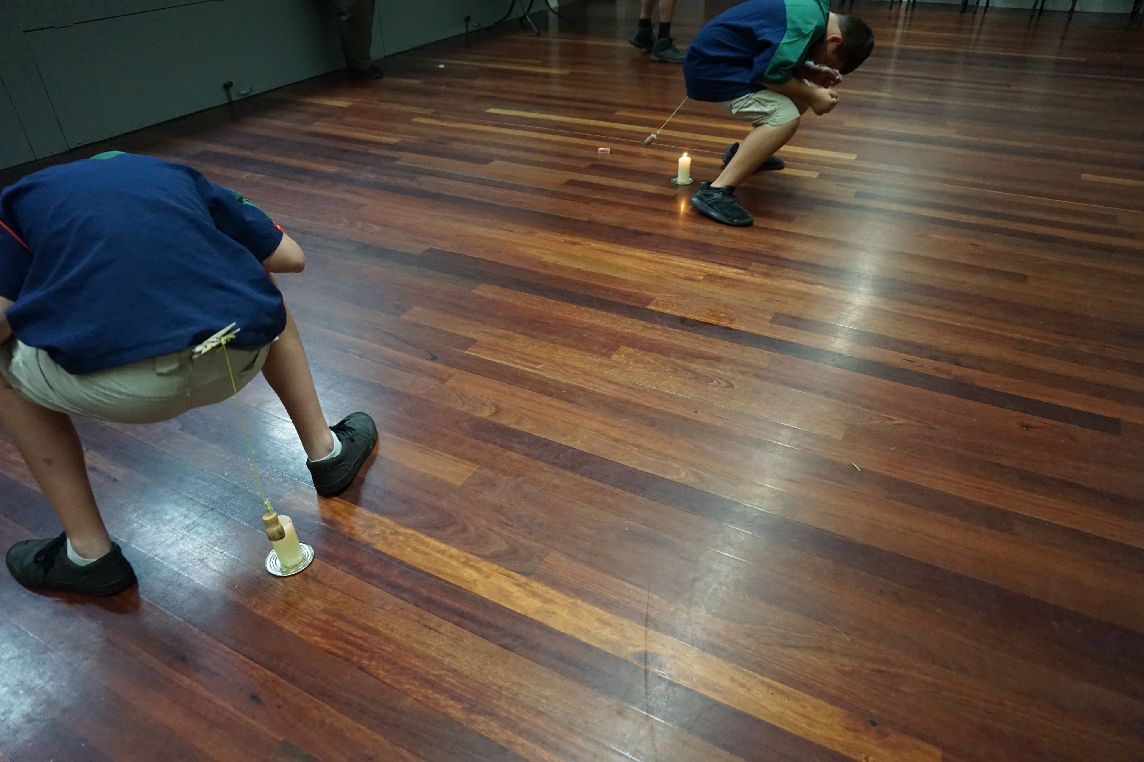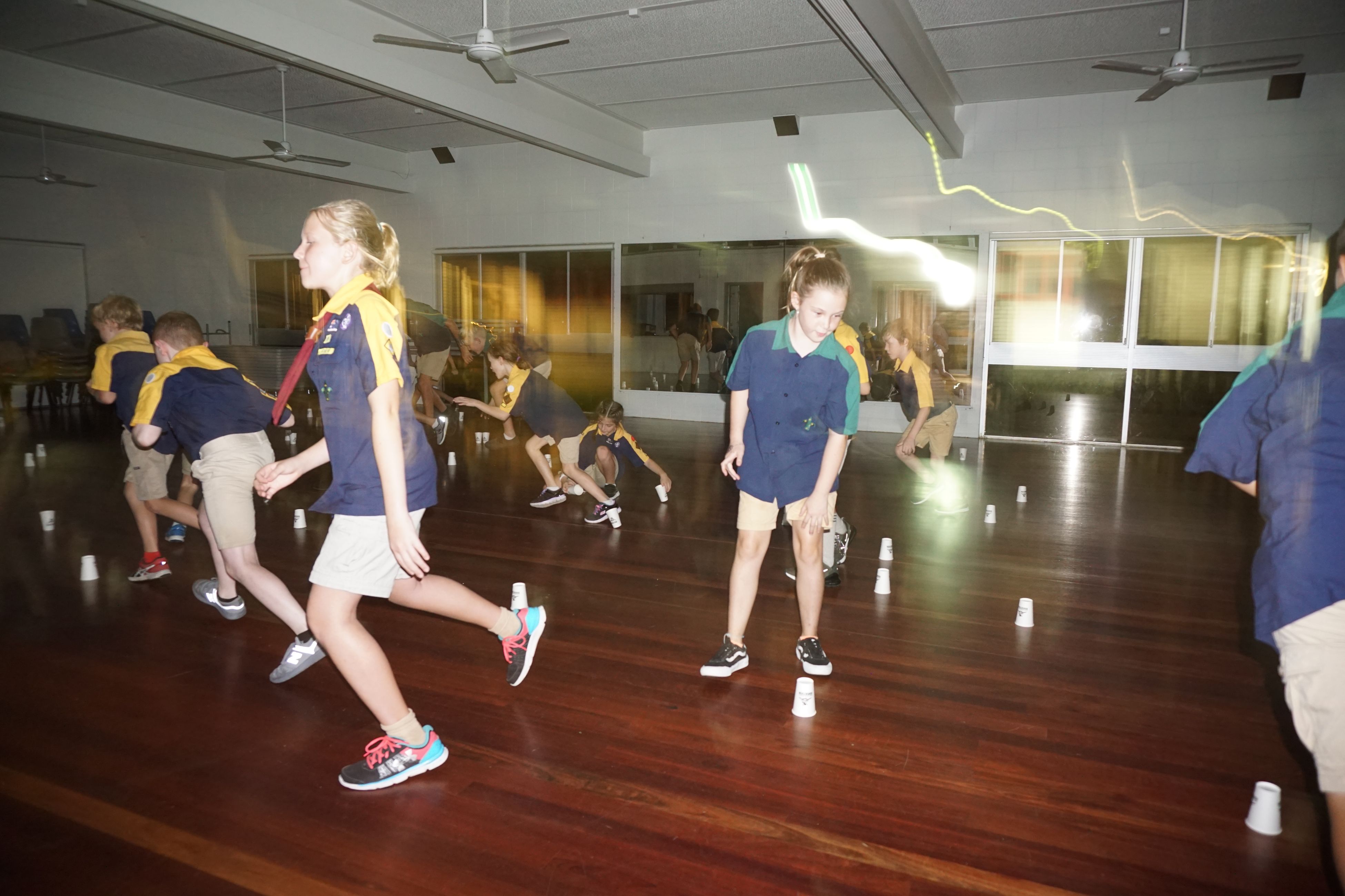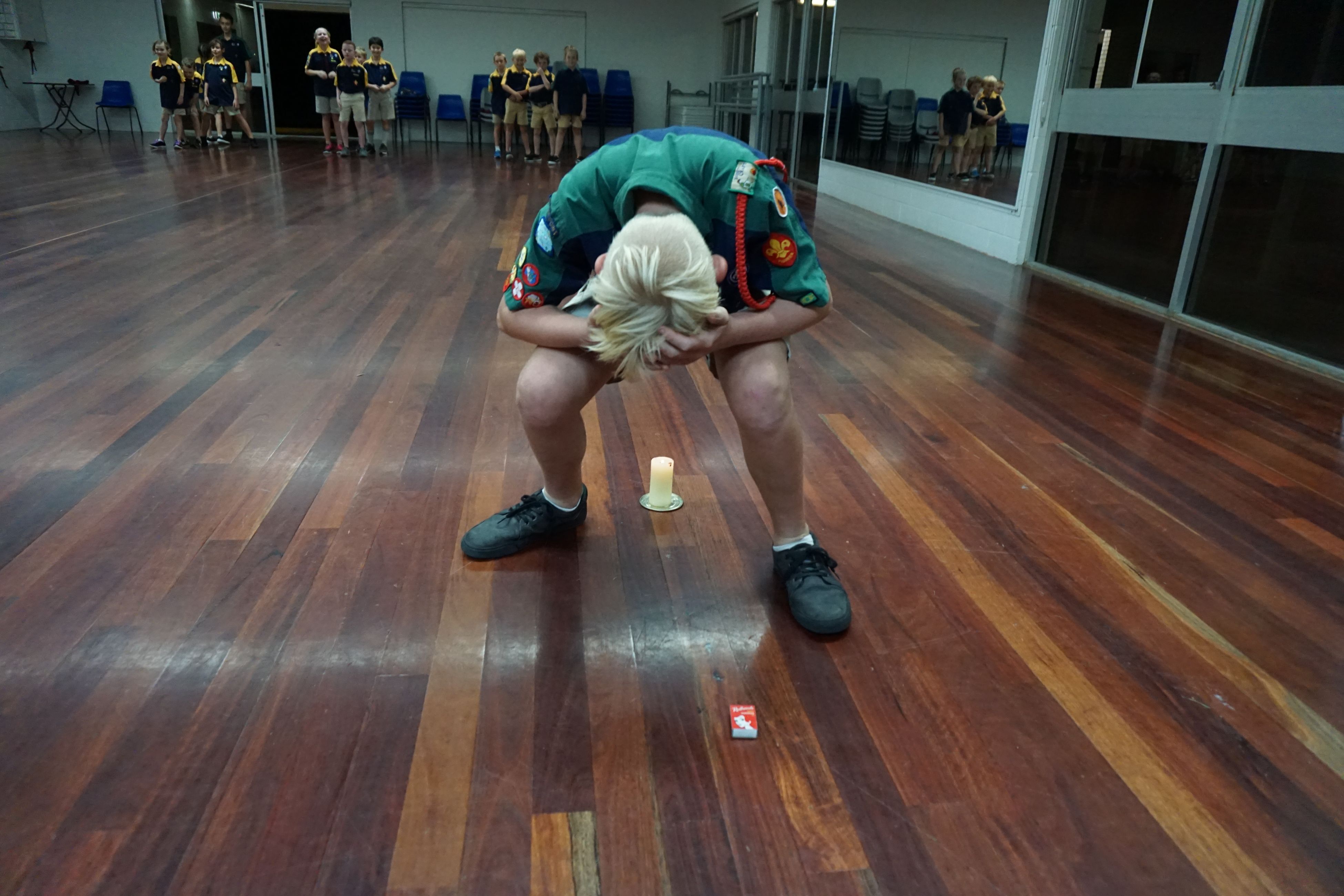 The last game of the night, and indeed the term, was the Candle Game. Everyone was split up in to the 3 groups used in the first game and given a cork attached to some string and a peg. They had to attach the peg of the back of their shorts and run to the other end of the hall. Once there they needed to put out a candle using the cork on the string, without using their hands. Once extinguished they had to relight the candle and run back to the next player. An adult was on hand at each candle to explain the safe use of matches where needed.