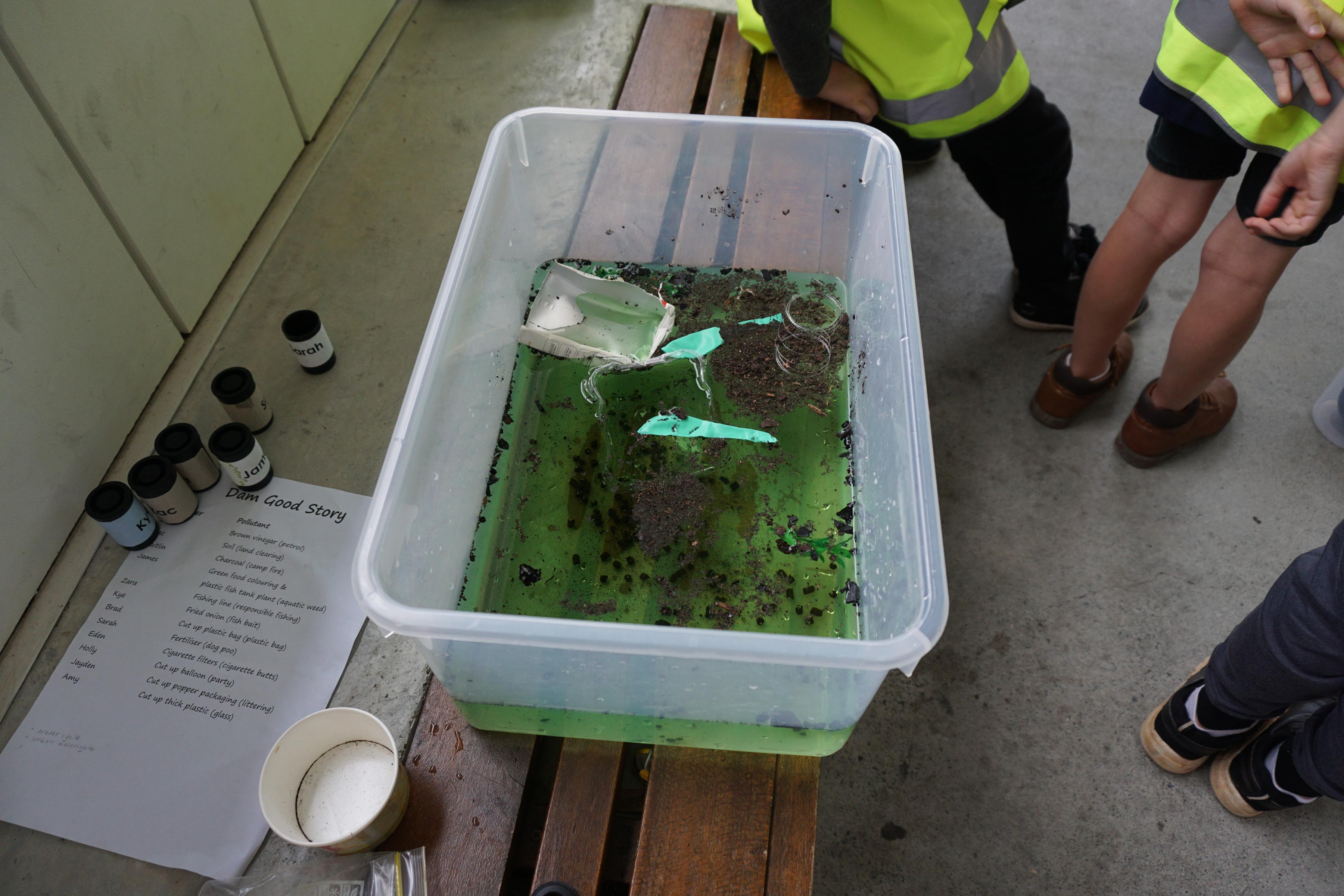 First we had a “Dam Good Story” where the Cub Scouts got to see first hand how man can pollute the waterways with various chemicals, rubbish and personal items.