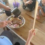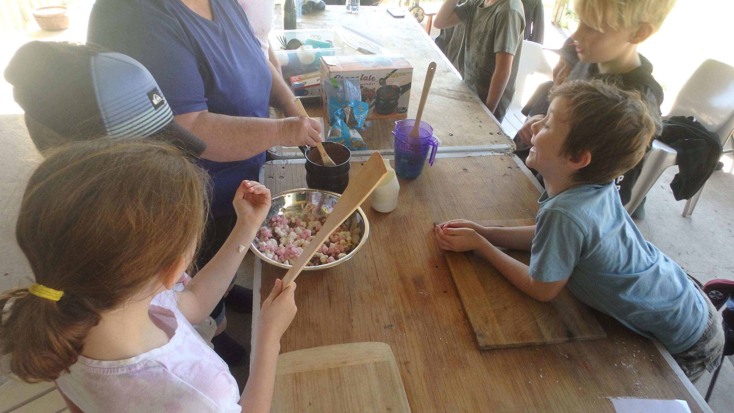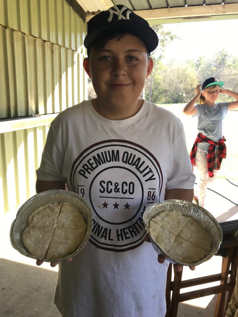 This was followed with a discussion on hygiene and safety rules in the kitchen before everyone prepared lemonade scones and a Billy can was placed on the fire to make tea. Some of the scones were also cooked using a campfire oven.