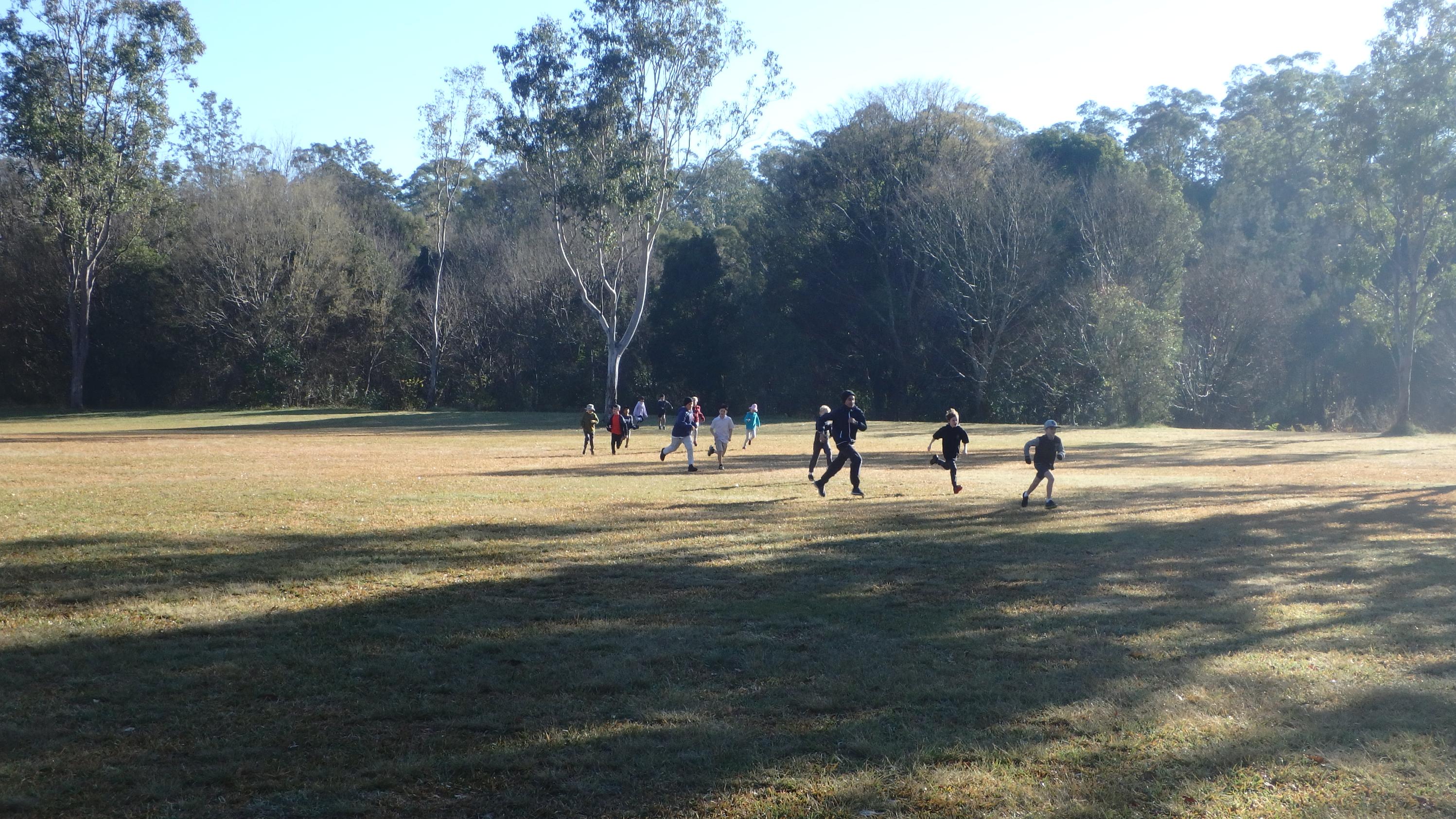 After parade the first task was to get everyone warmed up, so a quick run around the trees and back was in order: