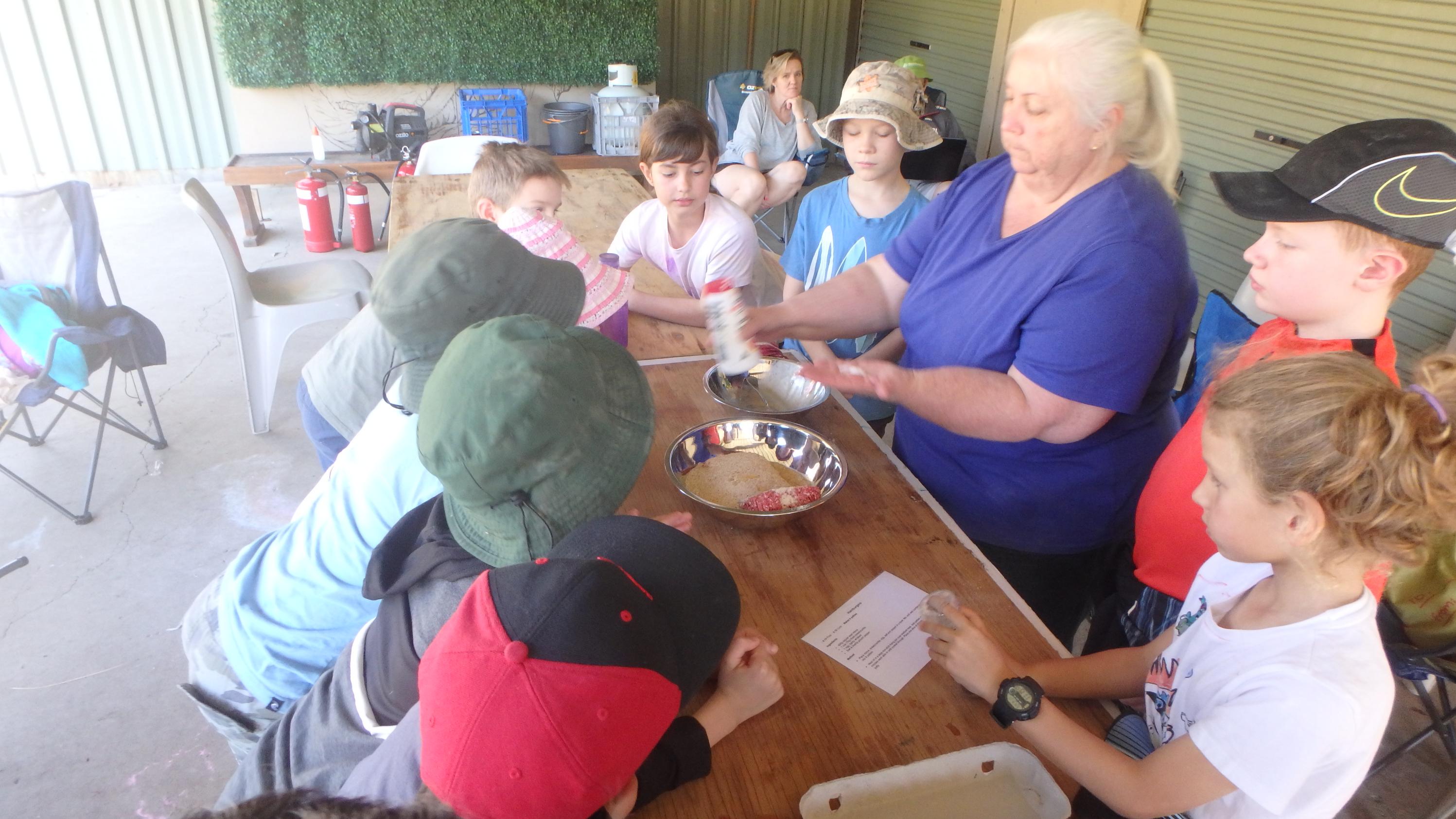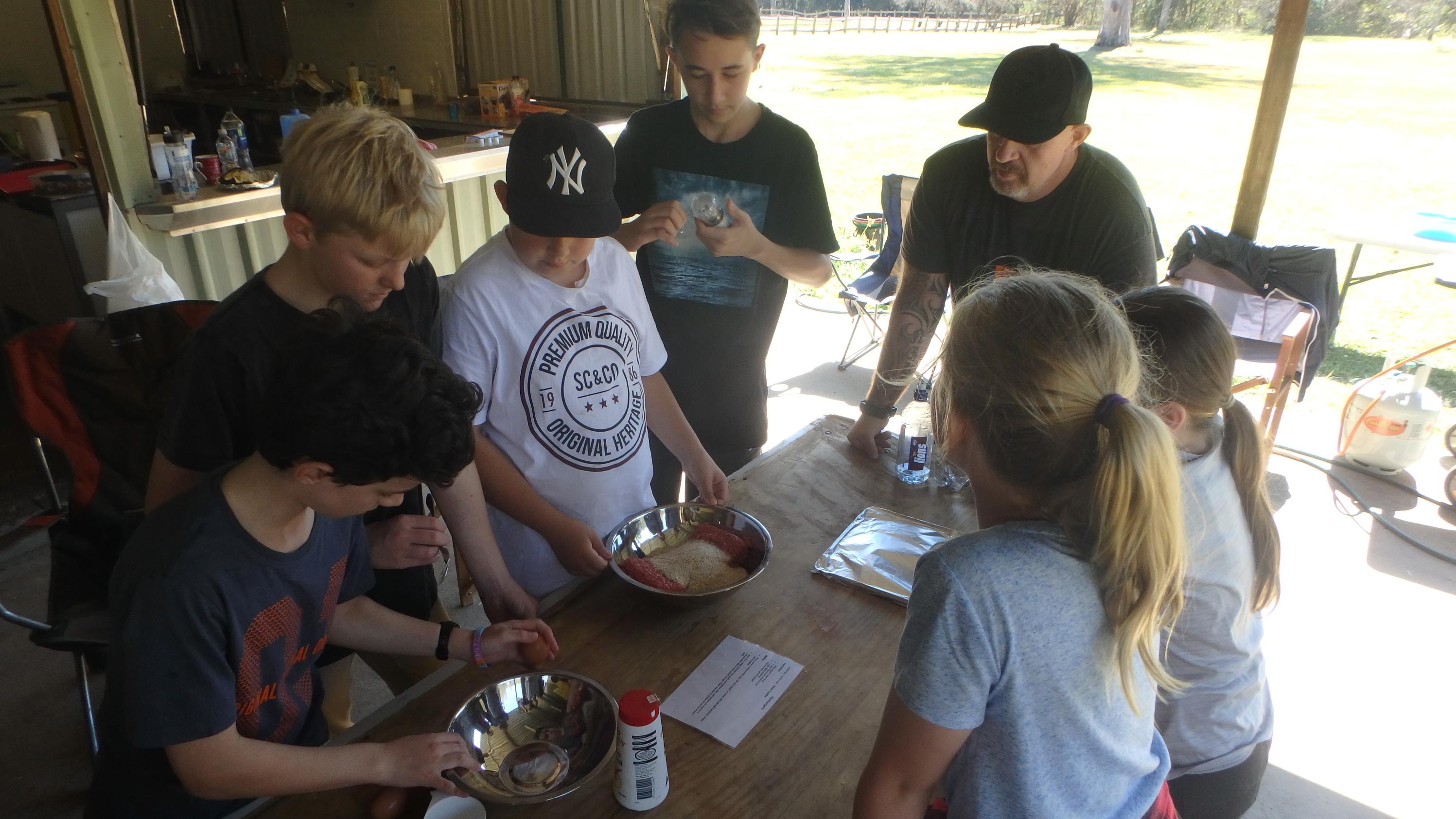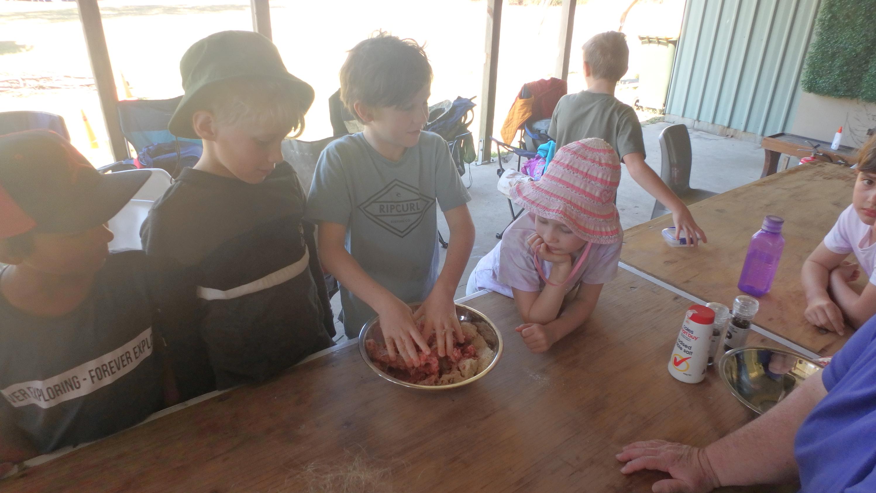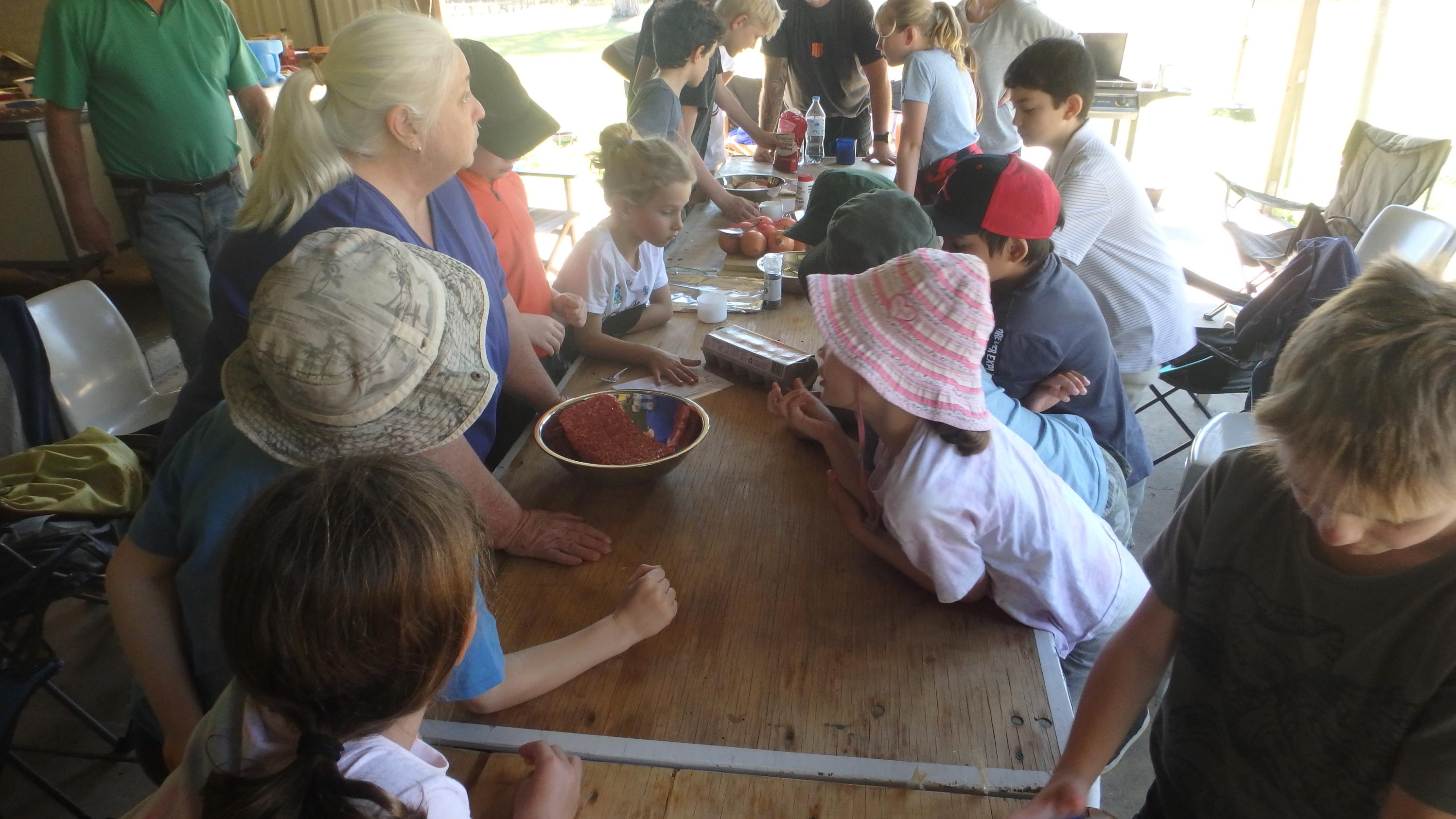 Following on from the short break everyone started work on making hamburger patties for lunch: