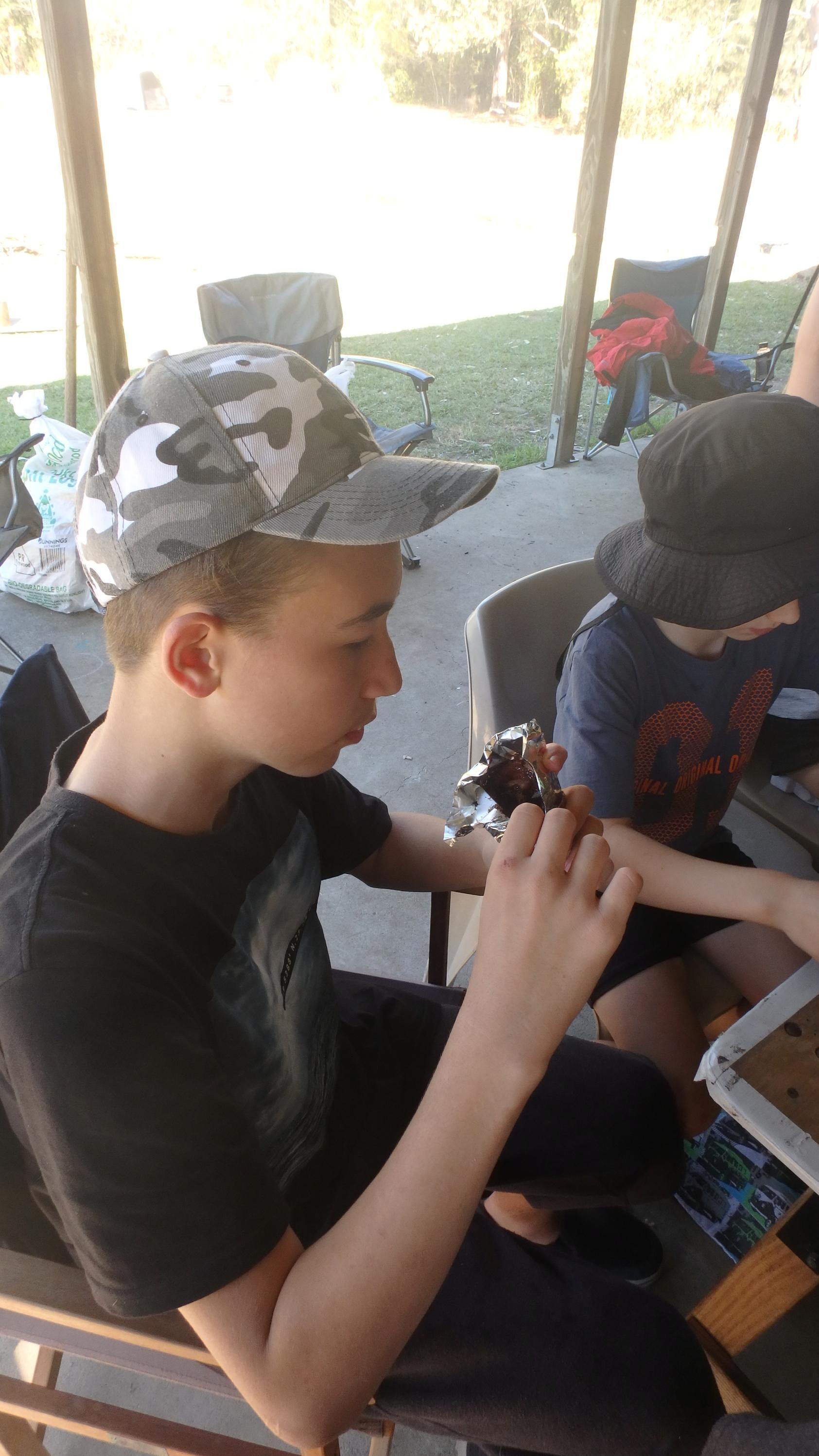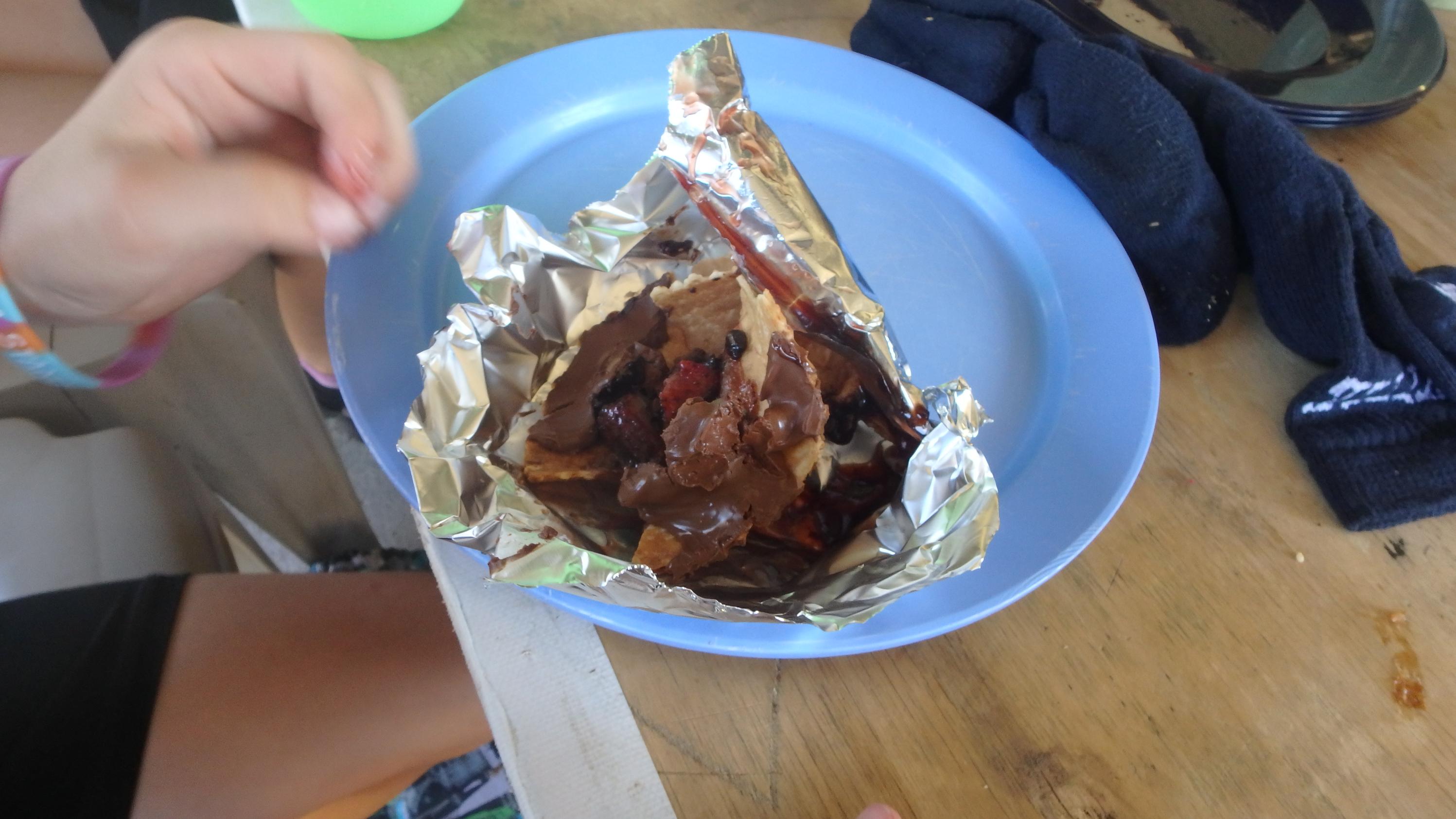 Everyone enjoyed their lunch, along with s’more cones that had also been made earlier and cooked on the fire and bbq: