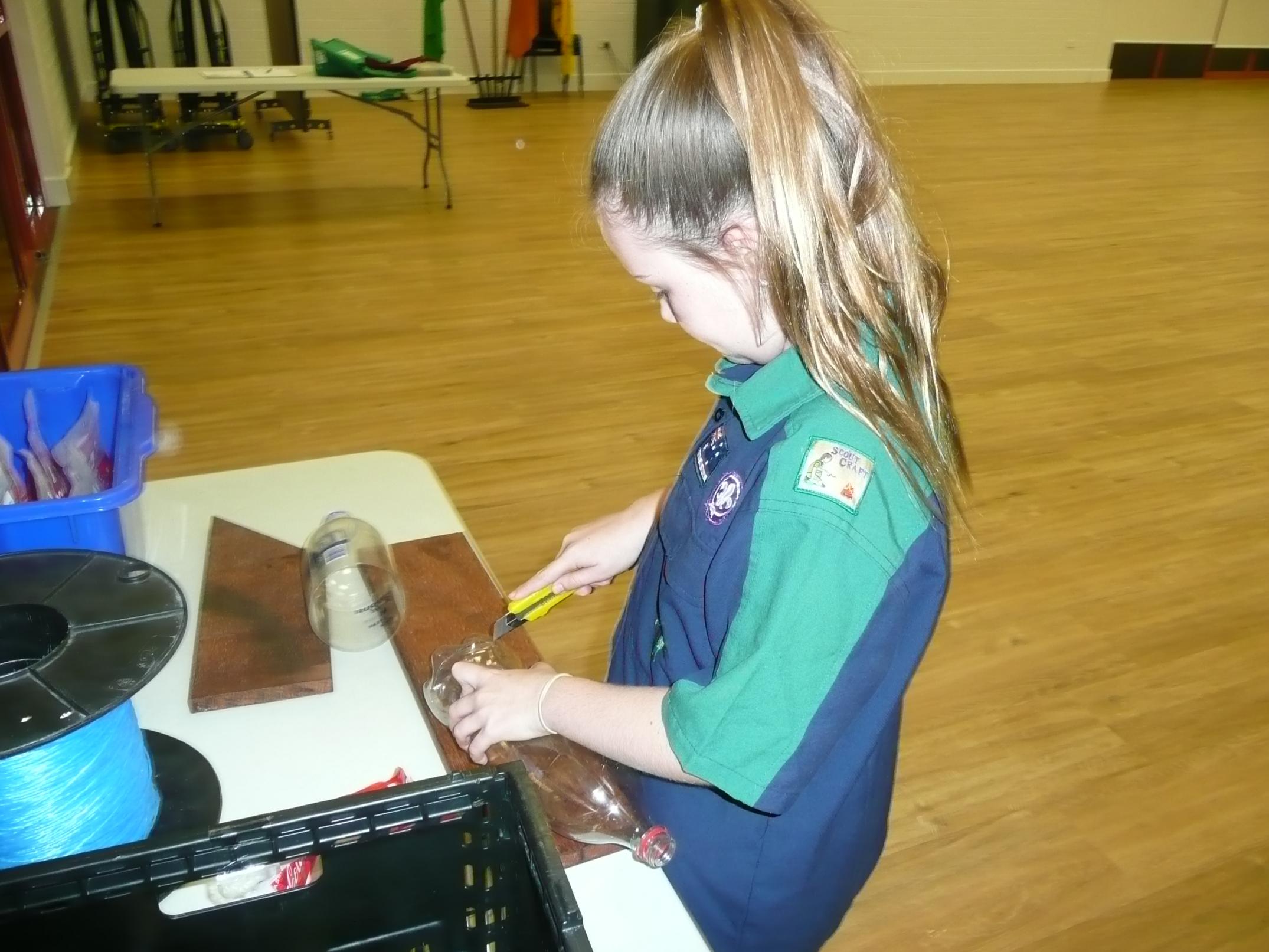 For the final part of the evening we had a go at making ropes, firstly we tested turning plastic bottles in to a long strad which we would make in to a rope.