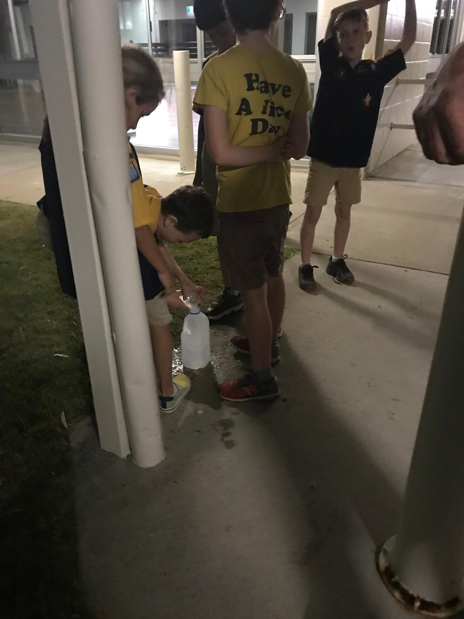 This left us with just enough time for one last game, Oxygen Tank Relay. The Cub Scouts were trapped on an alien world and their oxygen was running out! To get more they had to run down to the liquid oxygen contained and fill their tanks up, before running back and pouring it in to the space stations supply tank. At the end of 3 minutes the team with the most liquid oxygen were the winners: