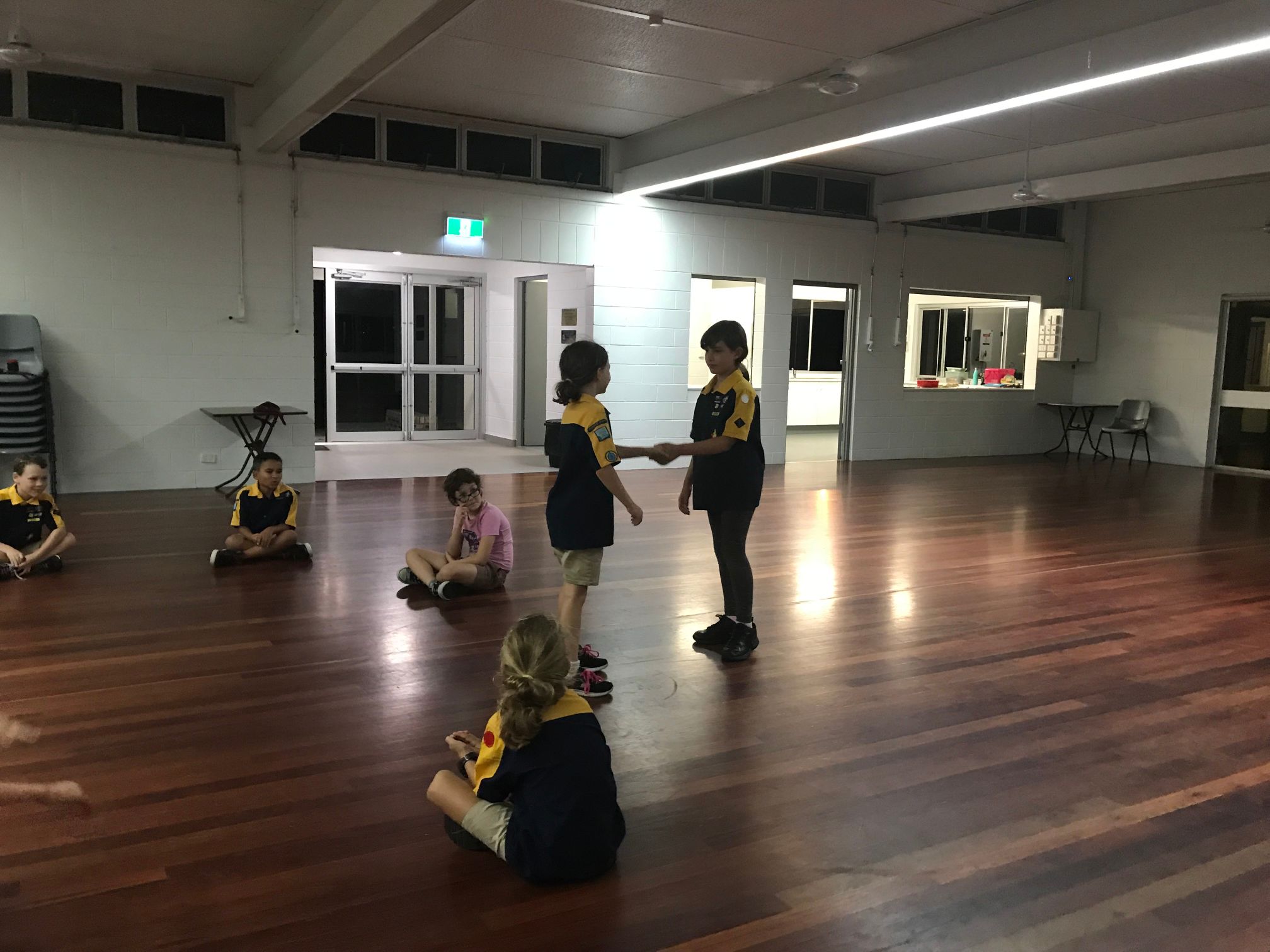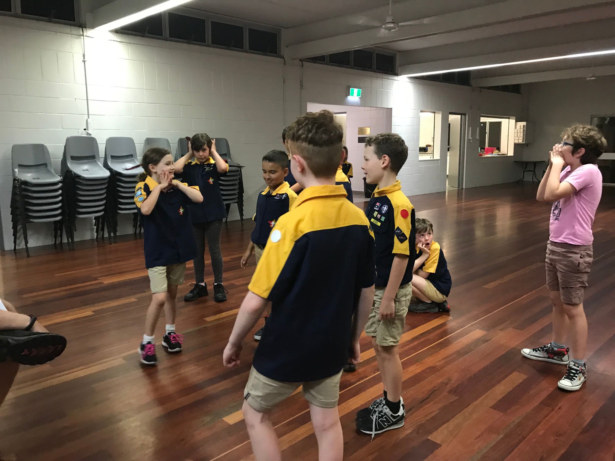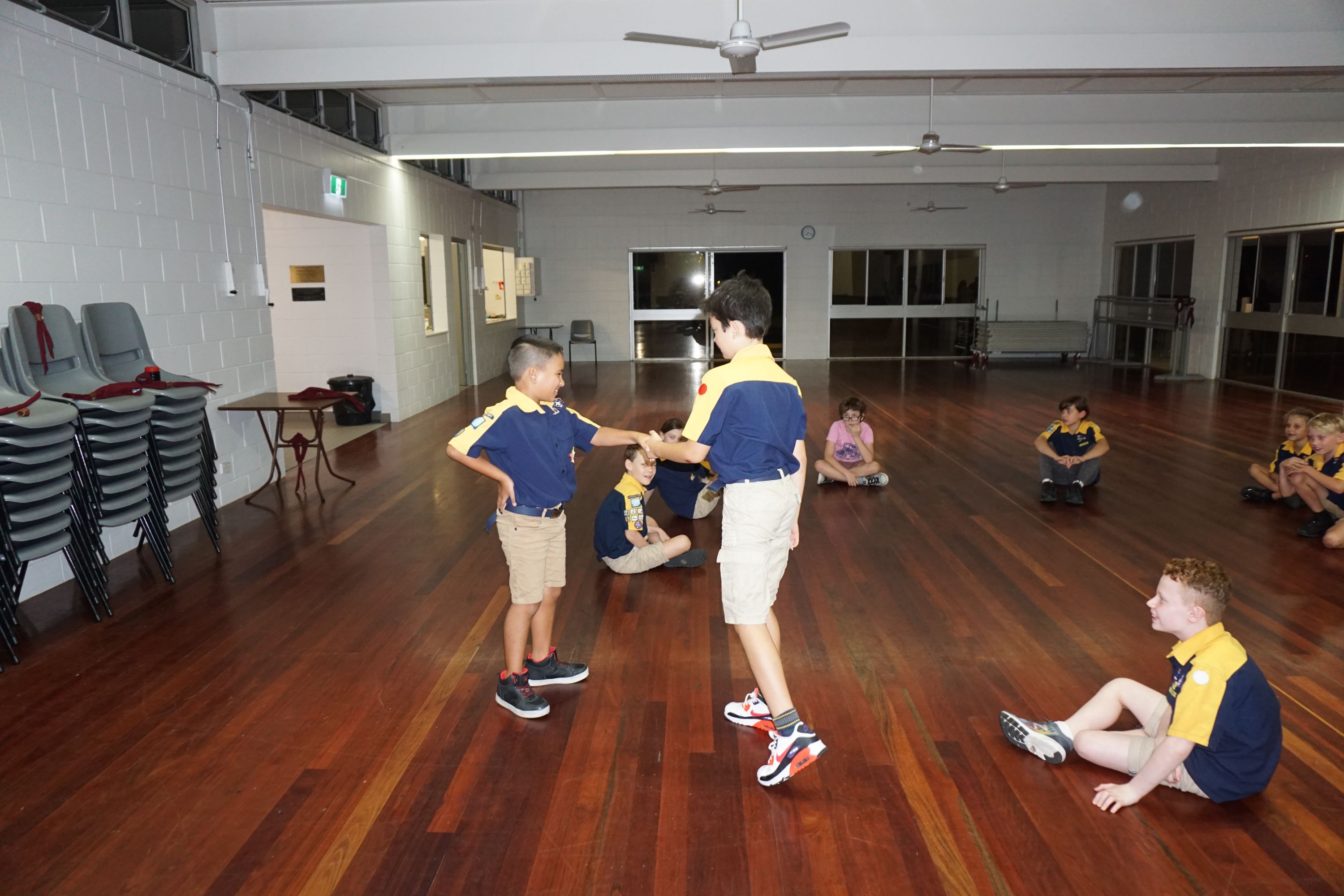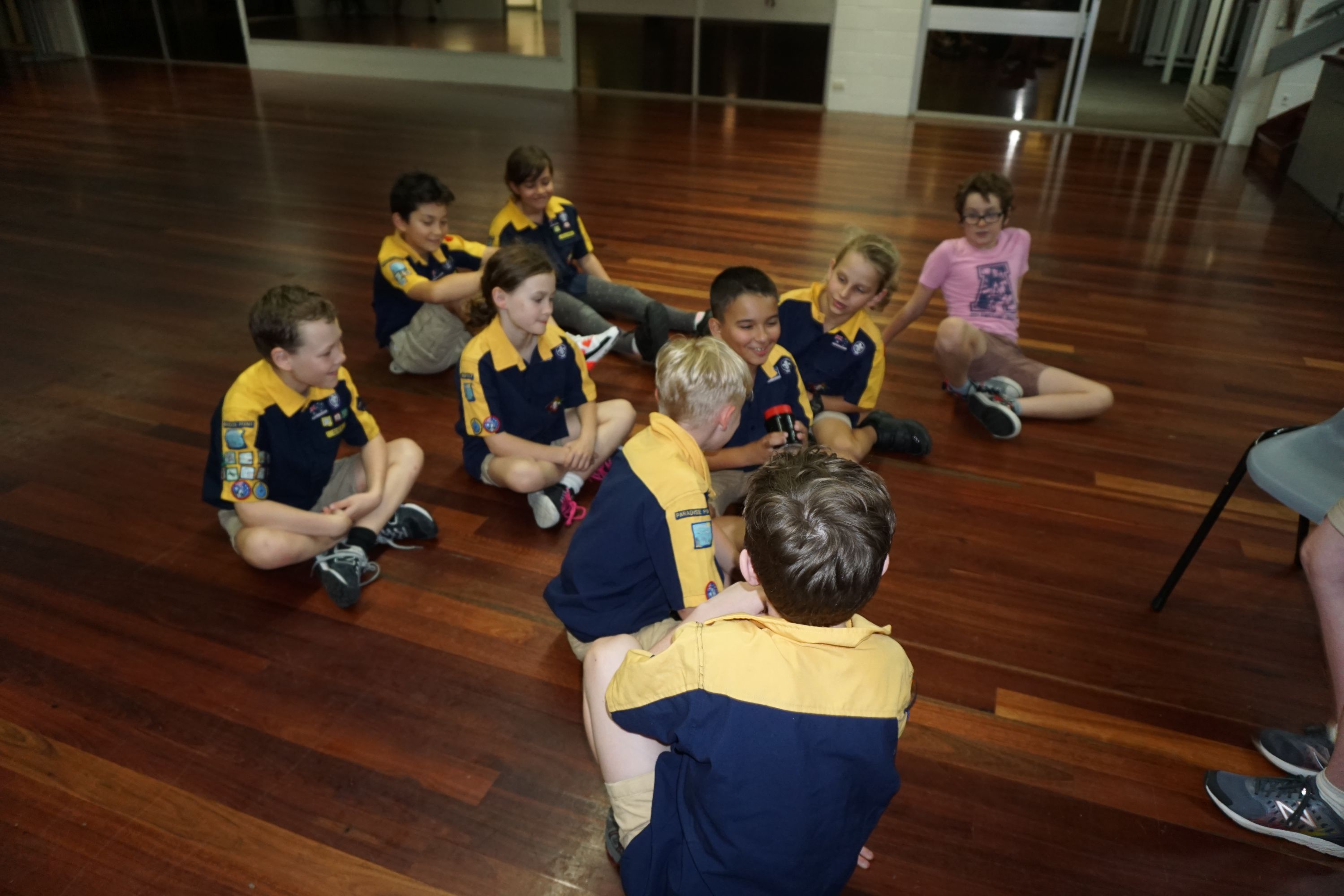 We then learnt the story about why Scouts shake with their left hands, and played Left Hand Tag. The Cub Scouts sat in a circle while the ‘it’ person walked around and picked somebody. That person then stood up and they shook hands, left of course. The ‘it’ cub then got to choose to run clockwise or anticlockwise, while the other Cub Scout had to run the other way, with a race to get back to the starting point and sit down. Last person back was now ‘it’.