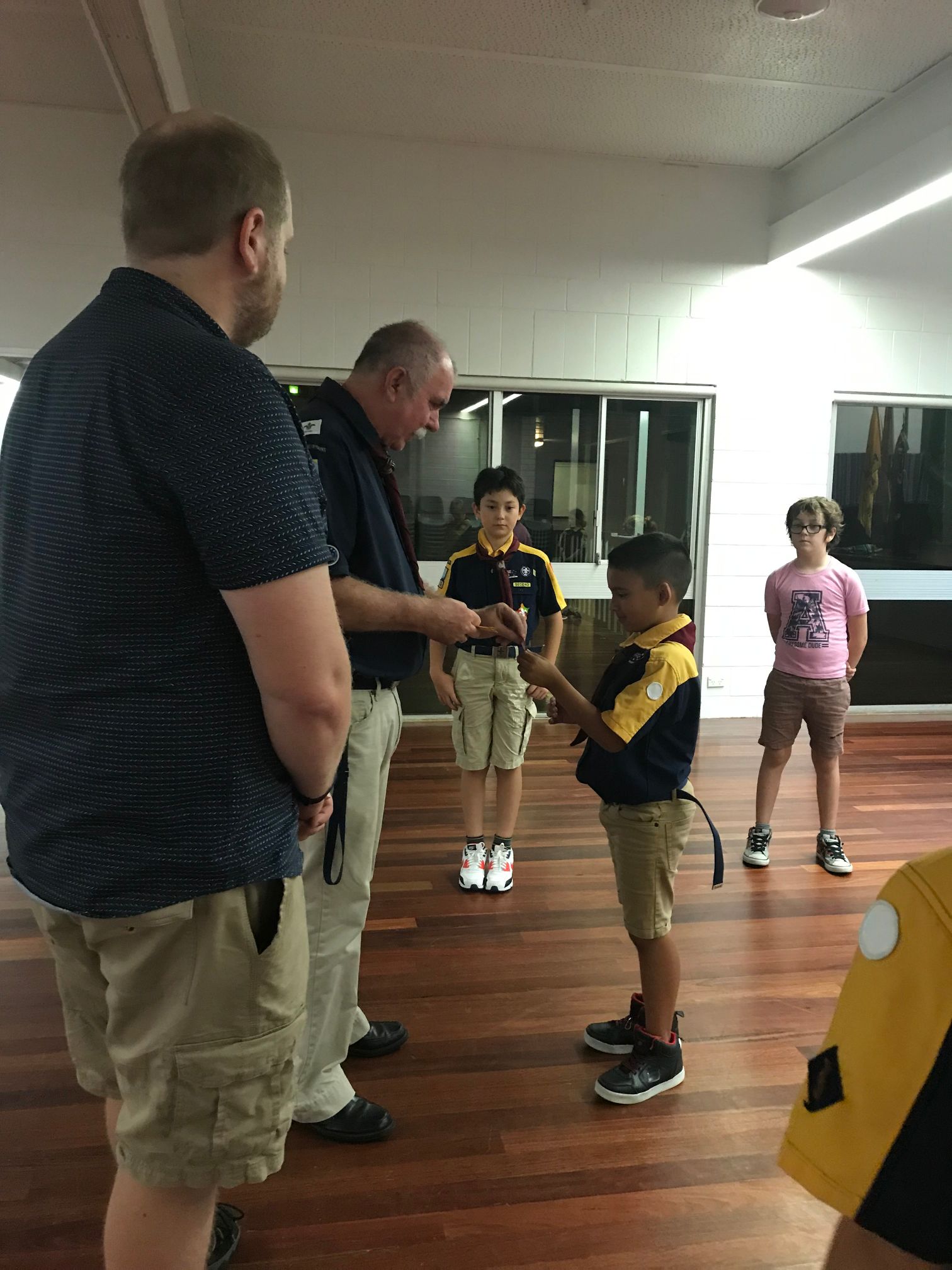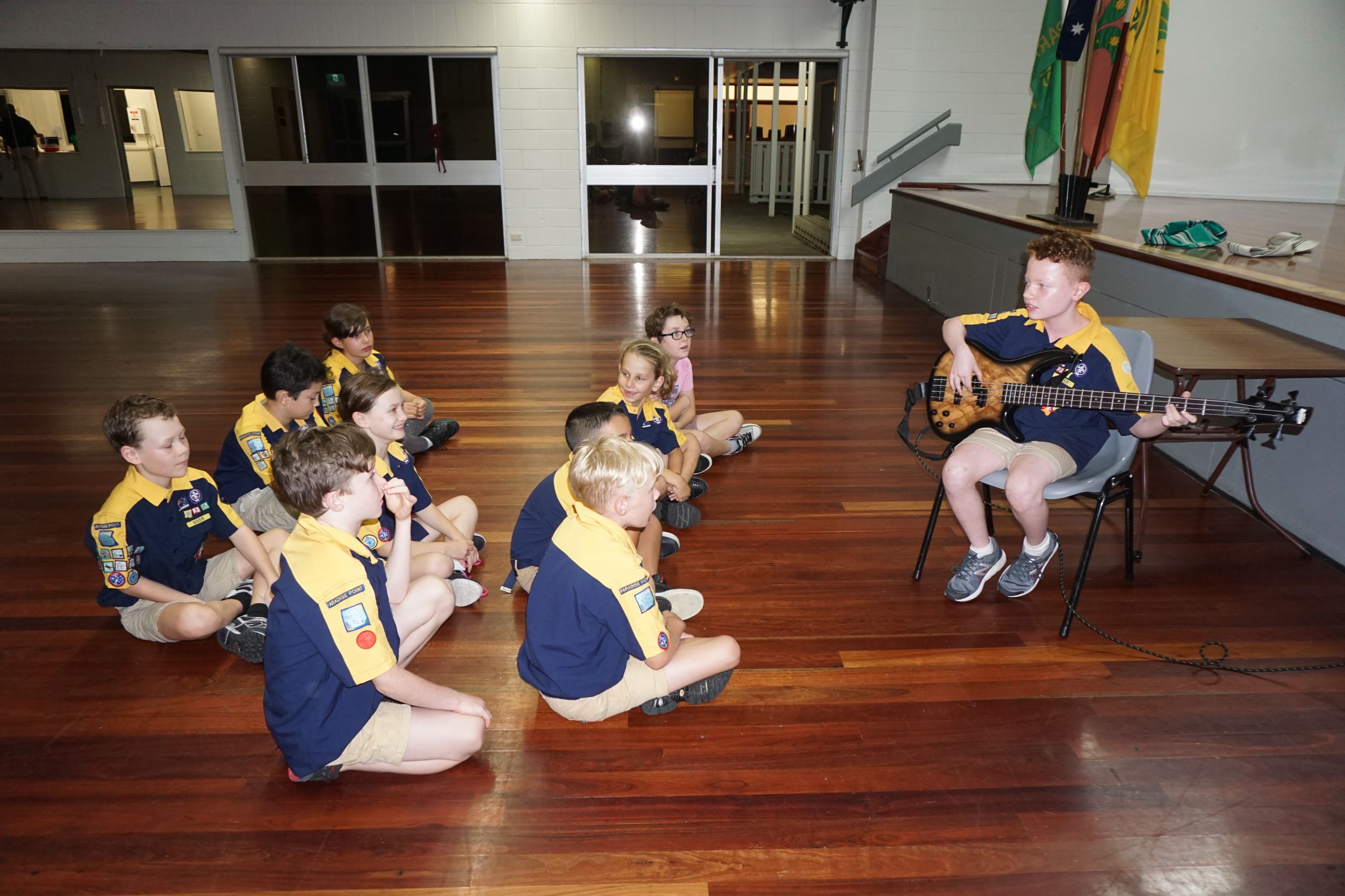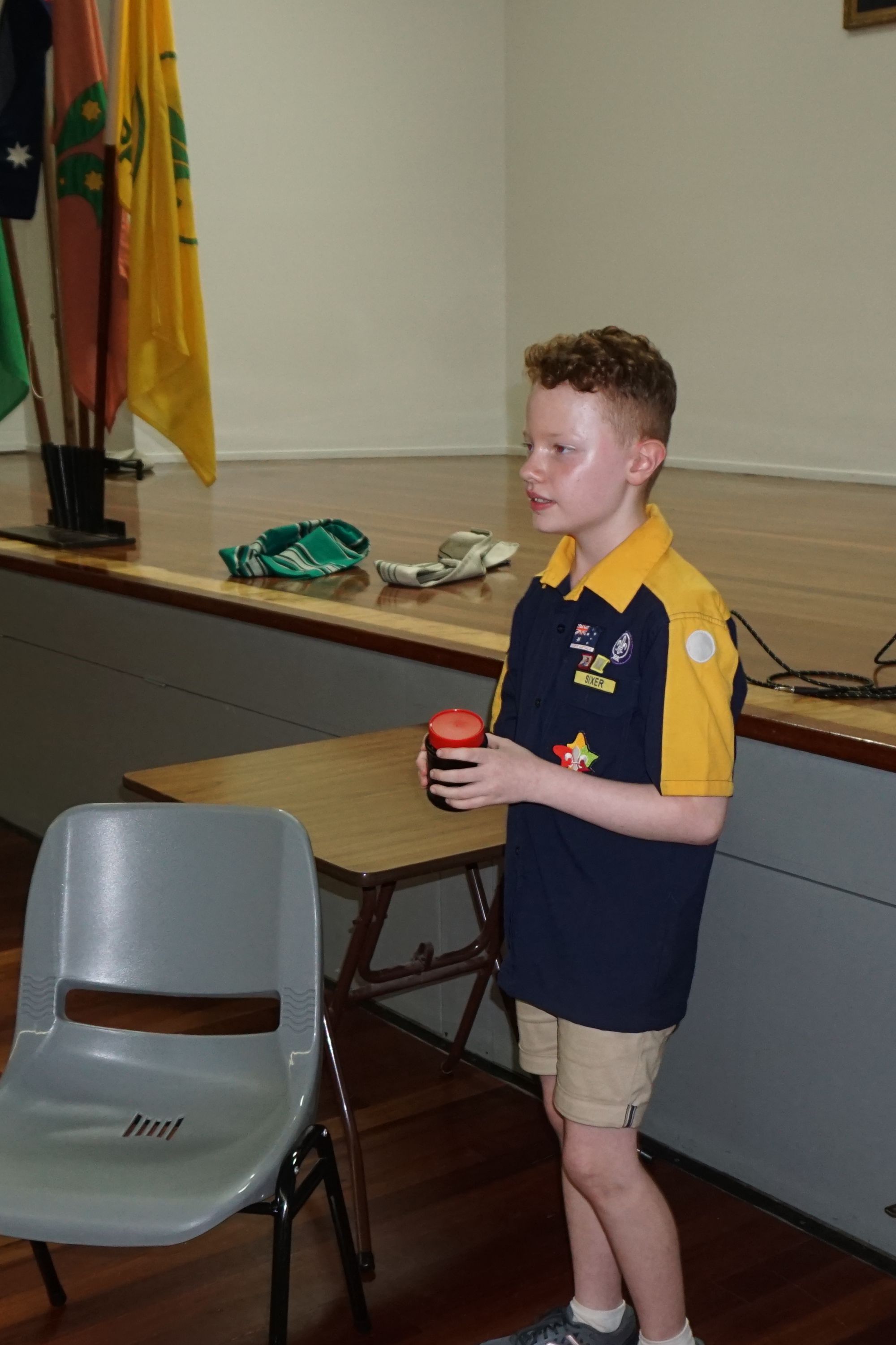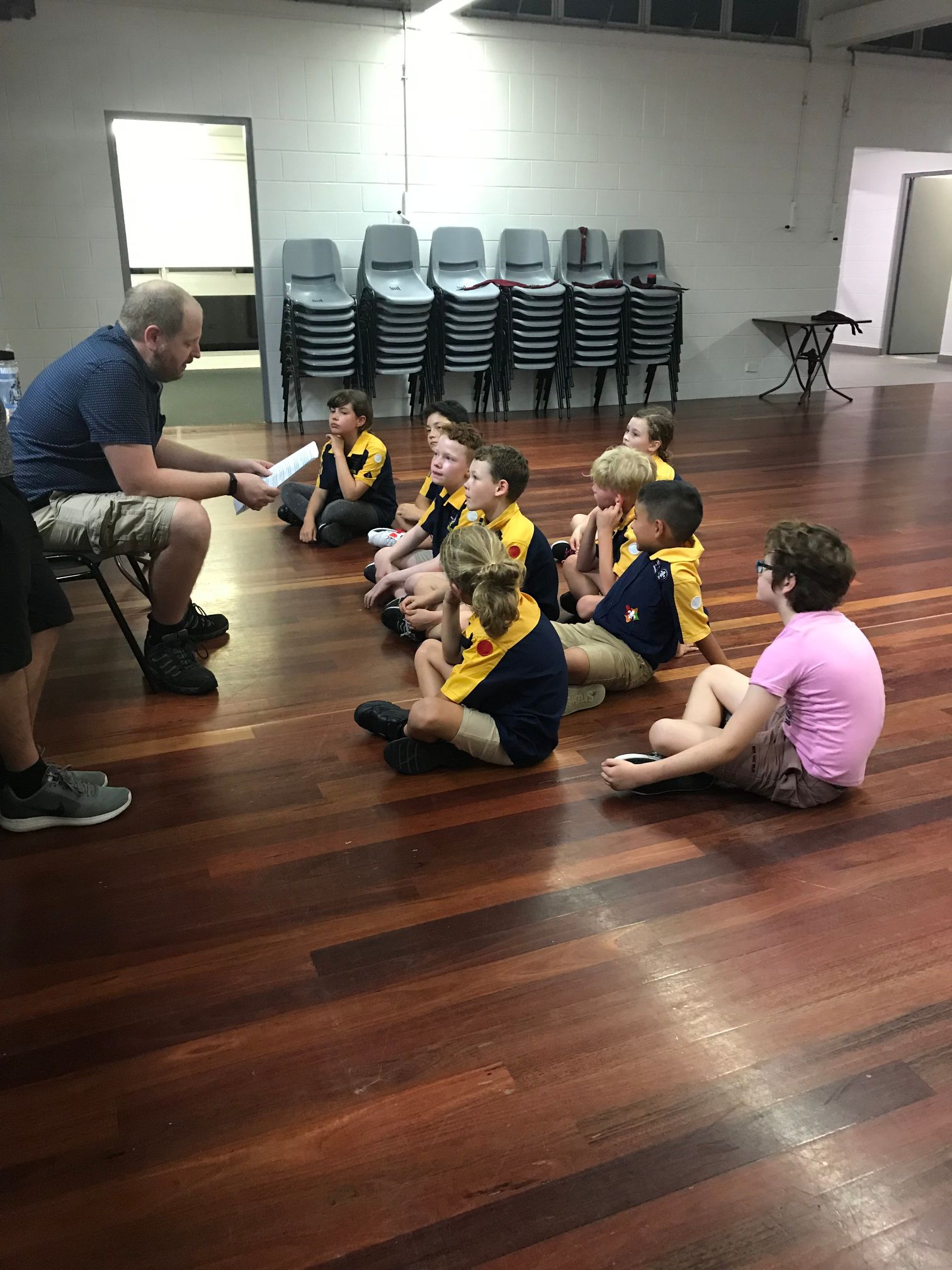 We then learnt the story about why Scouts shake with their left hands, and played Left Hand Tag. The Cub Scouts sat in a circle while the ‘it’ person walked around and picked somebody. That person then stood up and they shook hands, left of course. The ‘it’ cub then got to choose to run clockwise or anticlockwise, while the other Cub Scout had to run the other way, with a race to get back to the starting point and sit down. Last person back was now ‘it’.