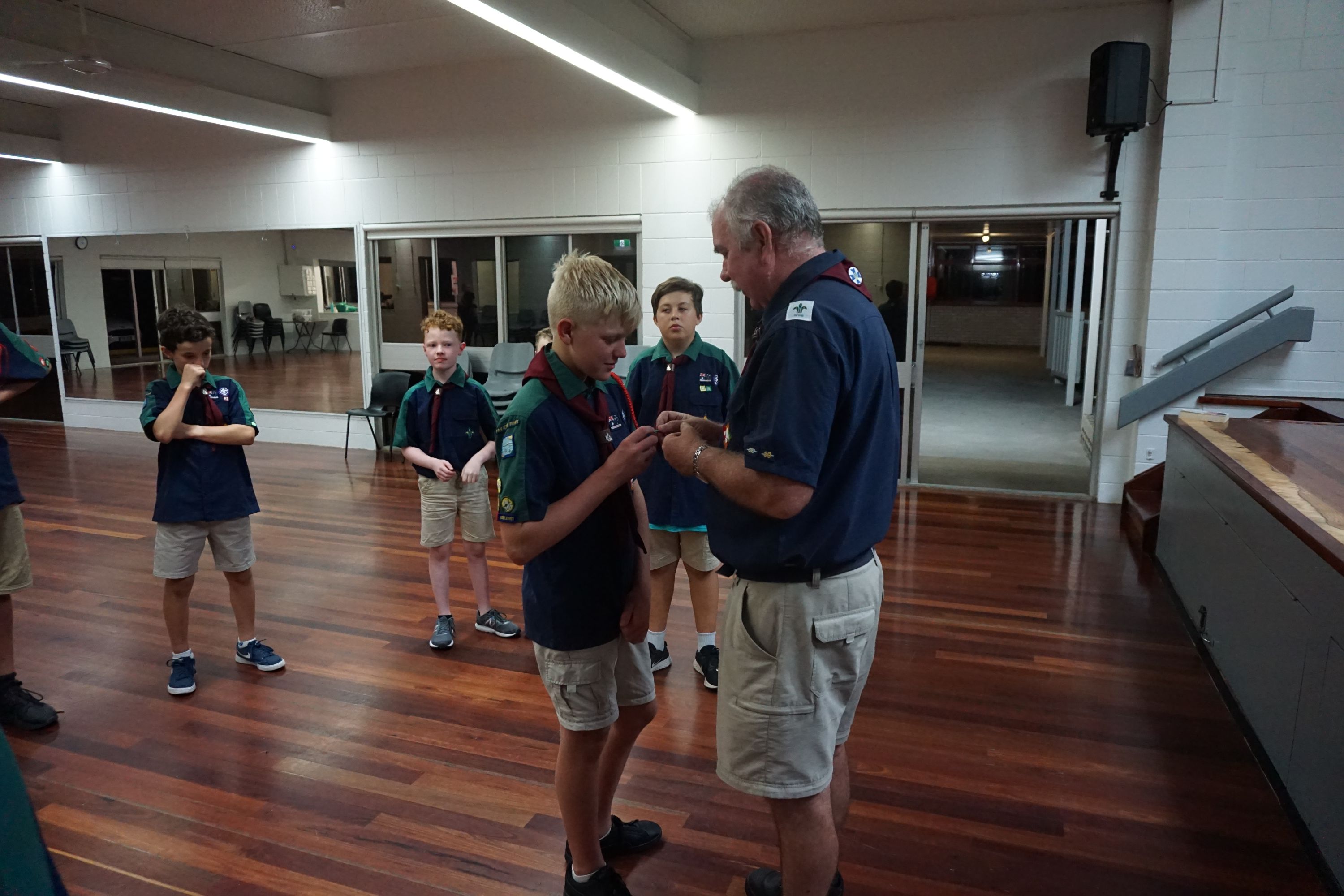We started the night by investing our, and the worlds, newest member of the Scouting family.