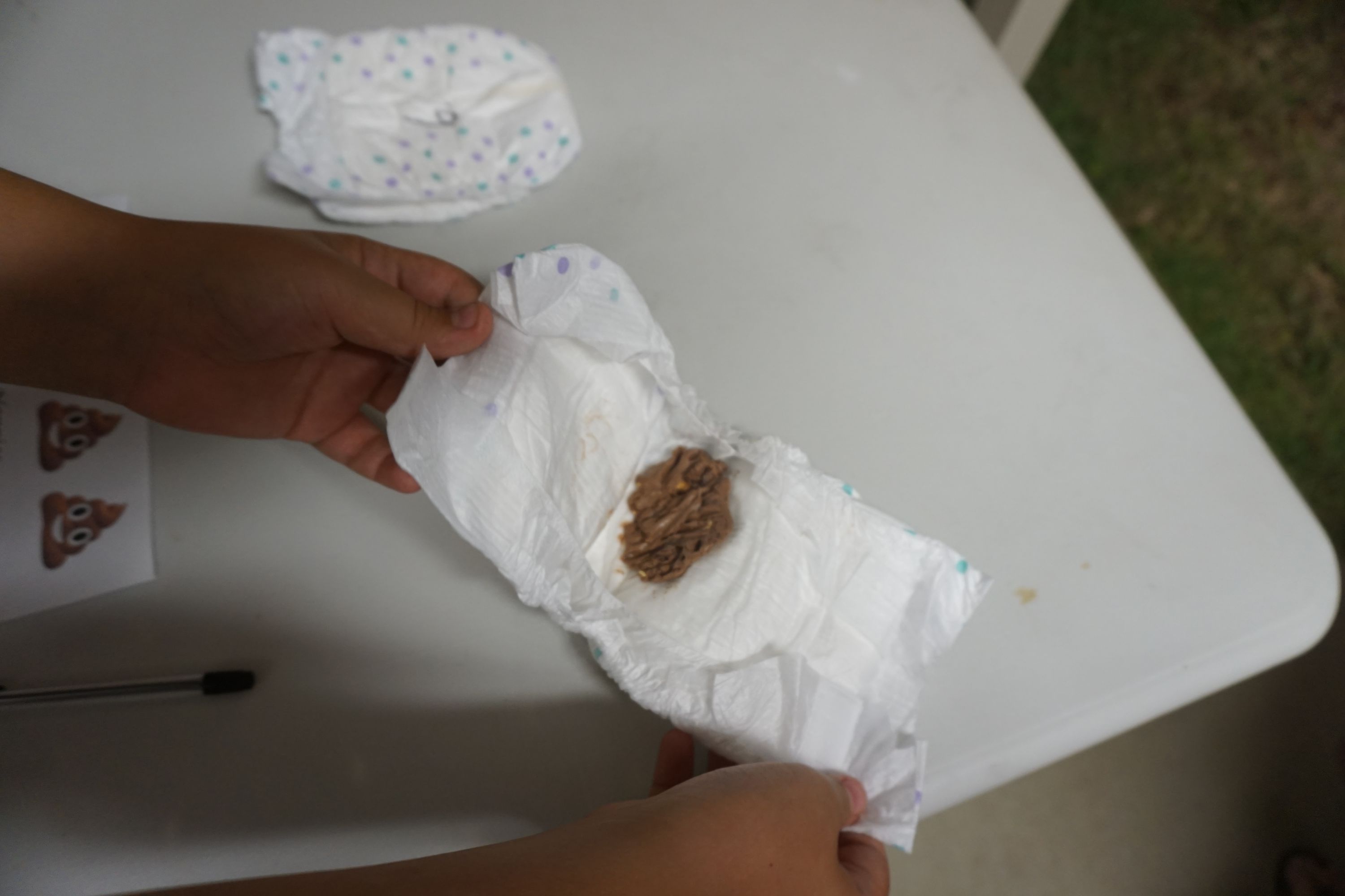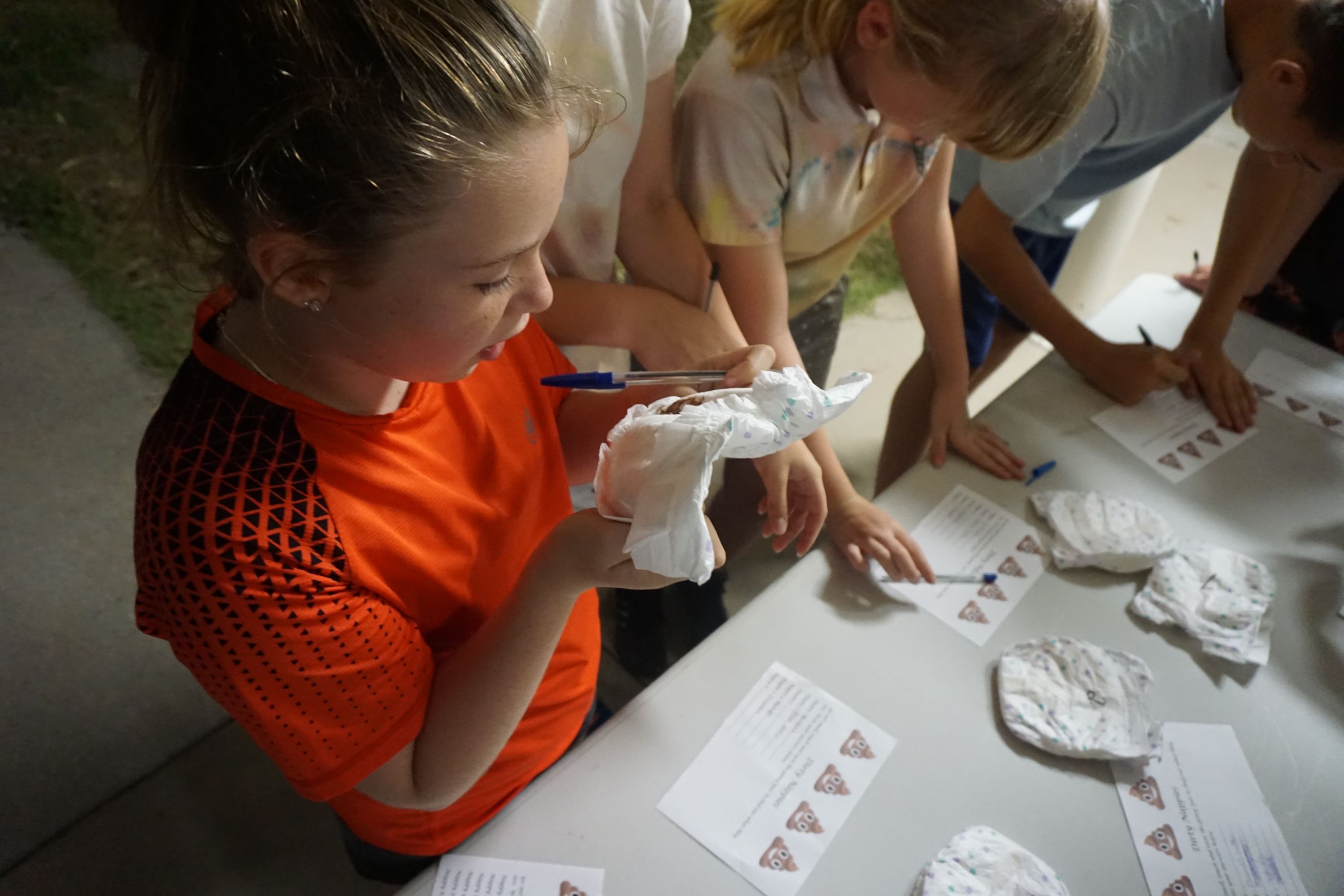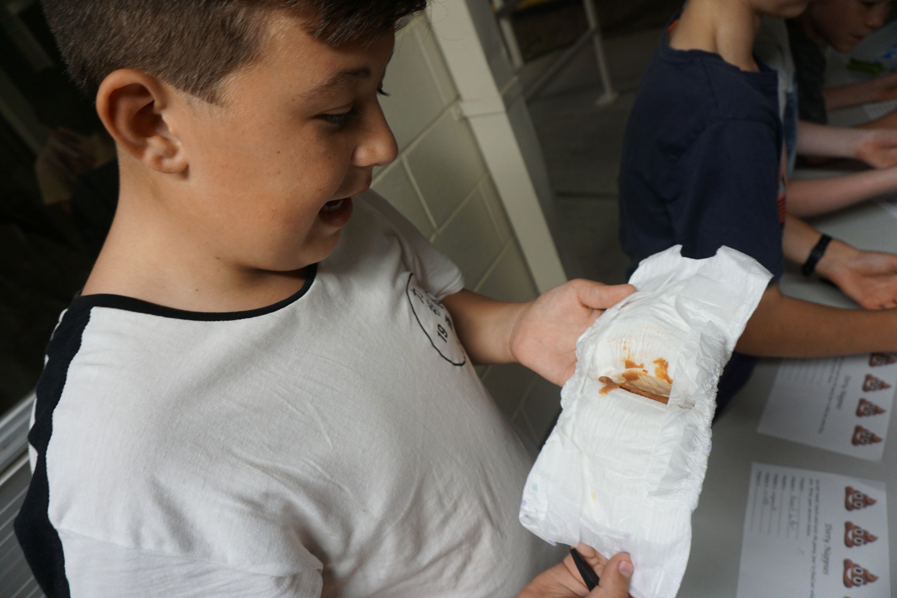 The scouts were presented with a number of nappies that were filled with various foods that looked like poop, the Scouts task to work out what was in each nappy!