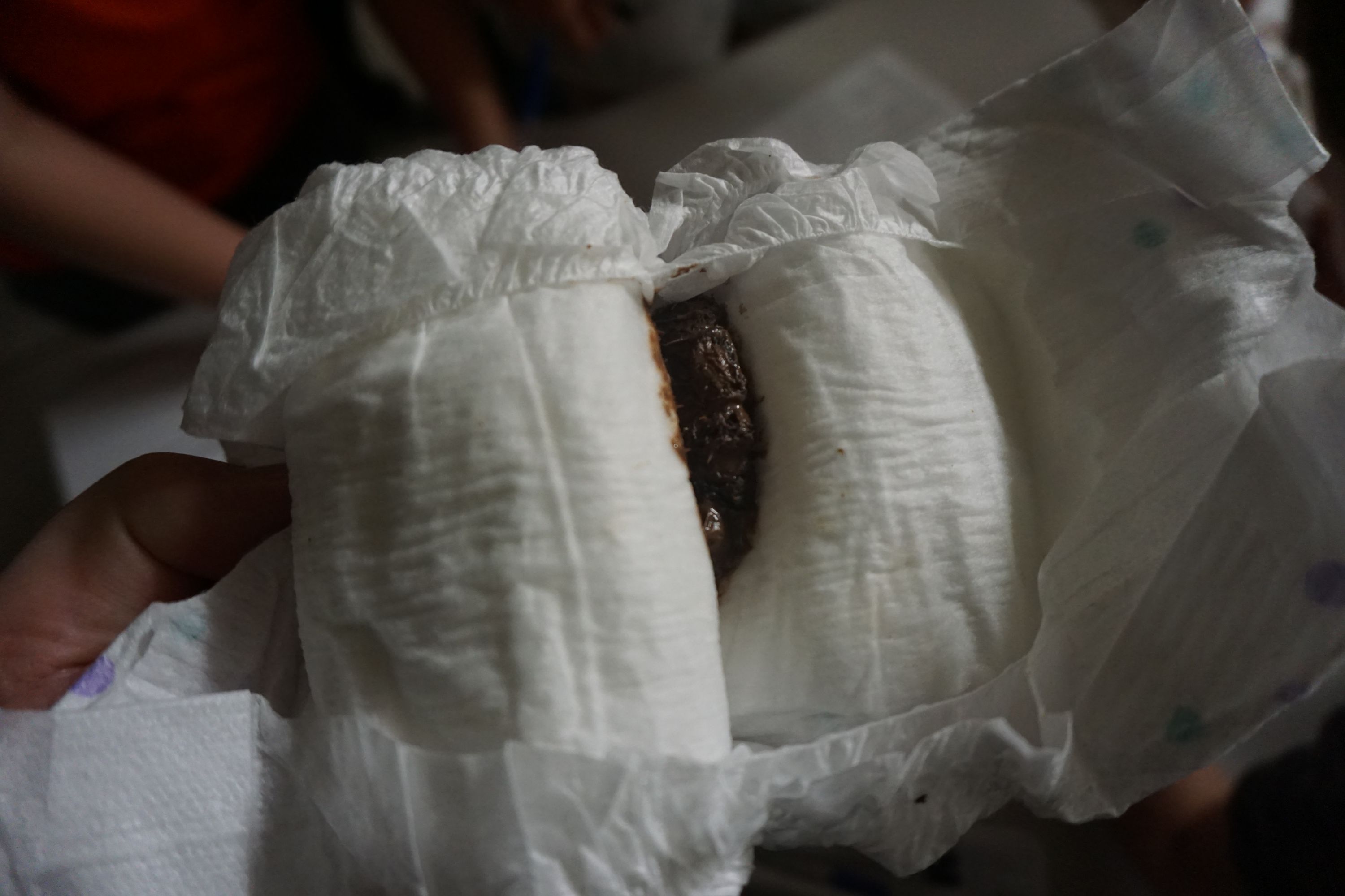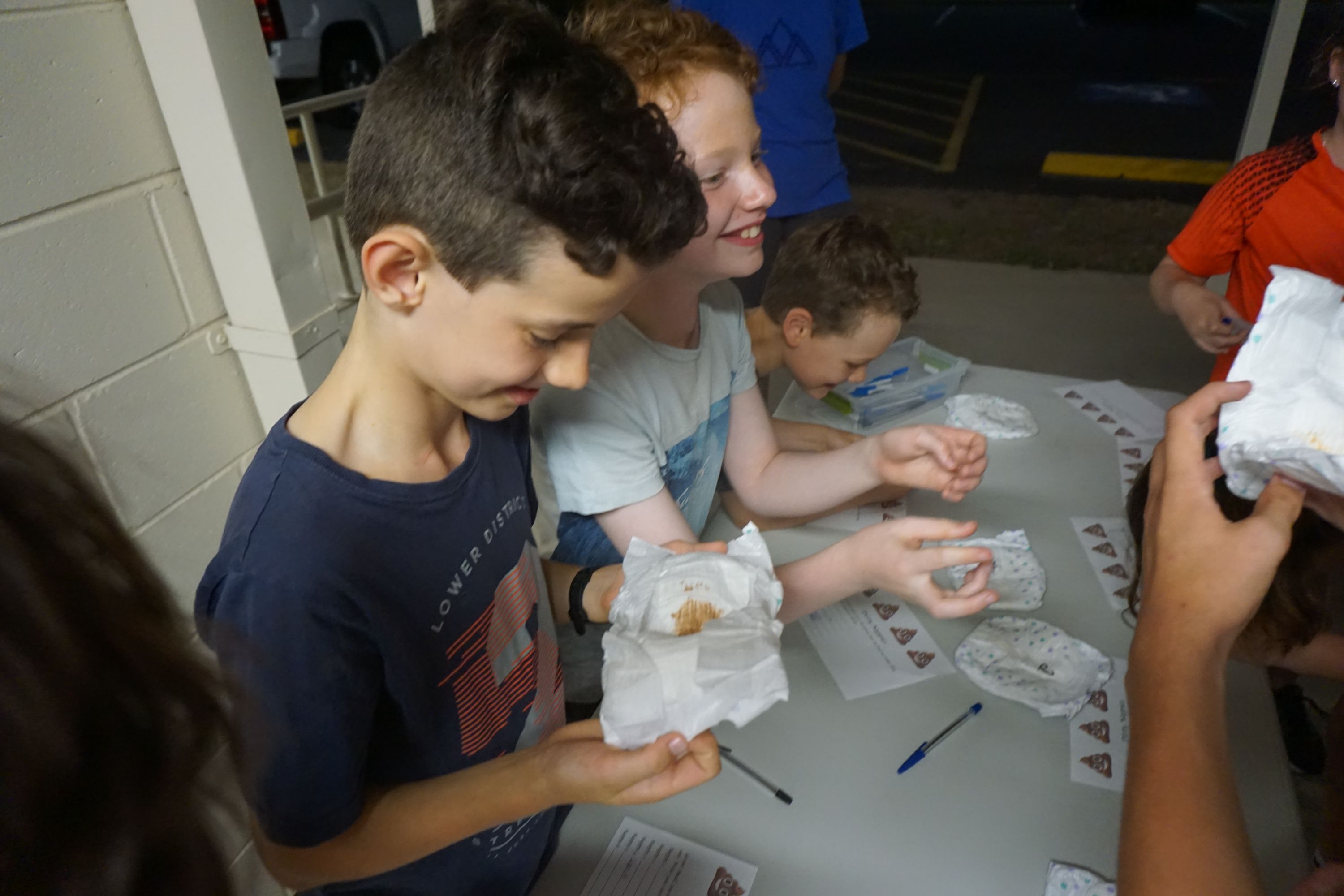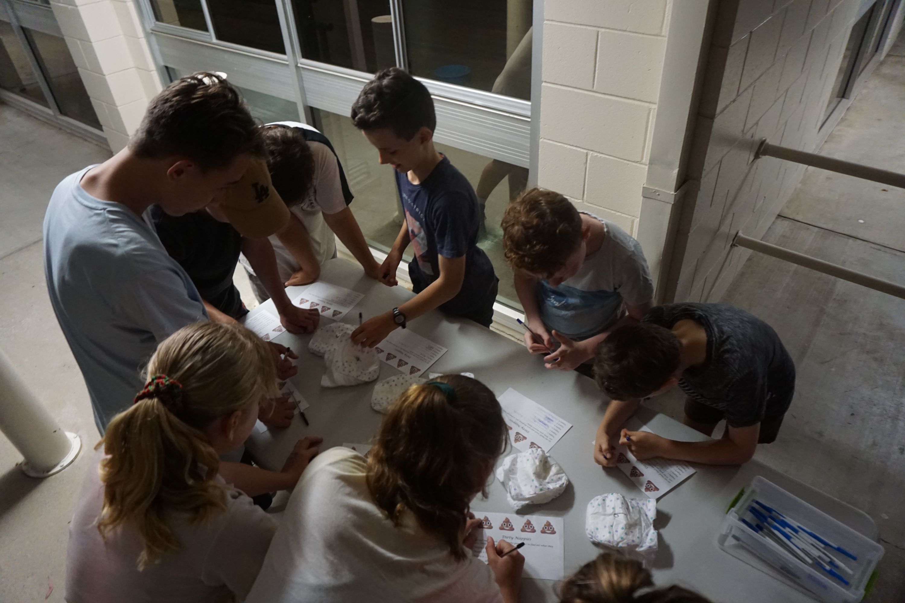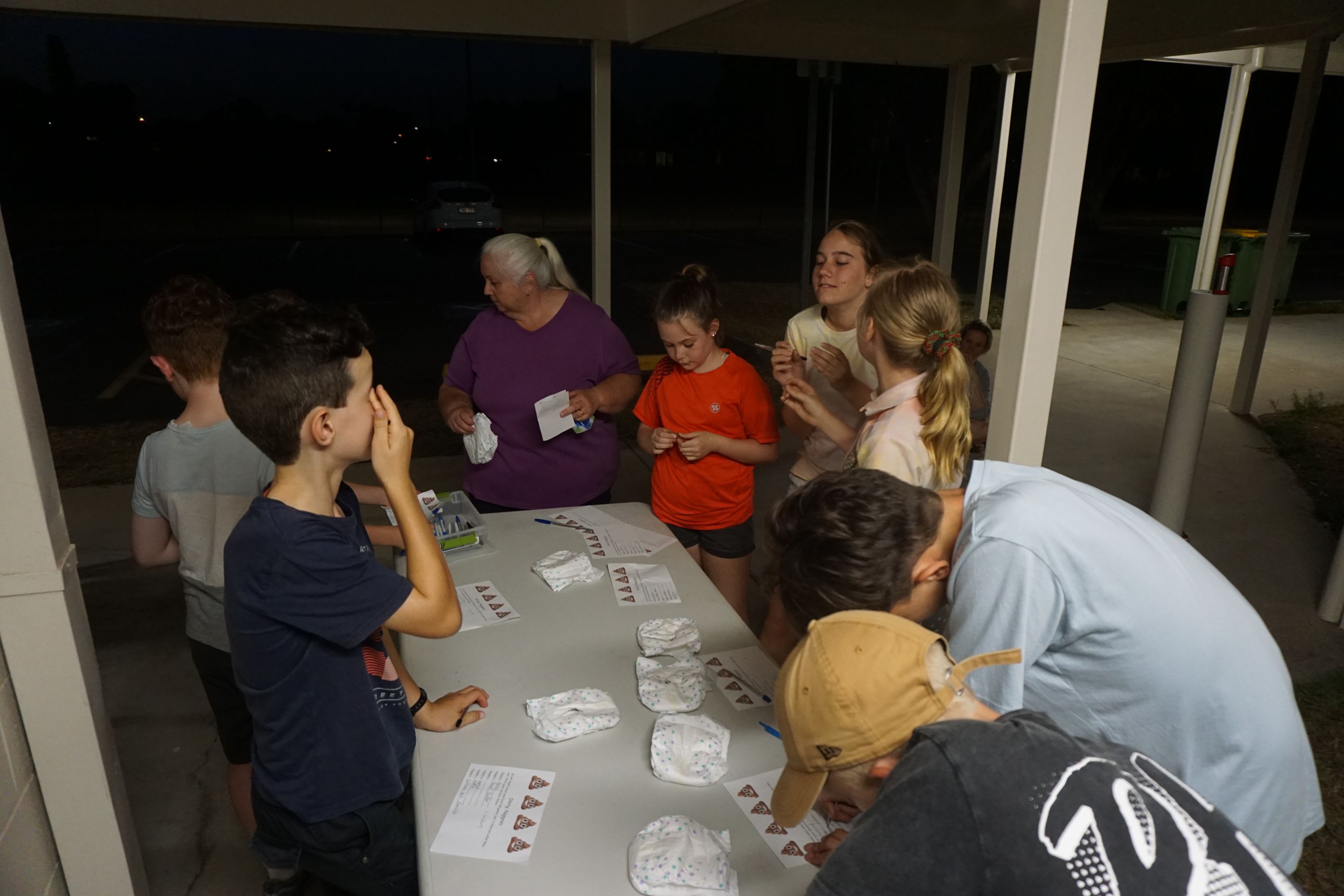 The scouts were presented with a number of nappies that were filled with various foods that looked like poop, the Scouts task to work out what was in each nappy!