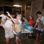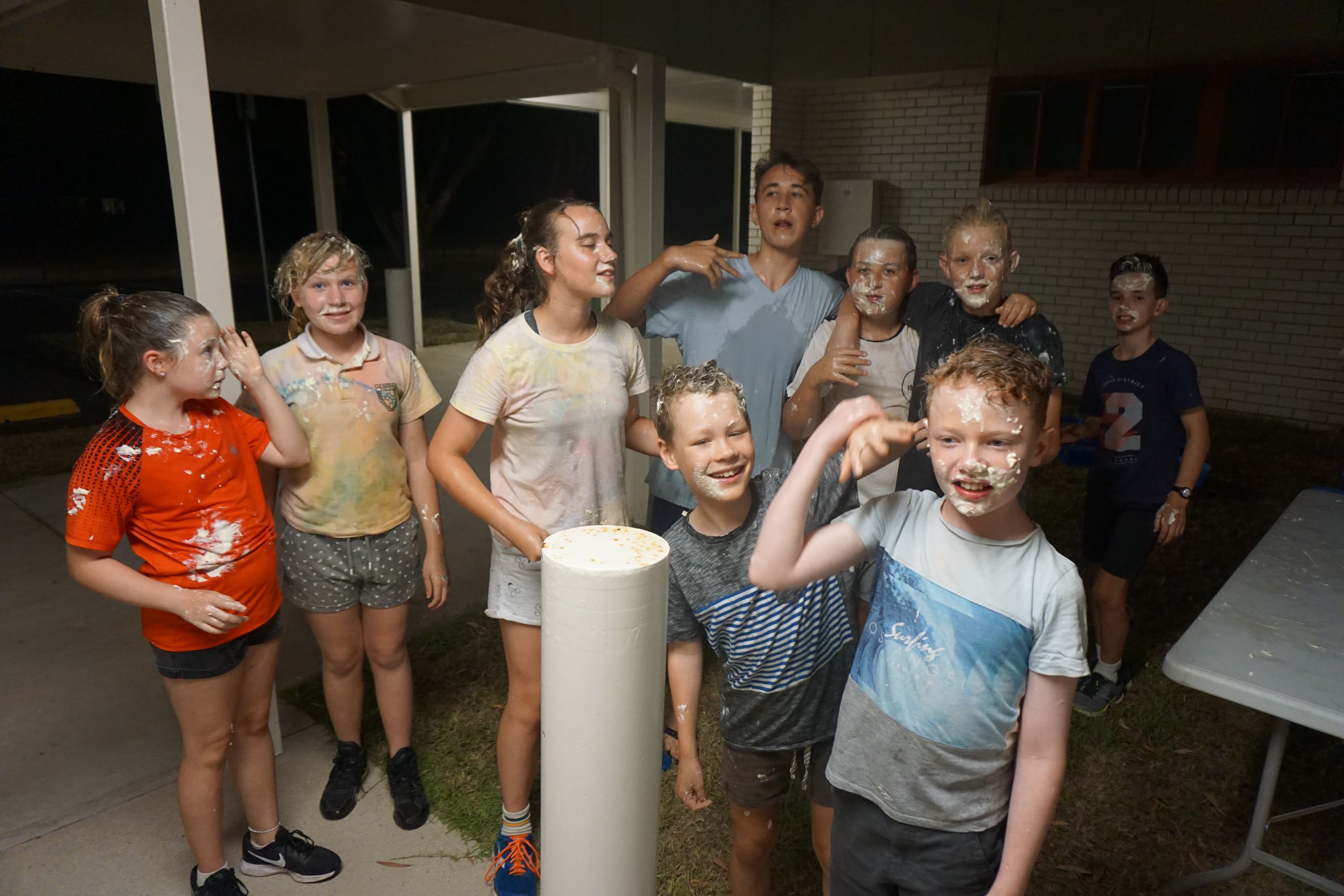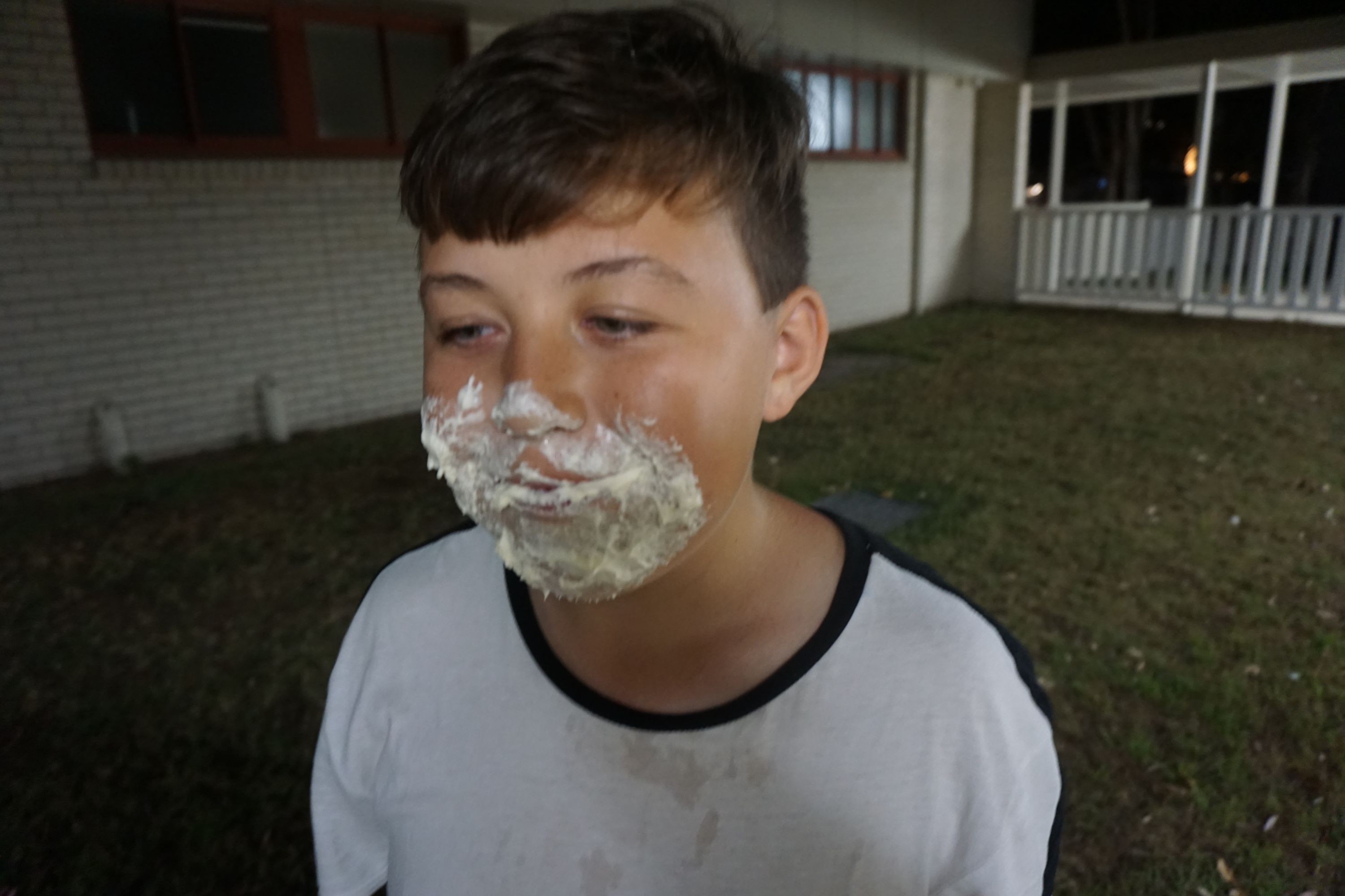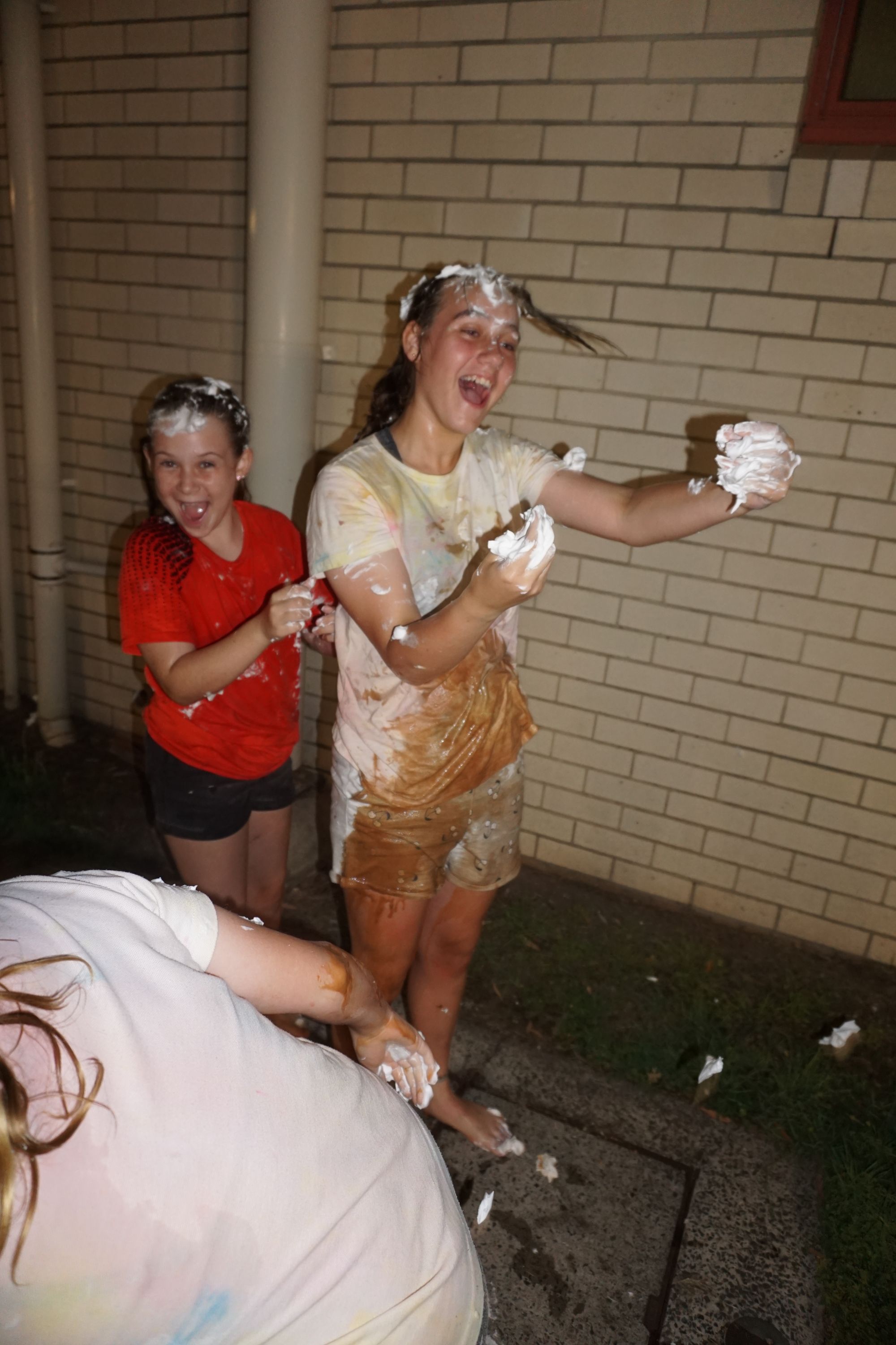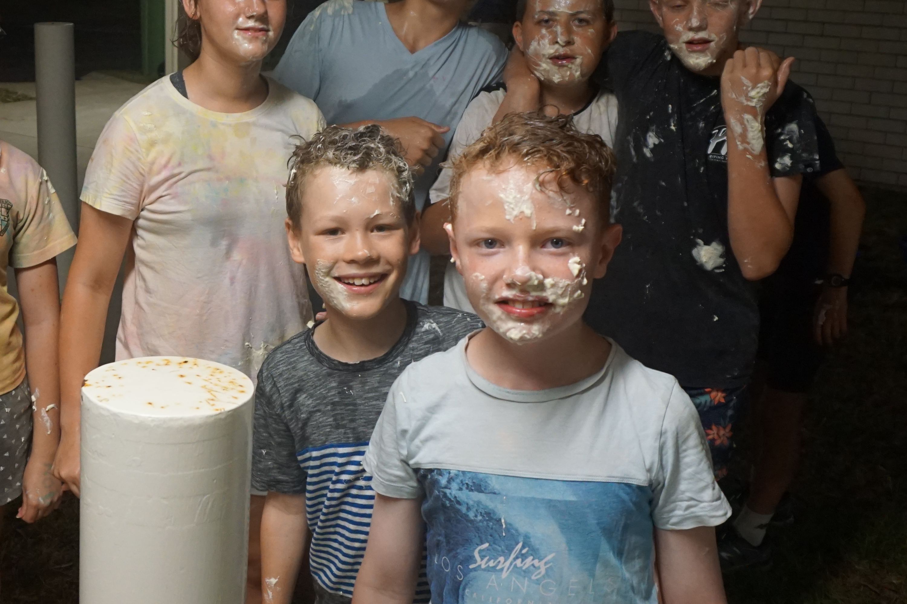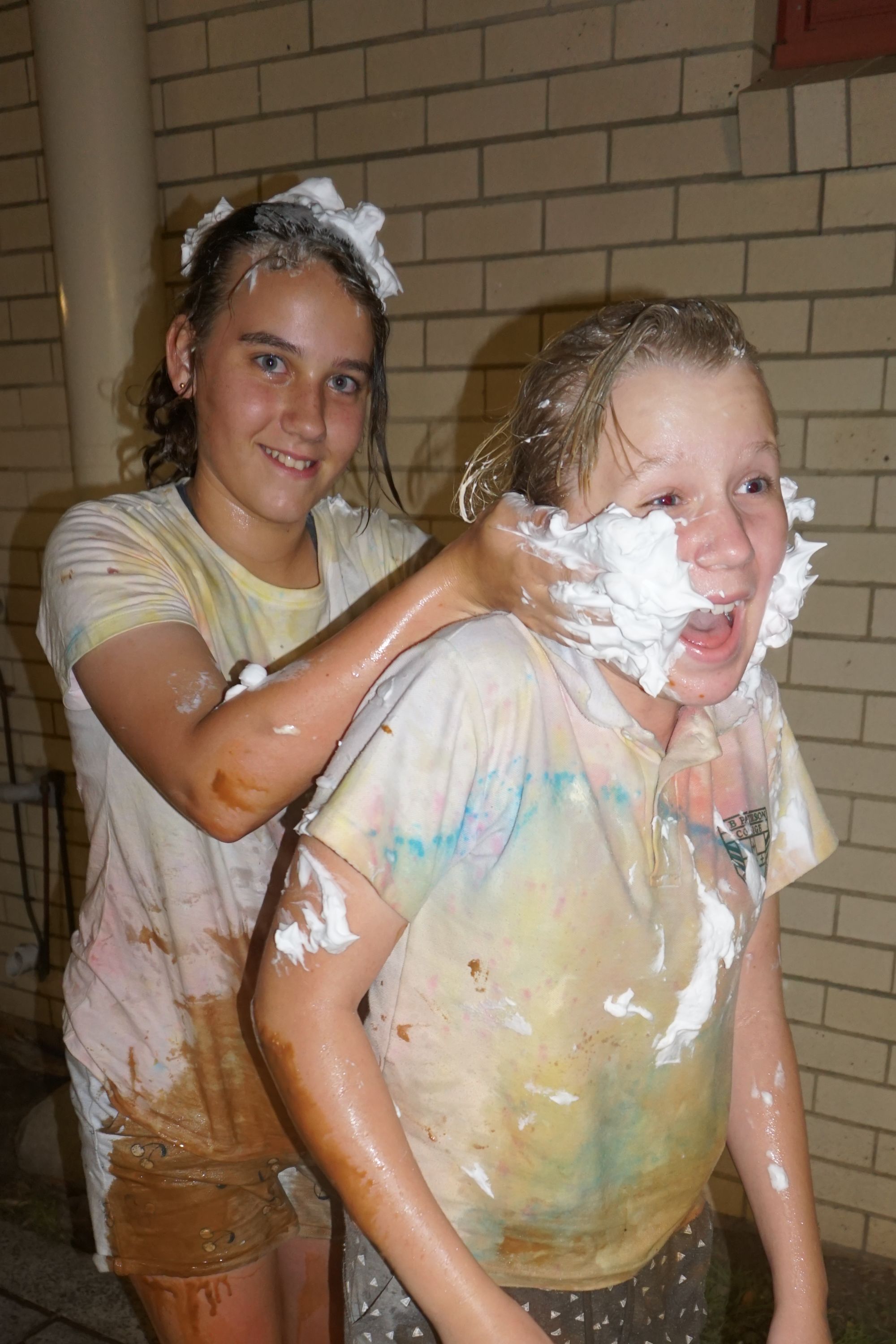 Plates filled with whipped cream and gummy bears, what could be better? The Scouts had to extract all the gummy bears from the cream using only their mouths, oh and faces.