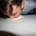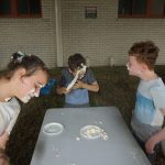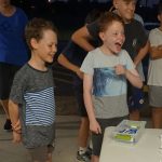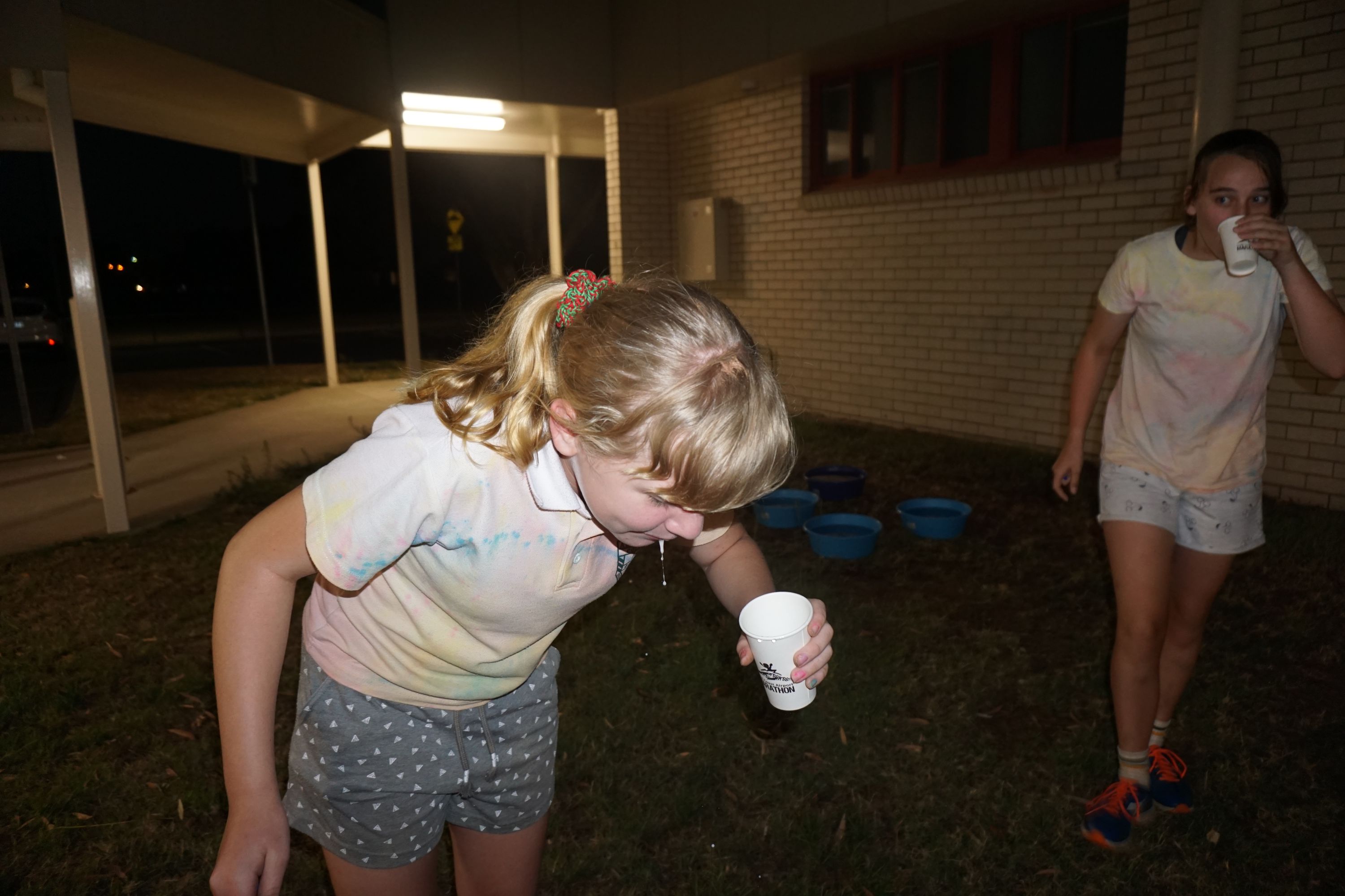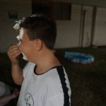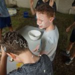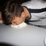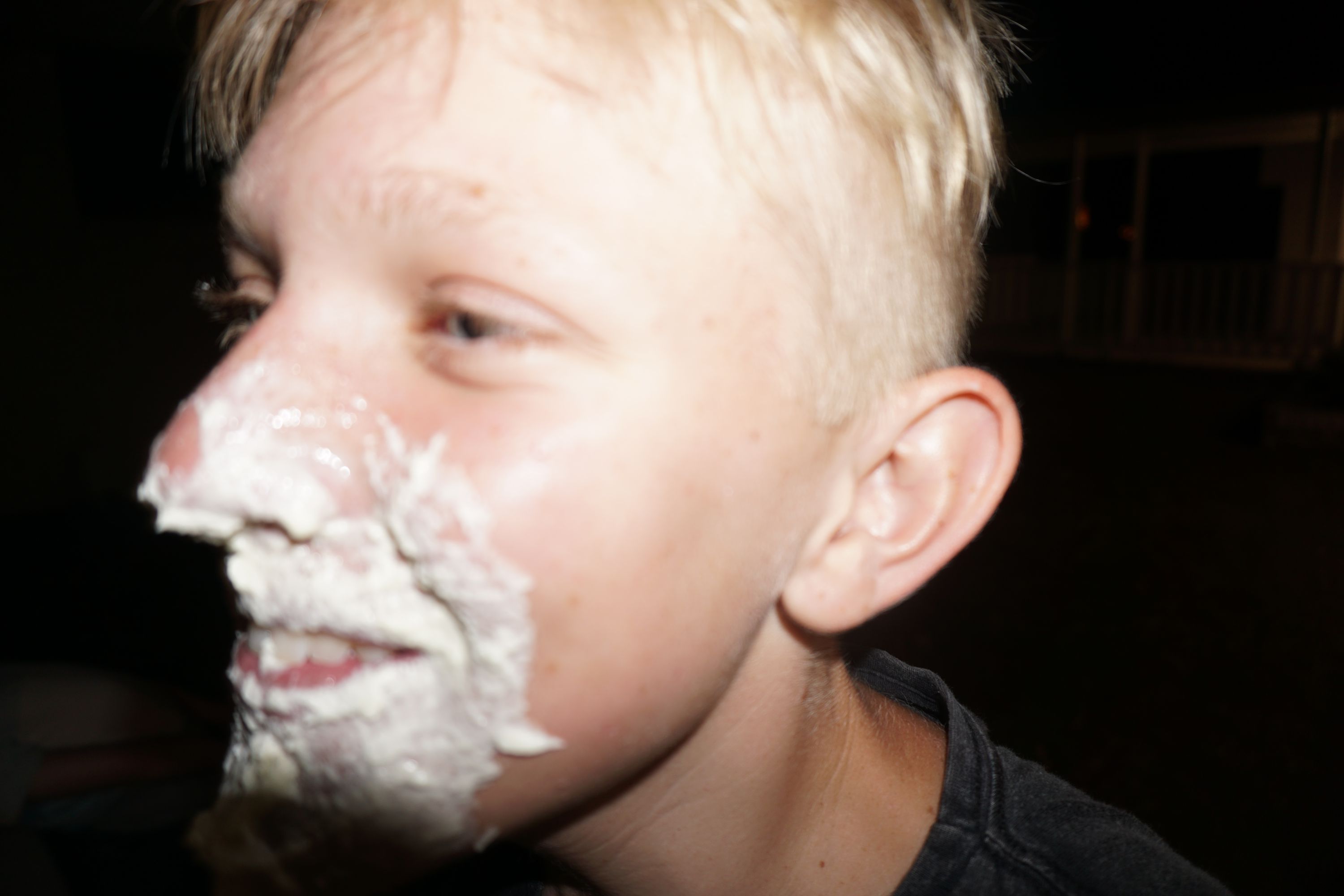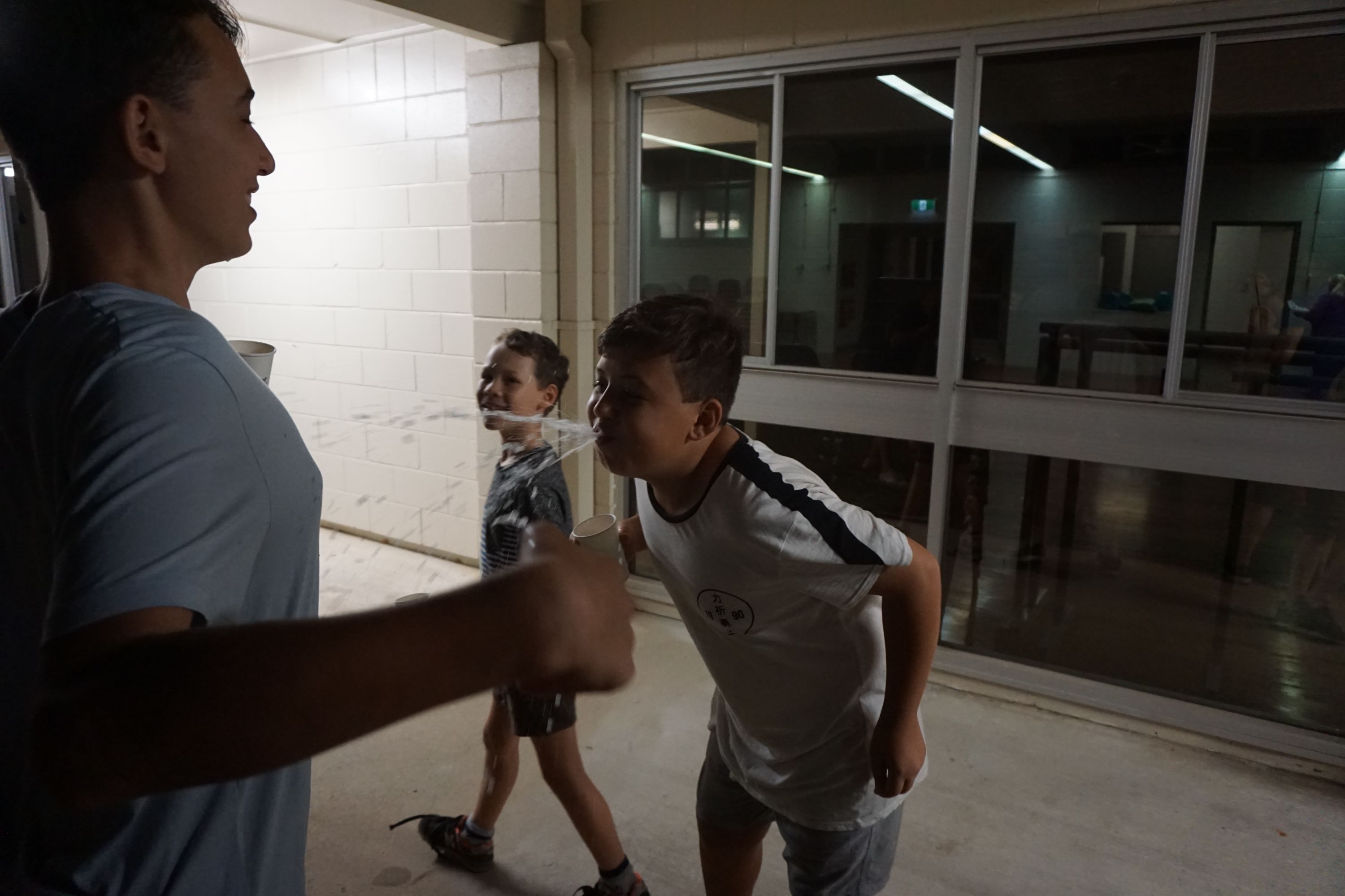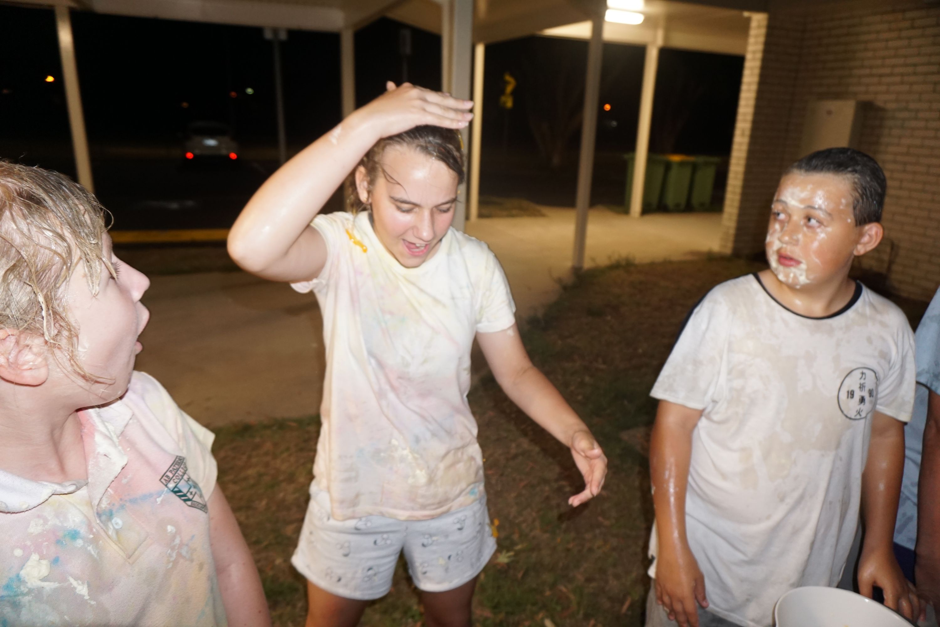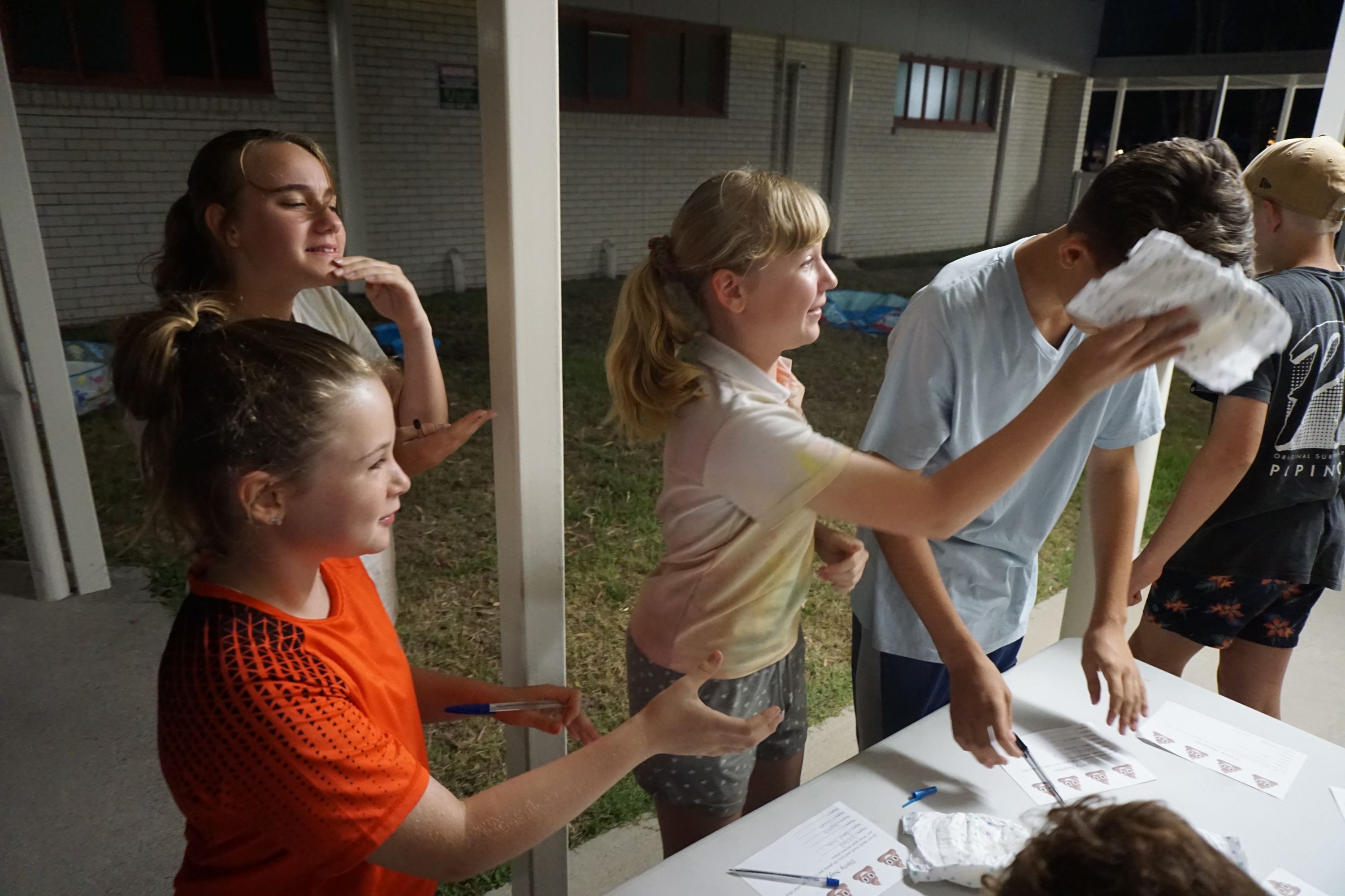 Plates filled with whipped cream and gummy bears, what could be better? The Scouts had to extract all the gummy bears from the cream using only their mouths, oh and faces.