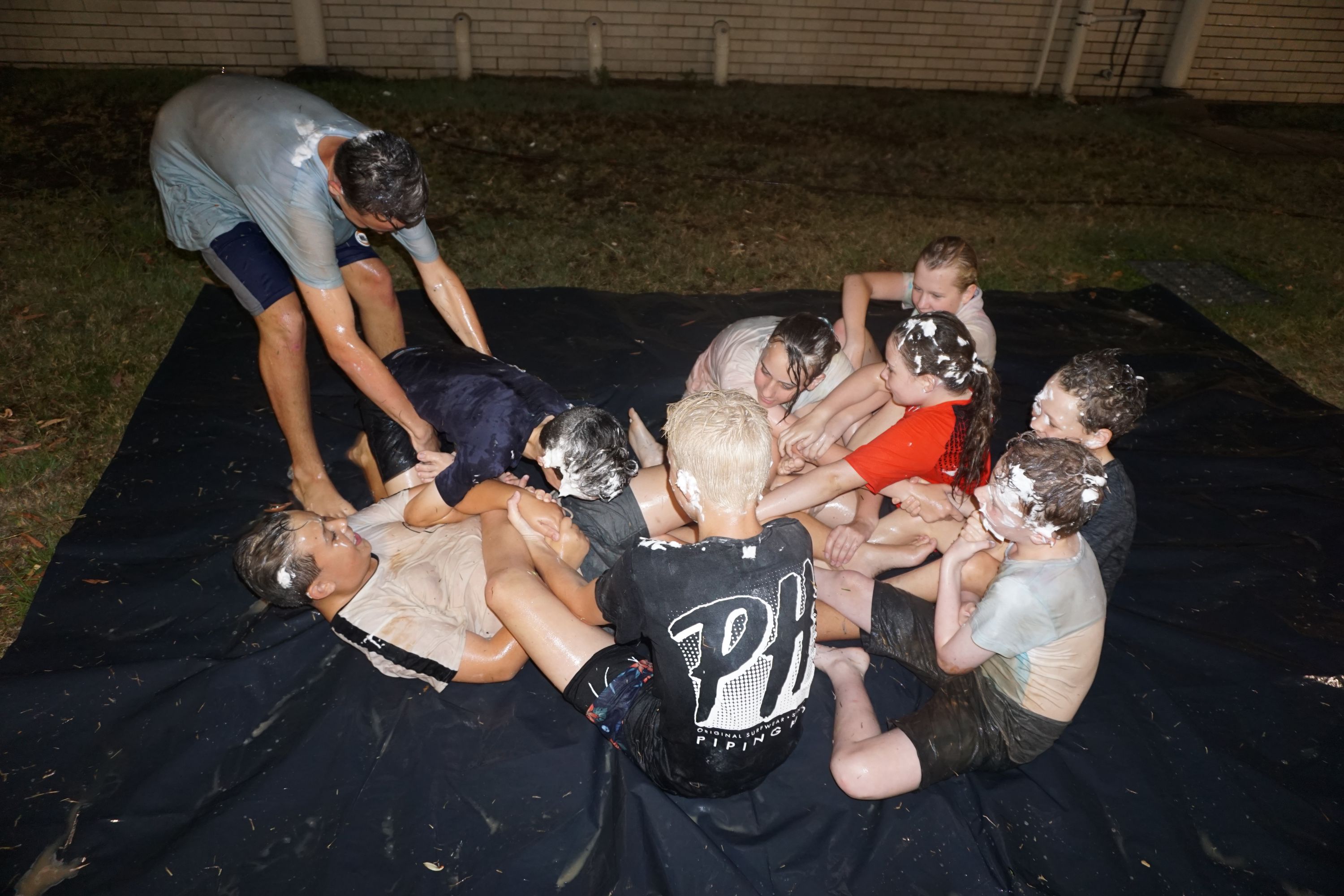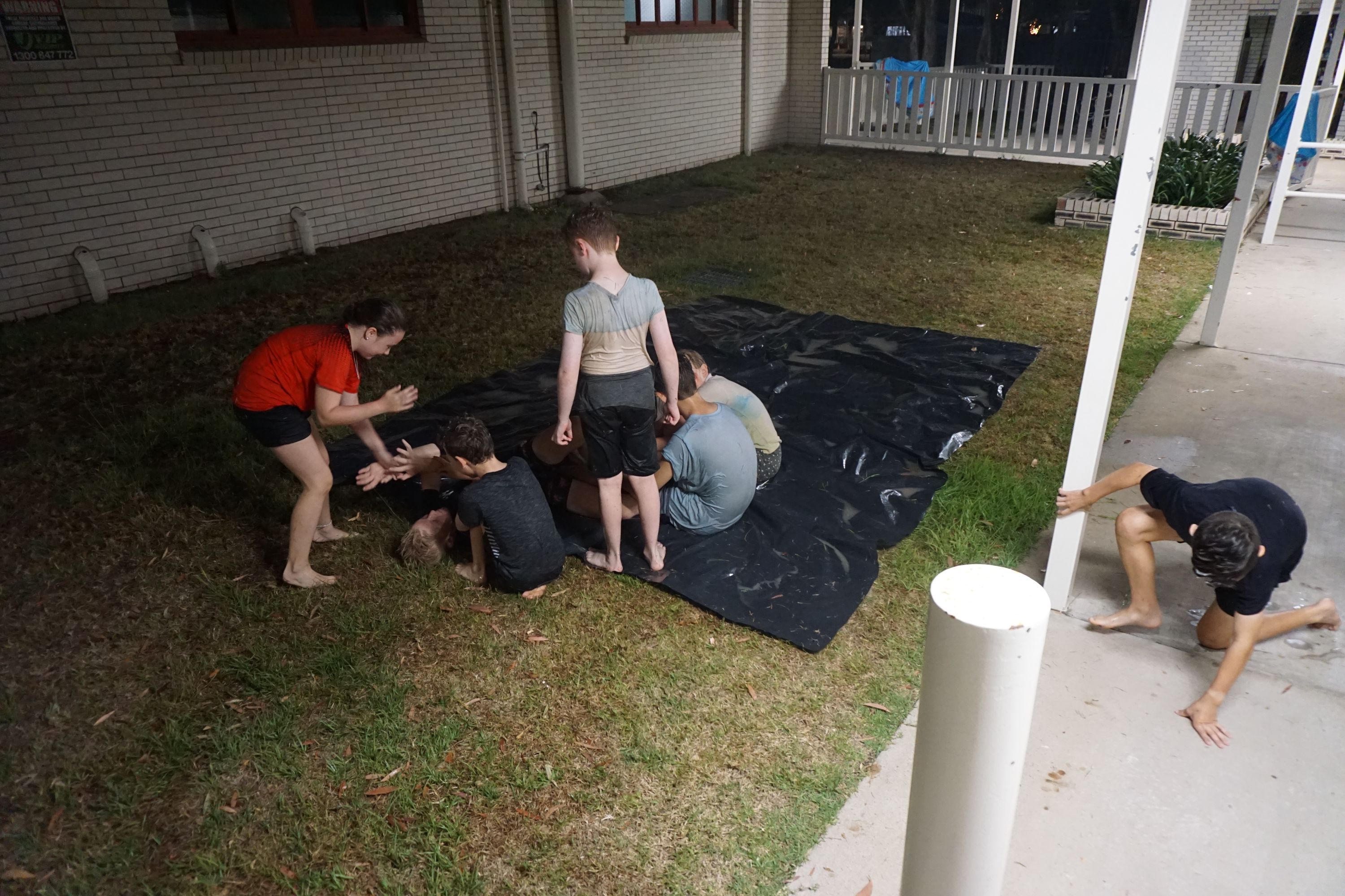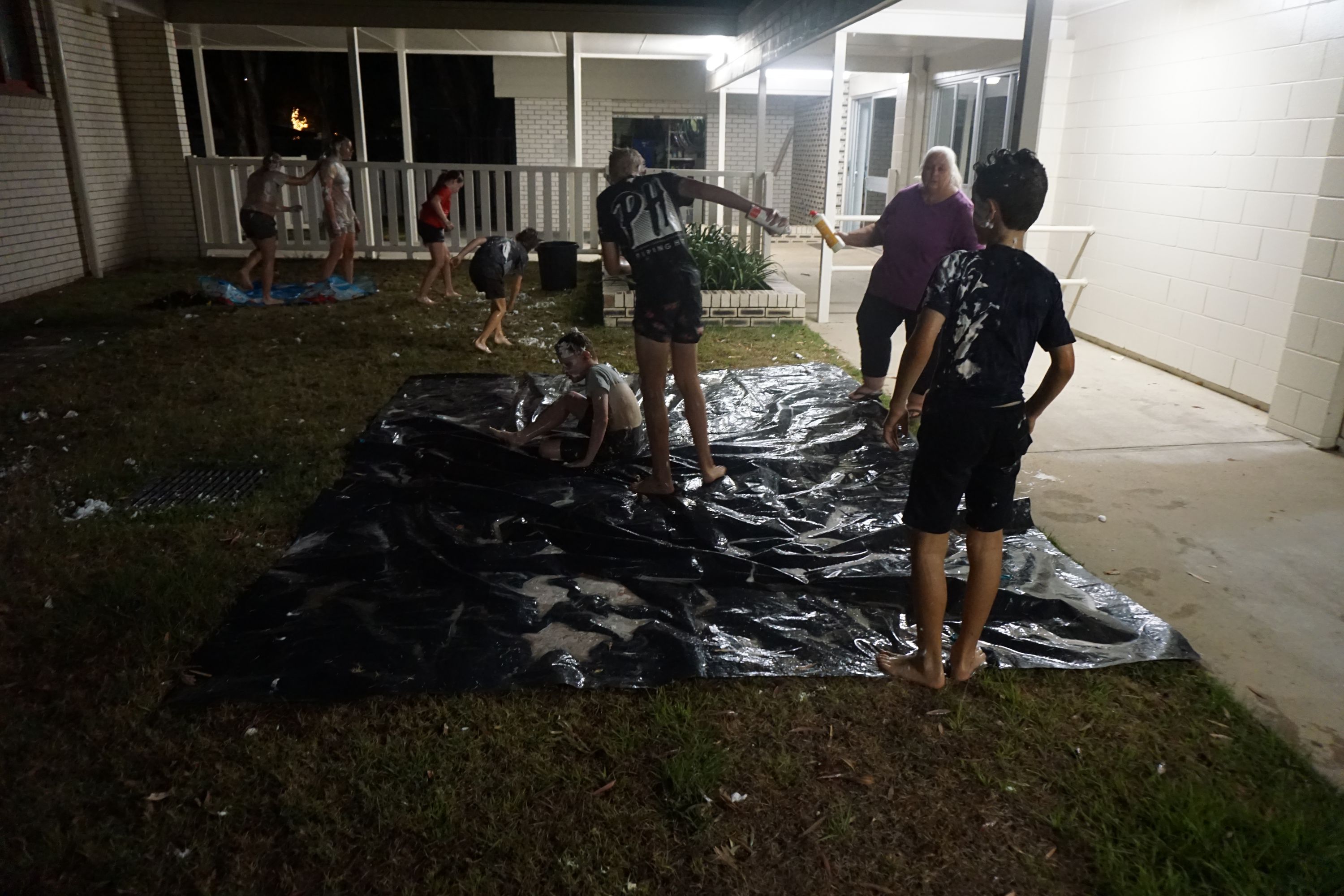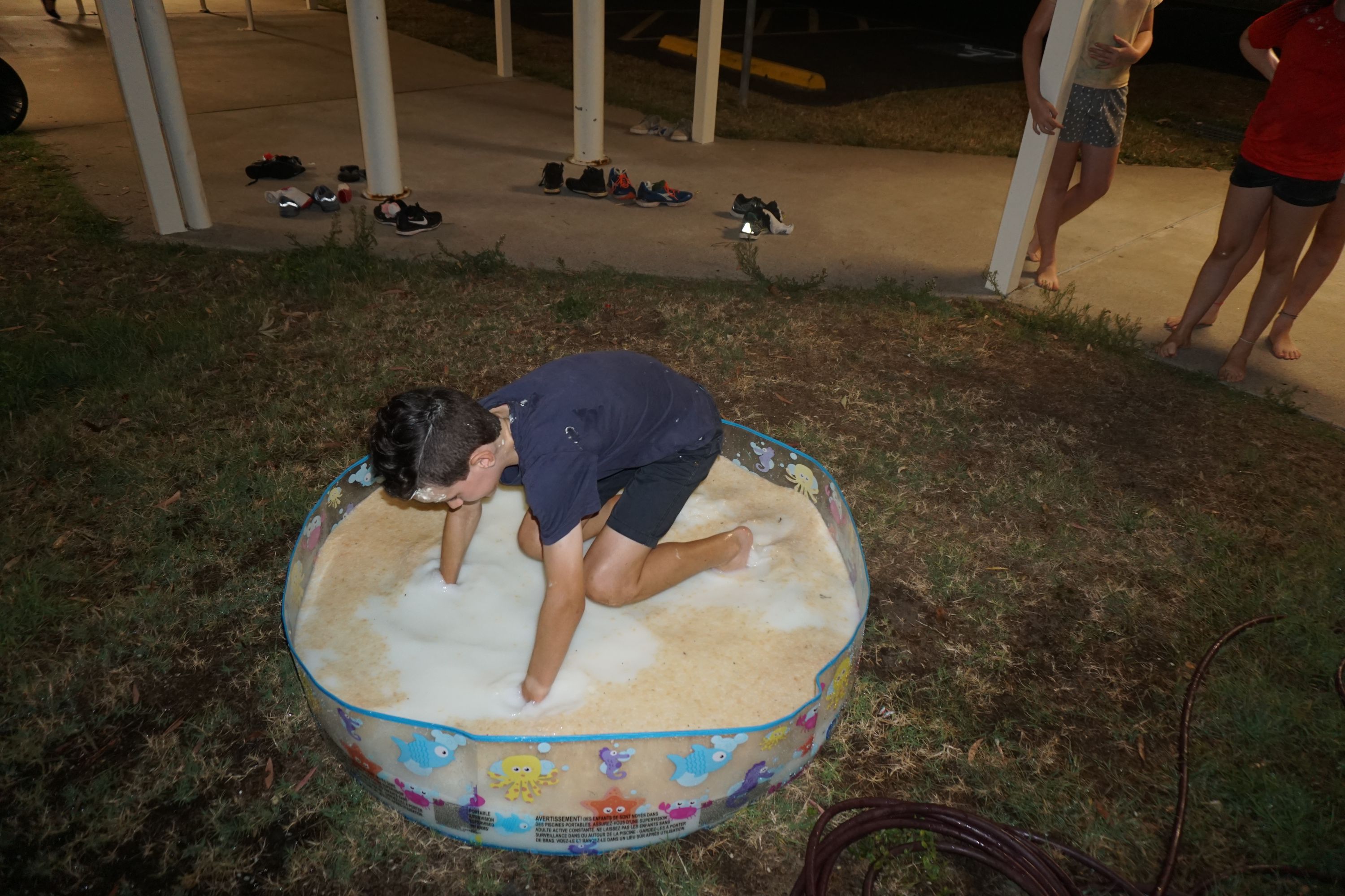 Using the now soapy slip and slide the Scouts decided they wanted to play Weeds.