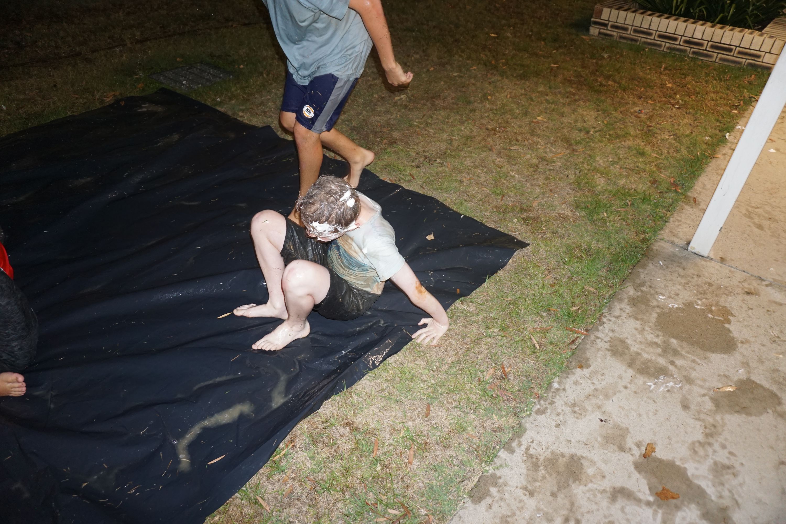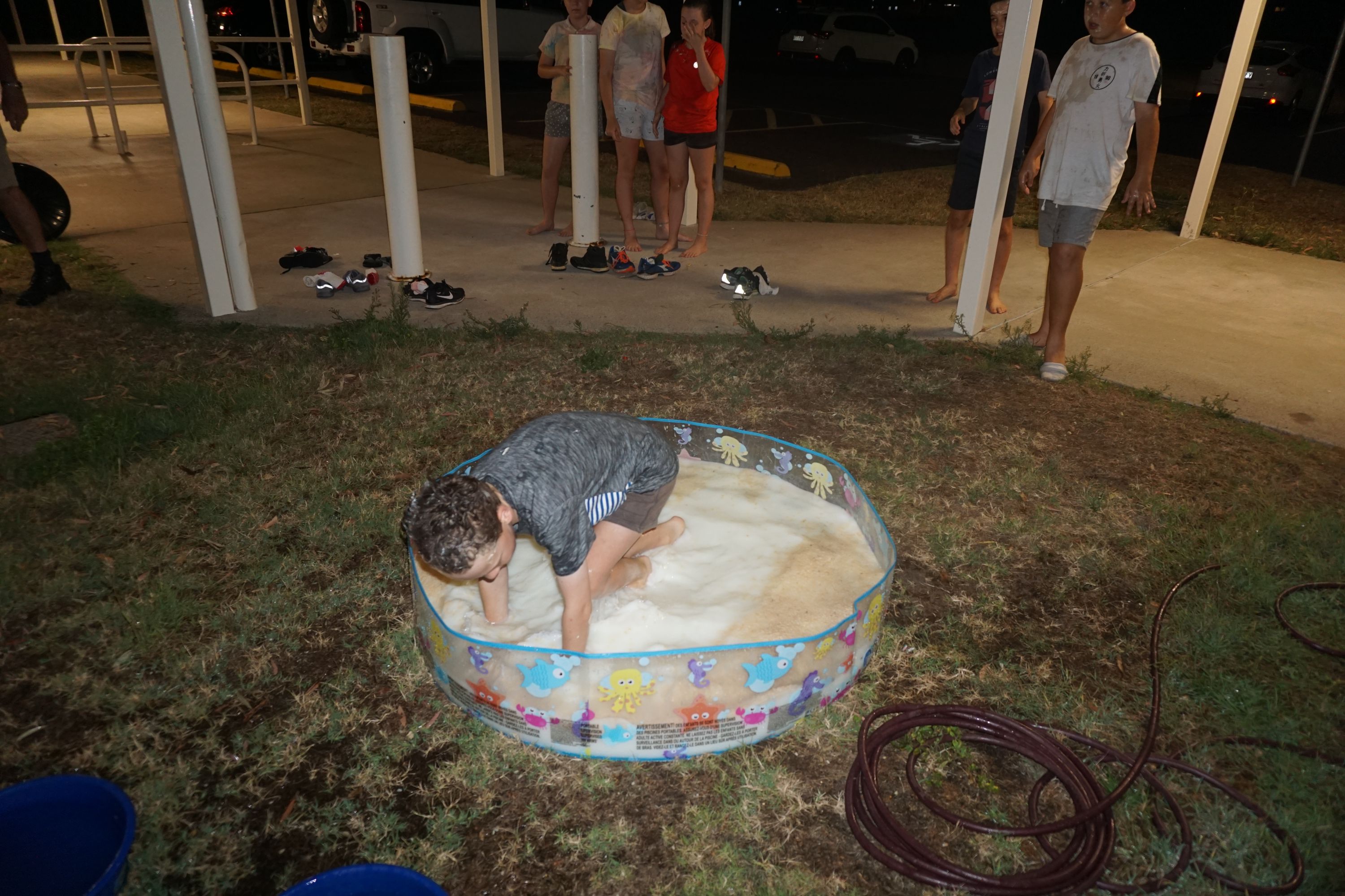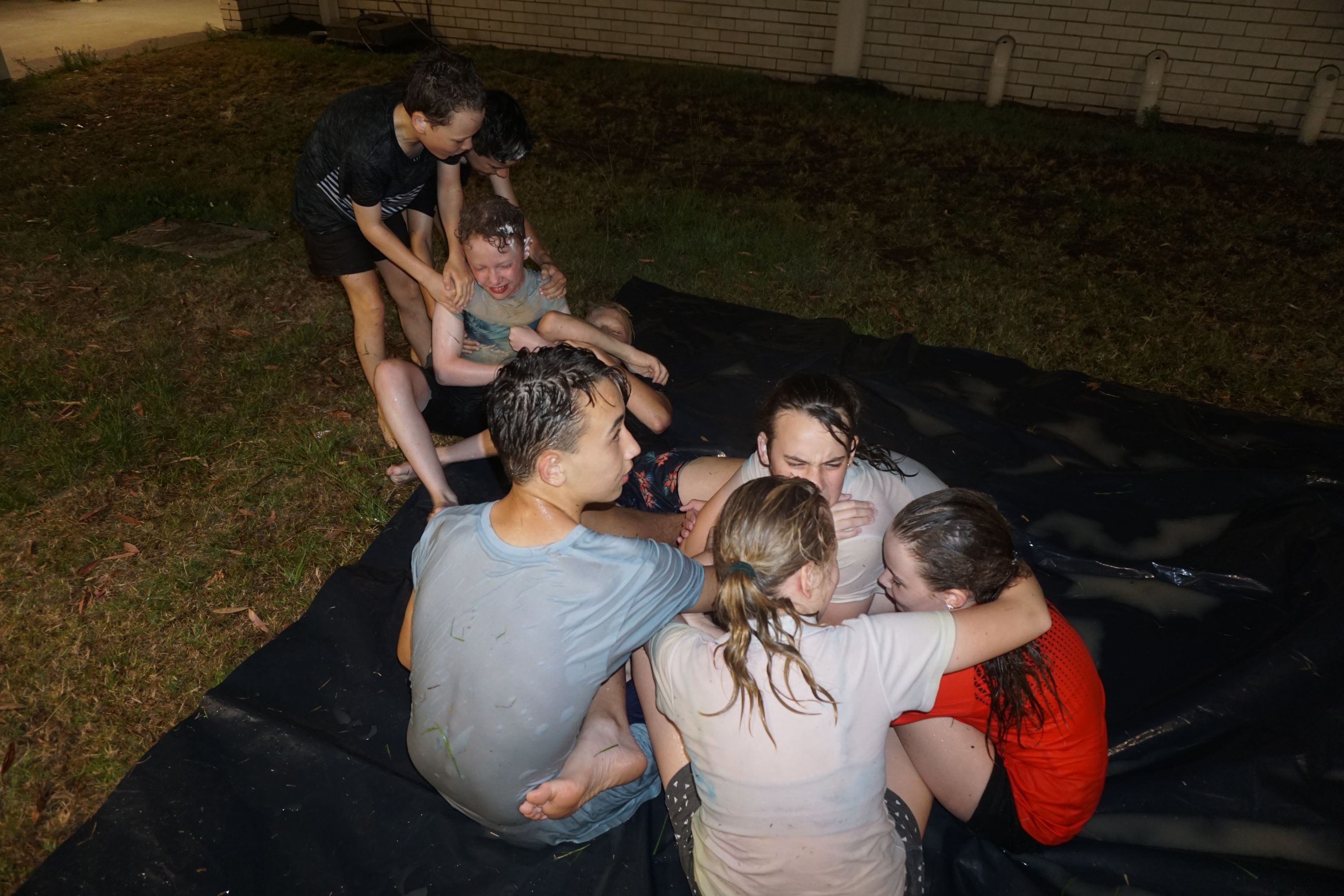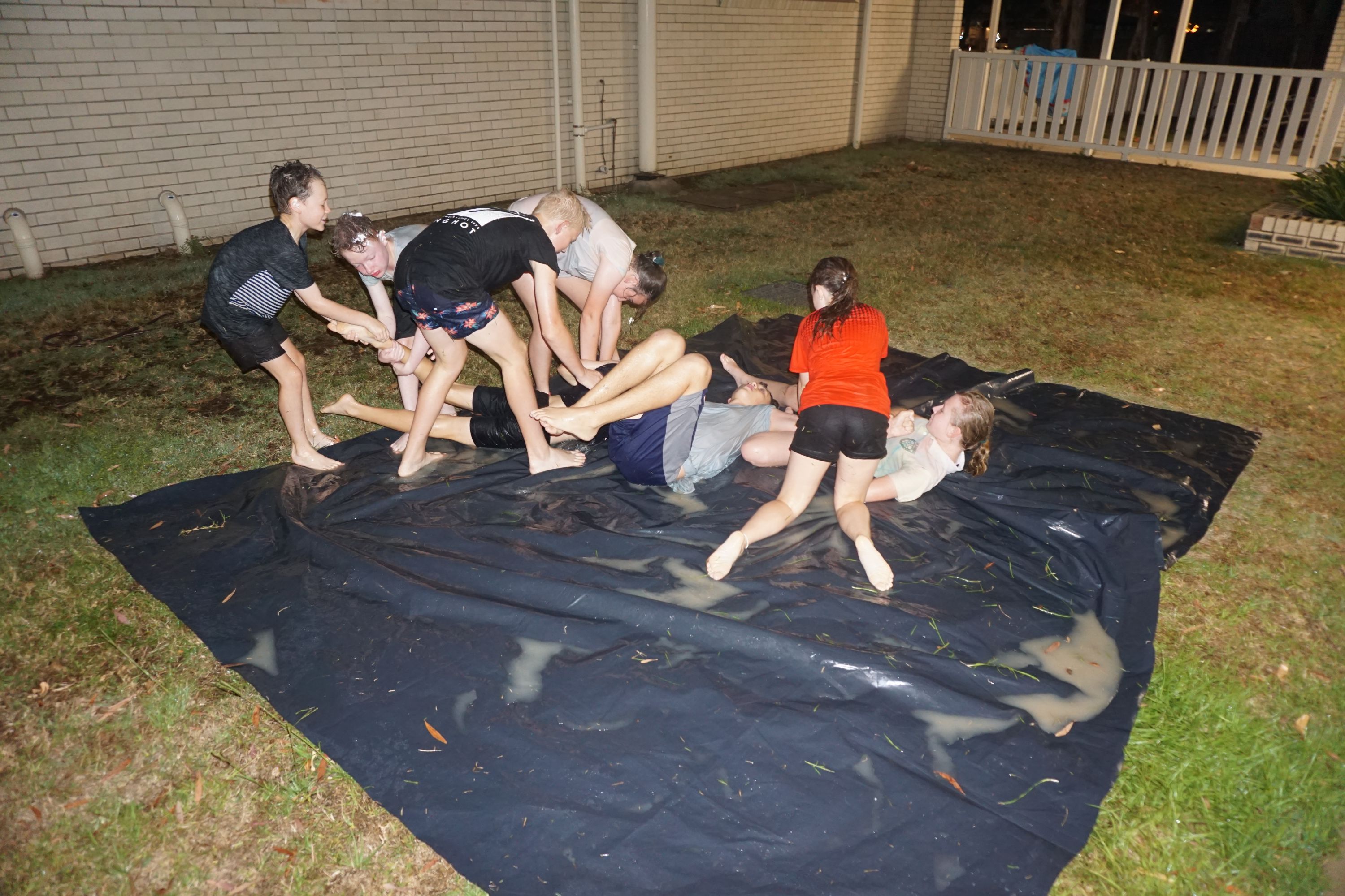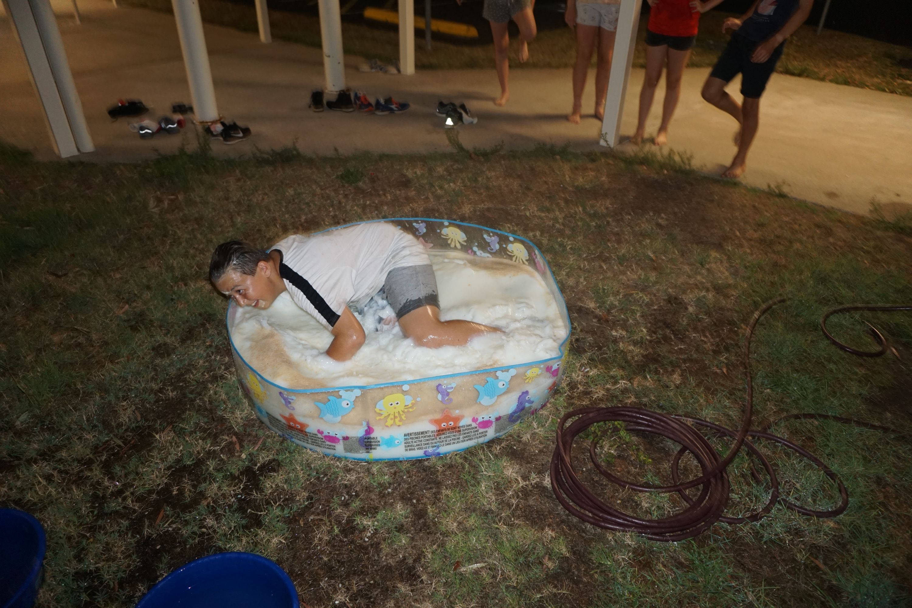 Using the now soapy slip and slide the Scouts decided they wanted to play Weeds.